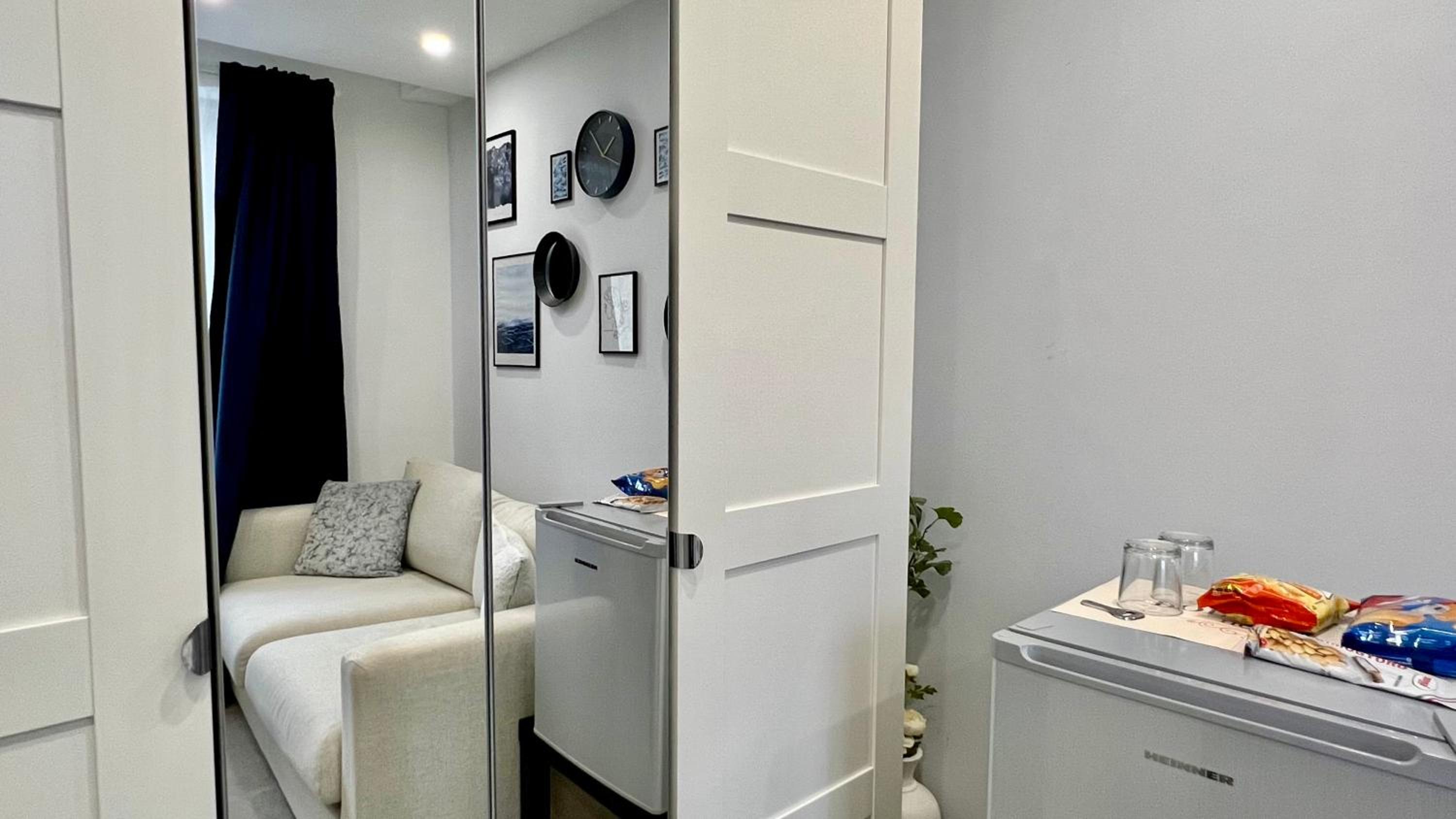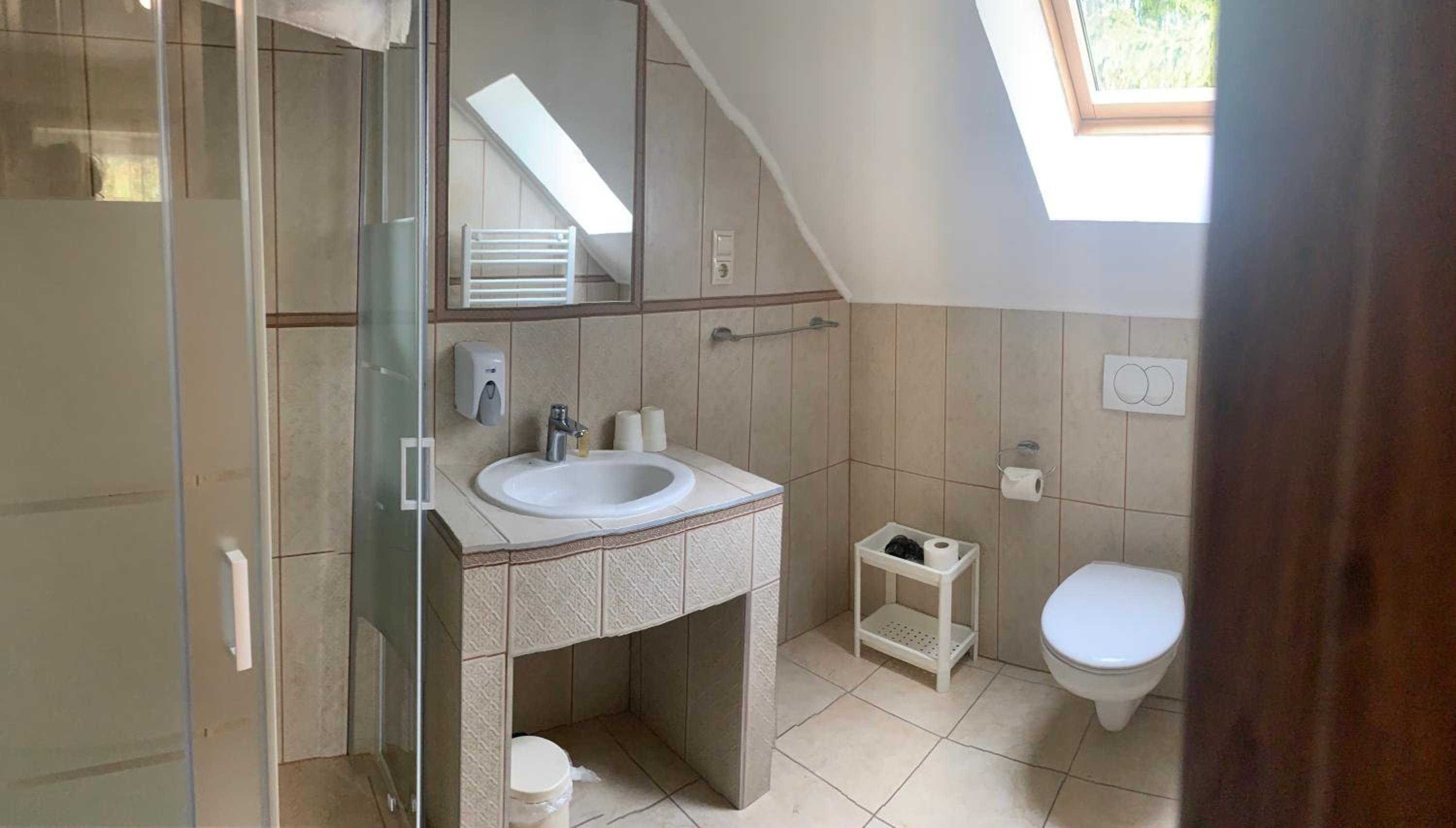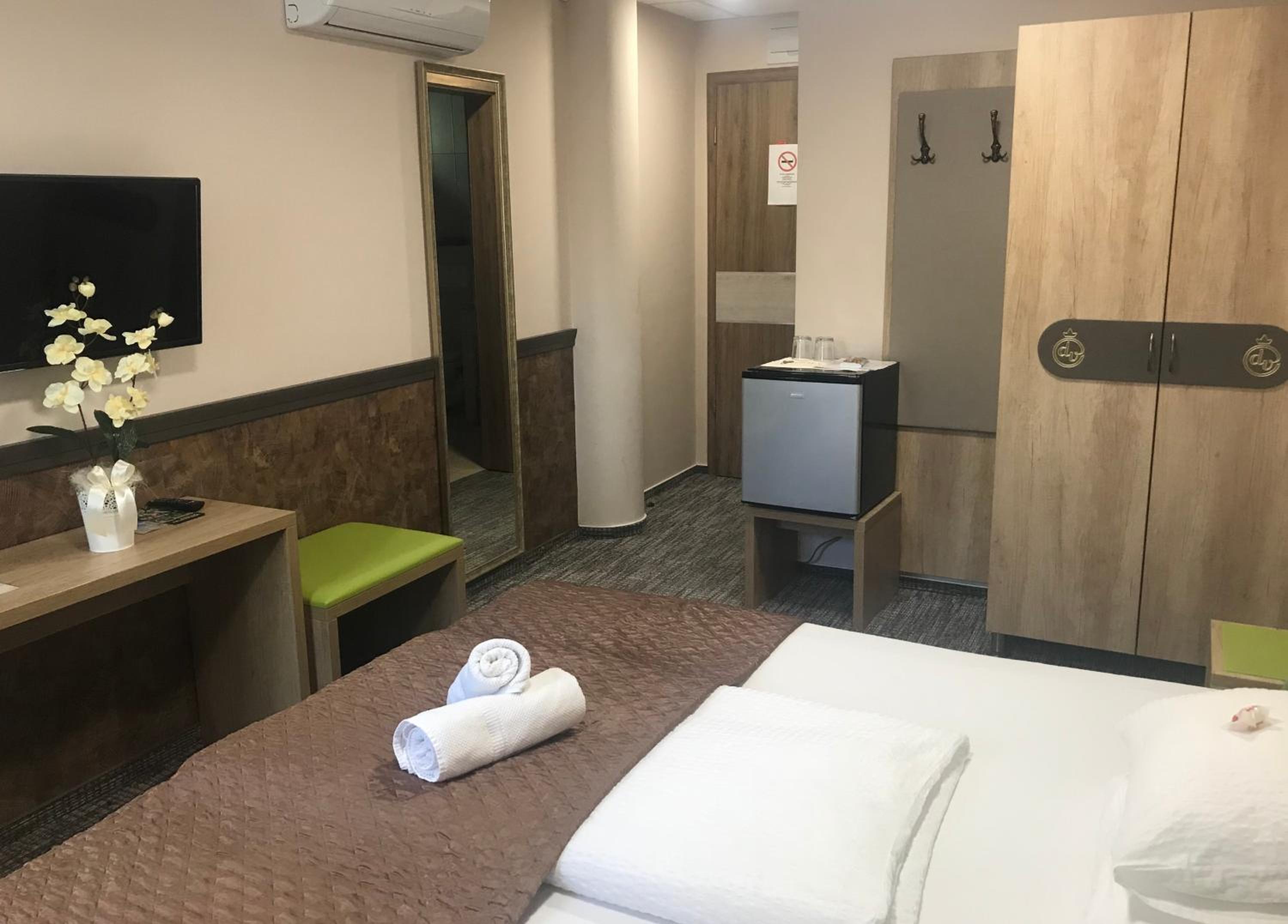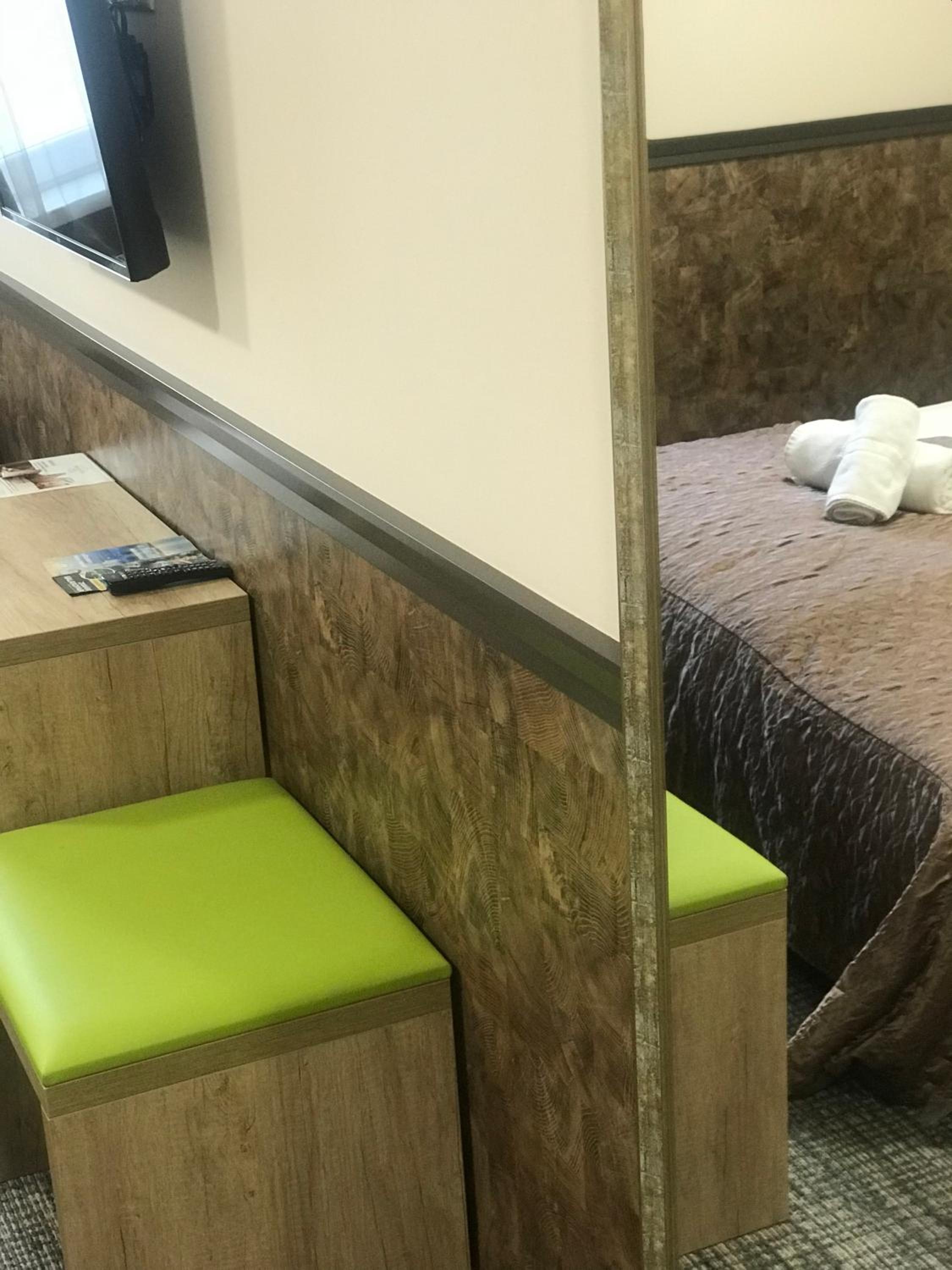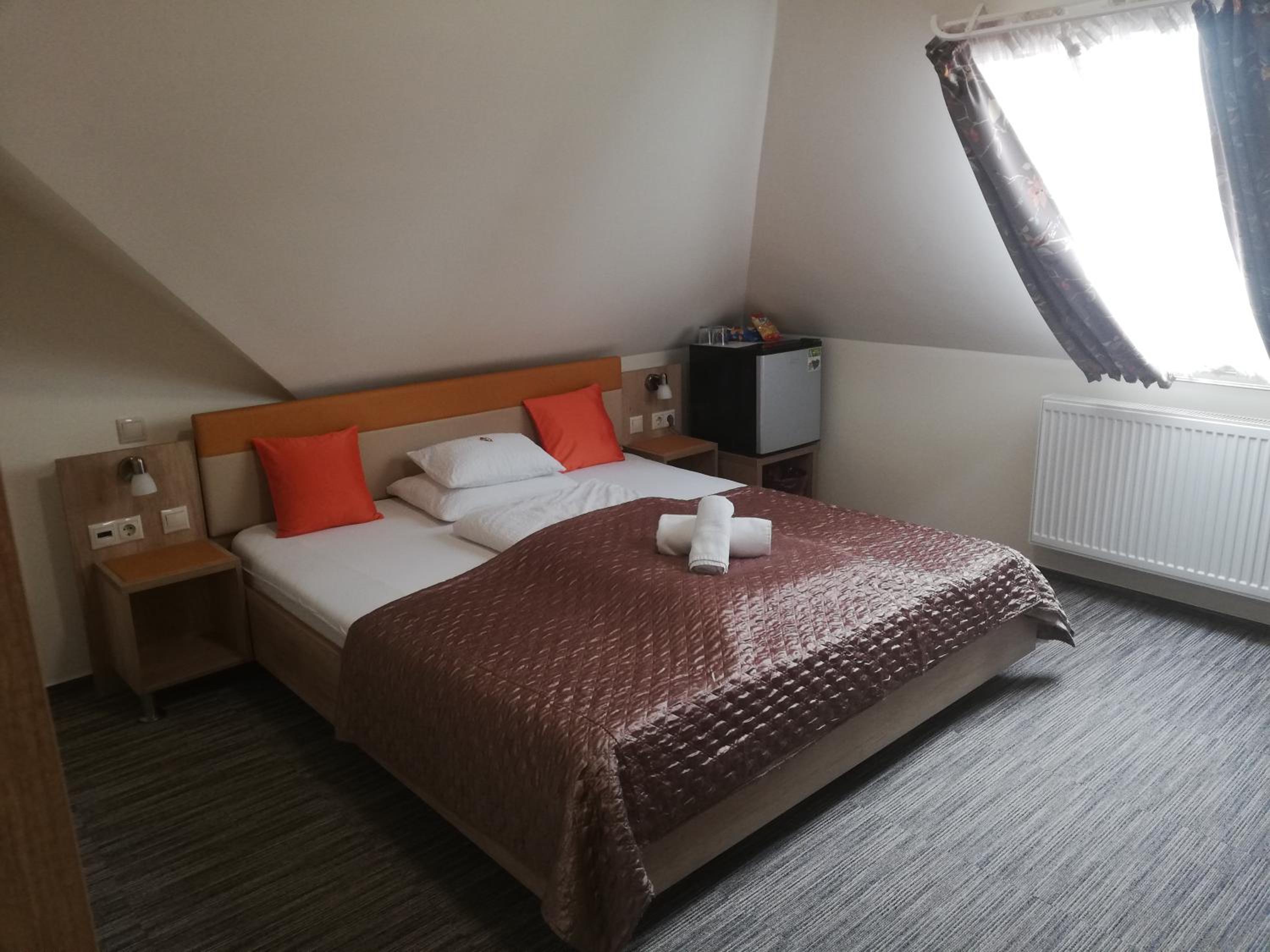 Nagyon kics tetőtéri szoba. A fürdőszoba ajtaja egy tolóajtó, ami semmi hangot nem szigetel. A tetőtéri elhelyezkedés miatt nagyon kellett vigyáznom a fejemre. A minibárként szolgáló hűtő a fejem mellett egy asztalkára volt téve, és bizonyos időközönként bekapcsolt, ezzel zavarva a pihenést.
