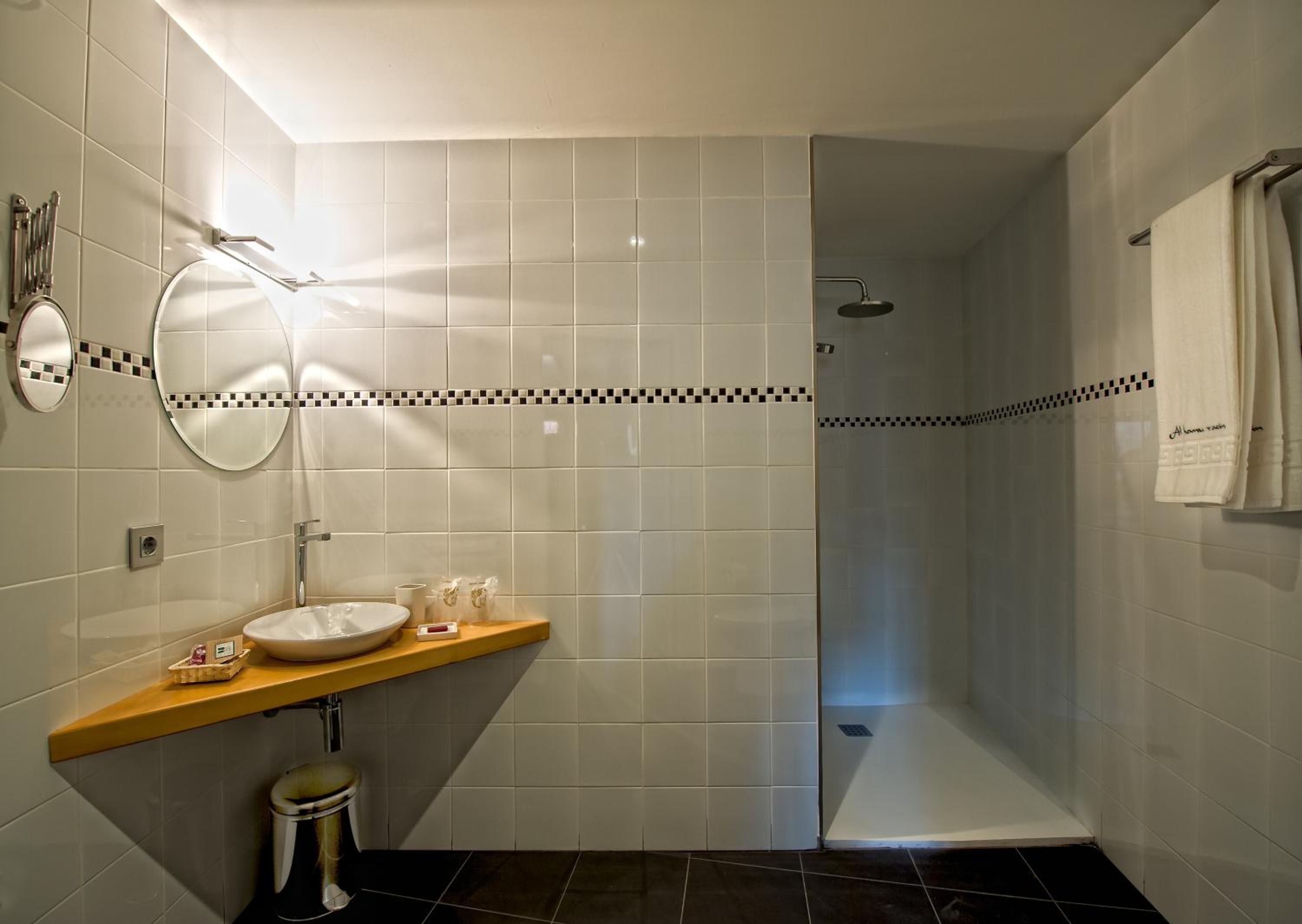 Modern Country-Style Rooms: Experience the charm of modern country-style rooms with parquet flooring, wooden beams, and contemporary furniture. Enjoy stunning views of the medieval town or mountains from the comfort of your room, equipped with a flat-screen TV and a sleek bathroom with a shower.