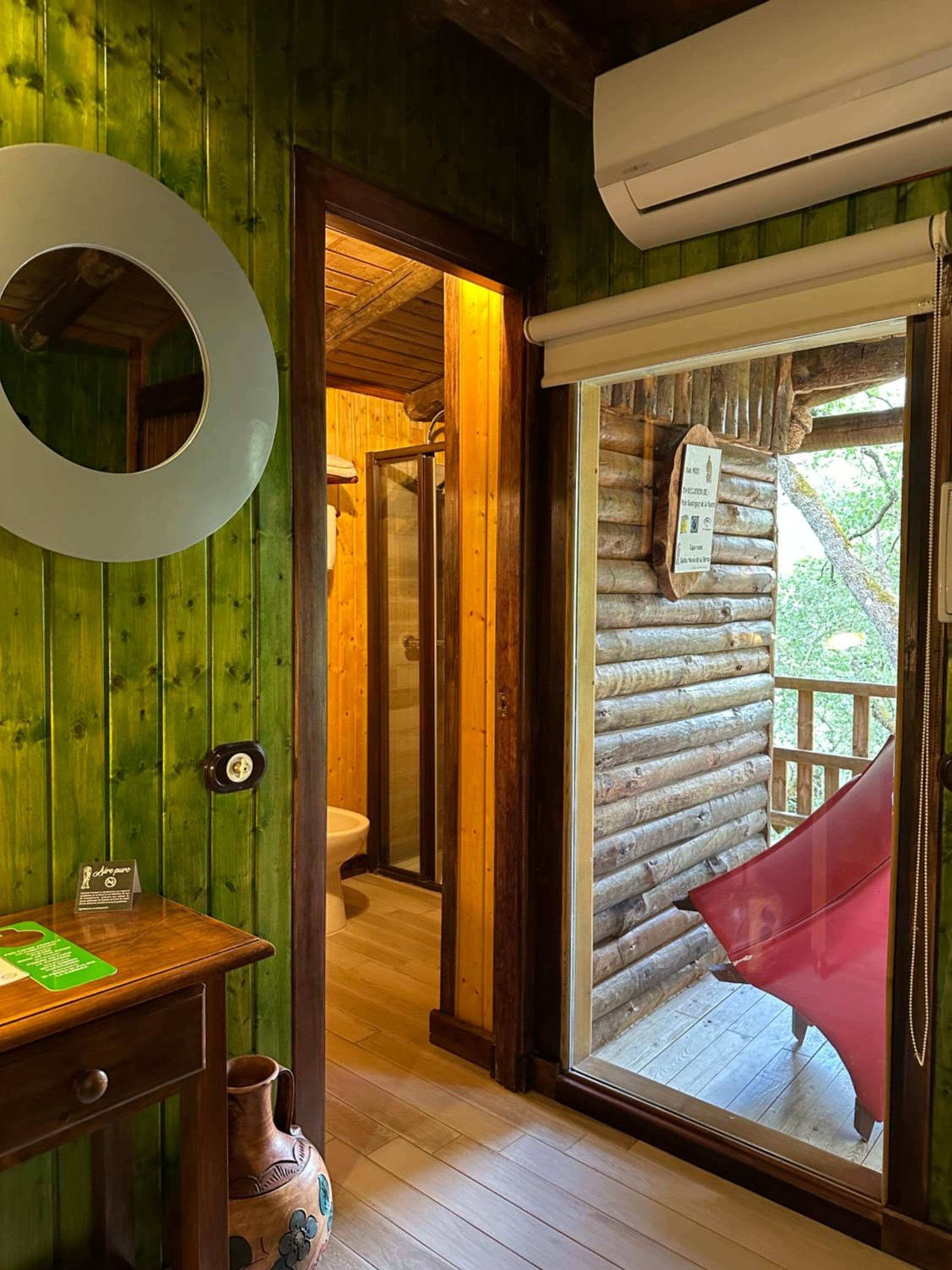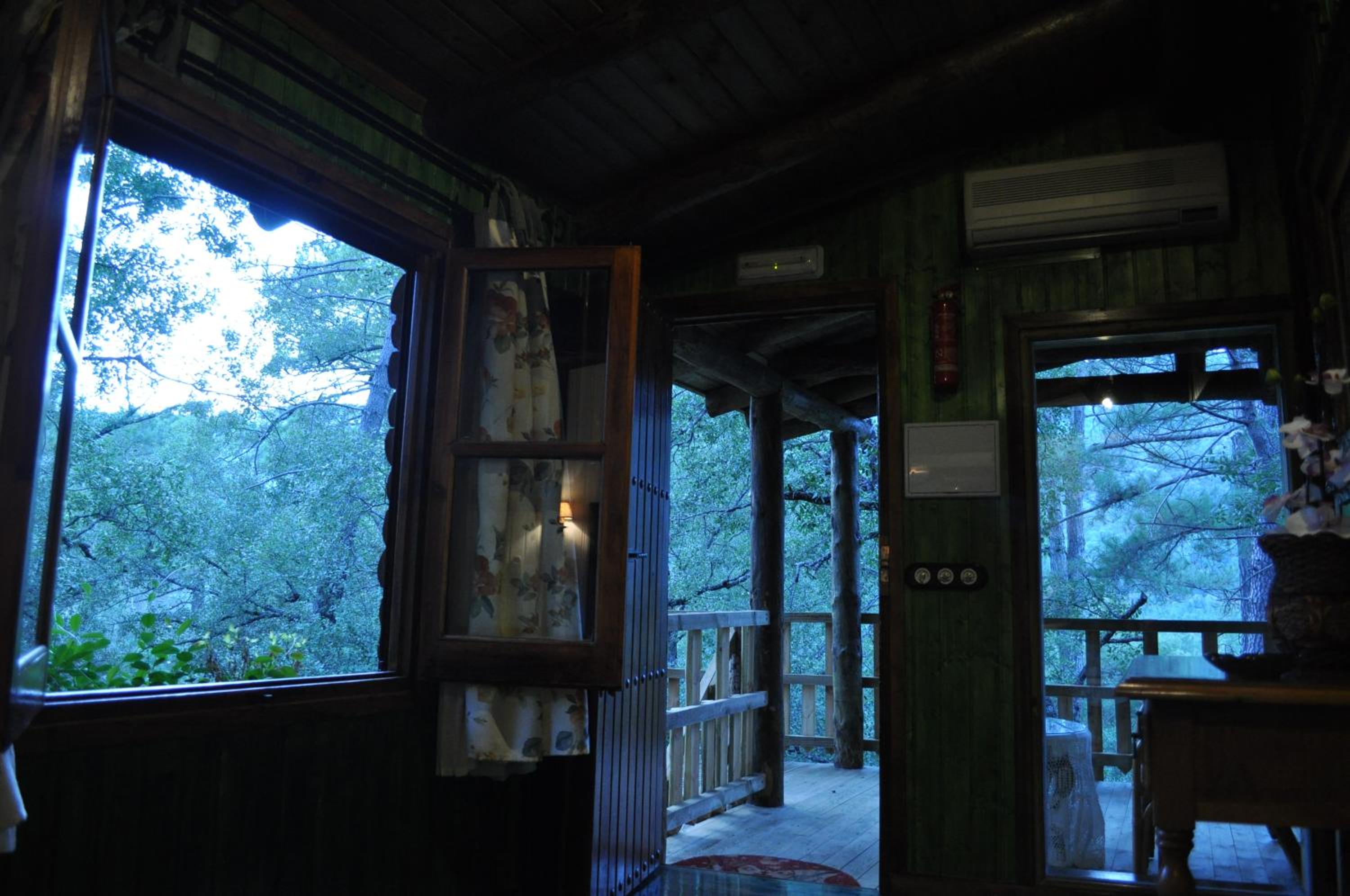 Experience a one-of-a-kind stay at Los Nidos De Santa Maria, where wooden rooms built on trees offer a charming terrace and mosquito net for a peaceful night's sleep.