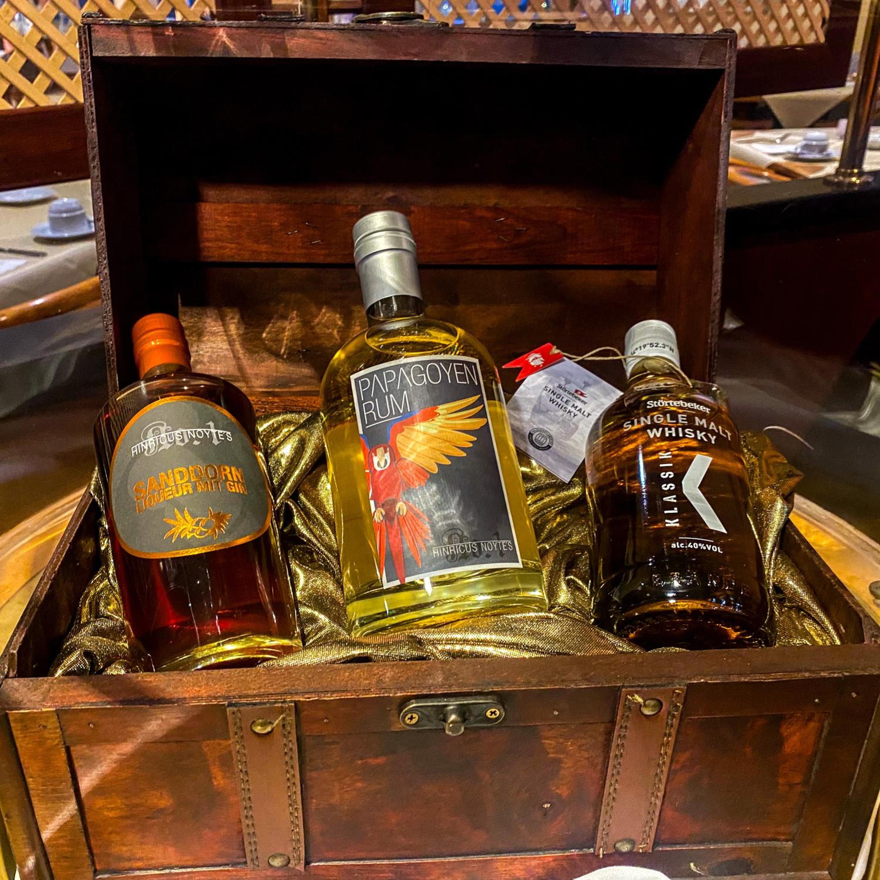 Leider gab es keine obligatorische Flasche Wasser, angesichts des Preises wäre das eigentlich zu erwarten ….die Gläser dazu standen ja schon da