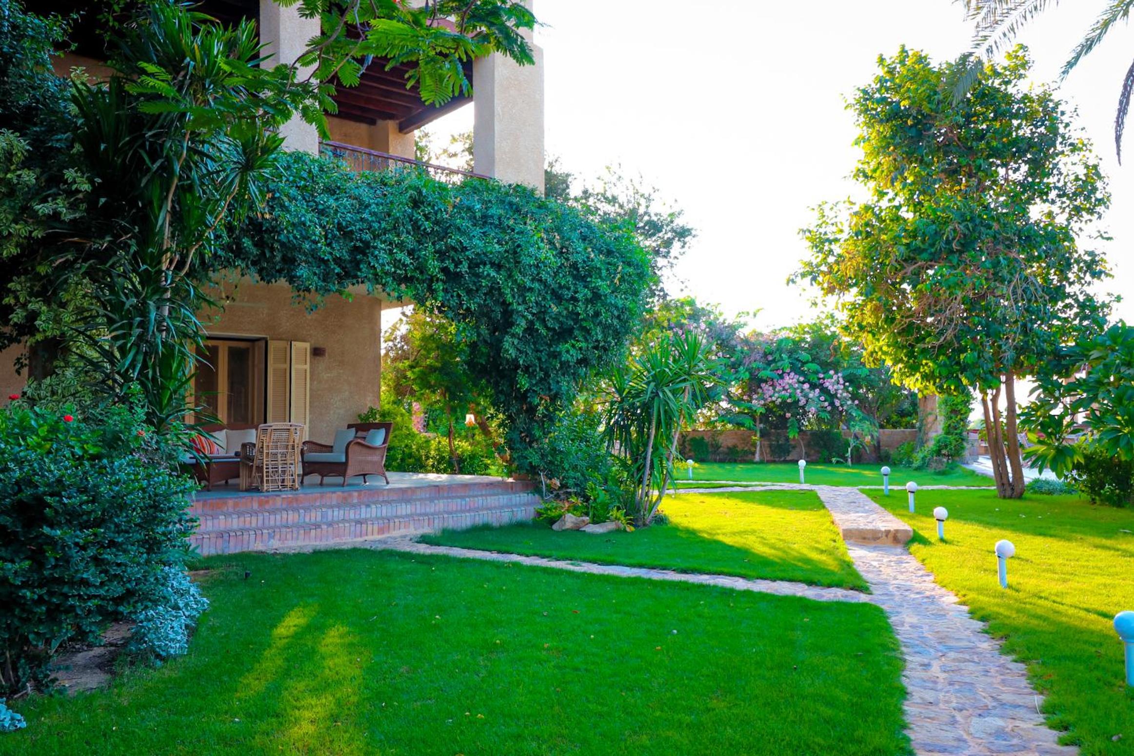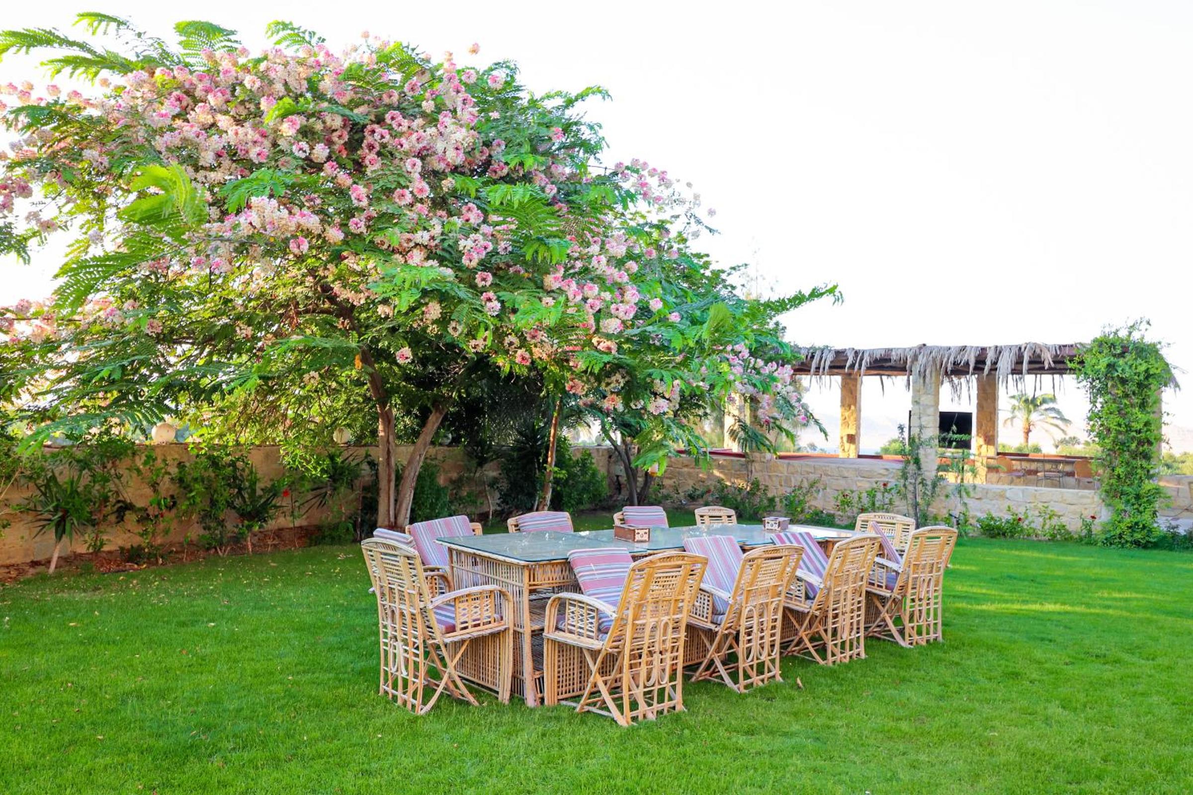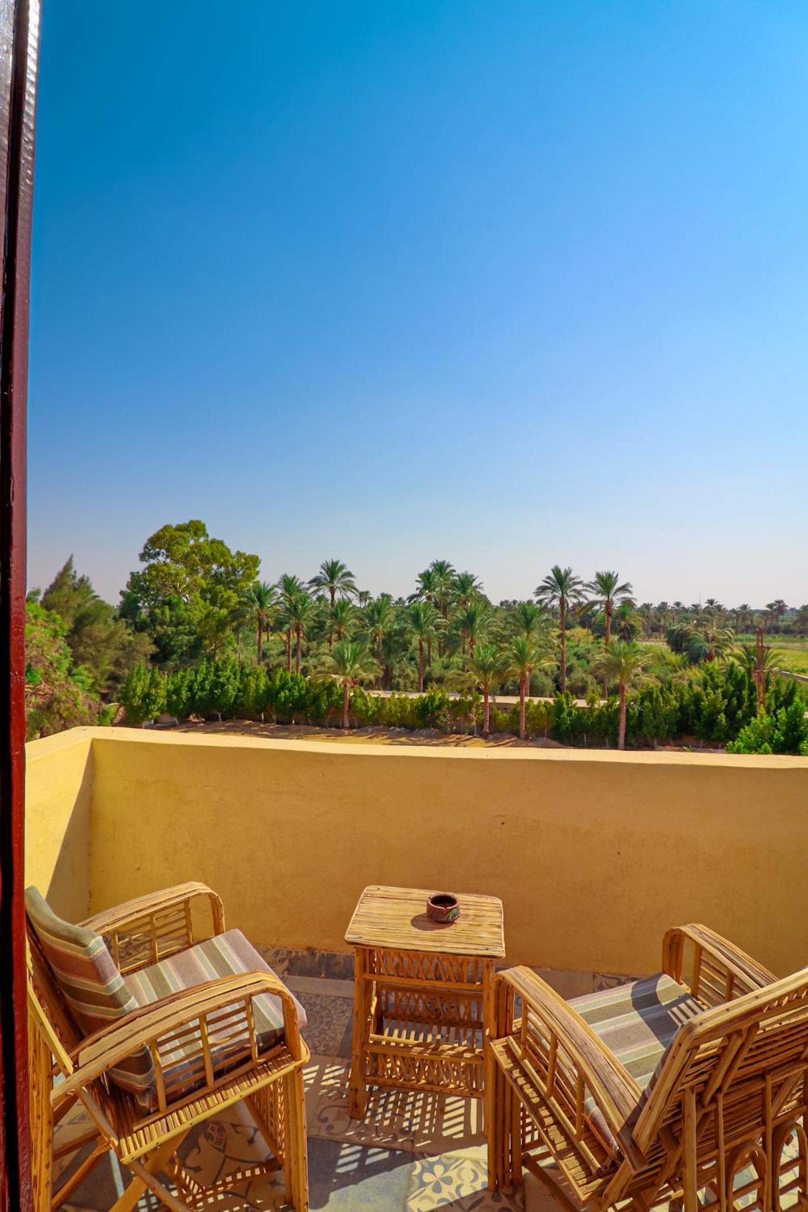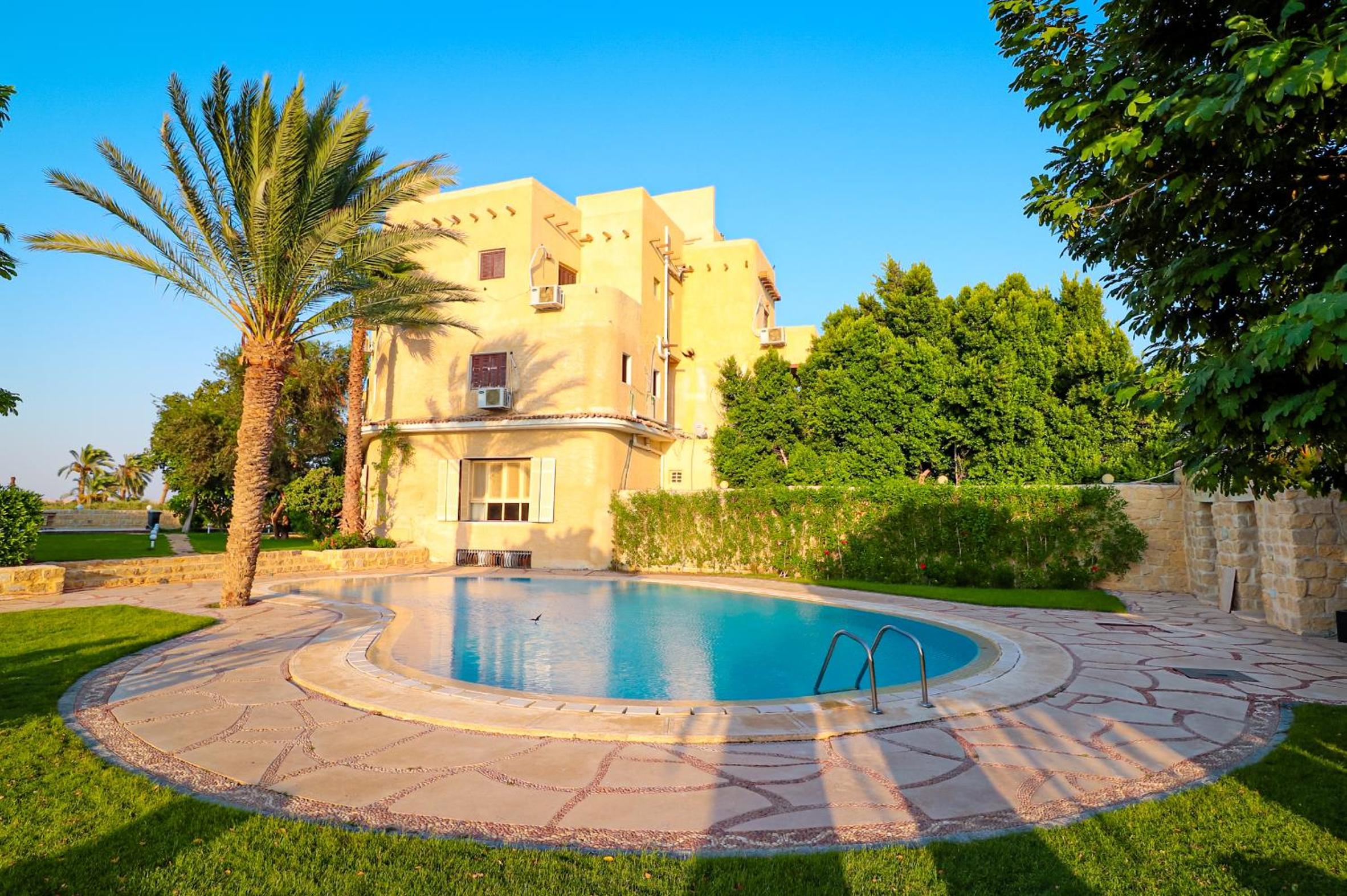 Tache Boutique Hotel Fayoum offers a serene outdoor experience with an inviting swimming pool, lush garden, and a charming terrace for relaxation. Guests can also socialize in the shared lounge area or enjoy a delightful barbecue.