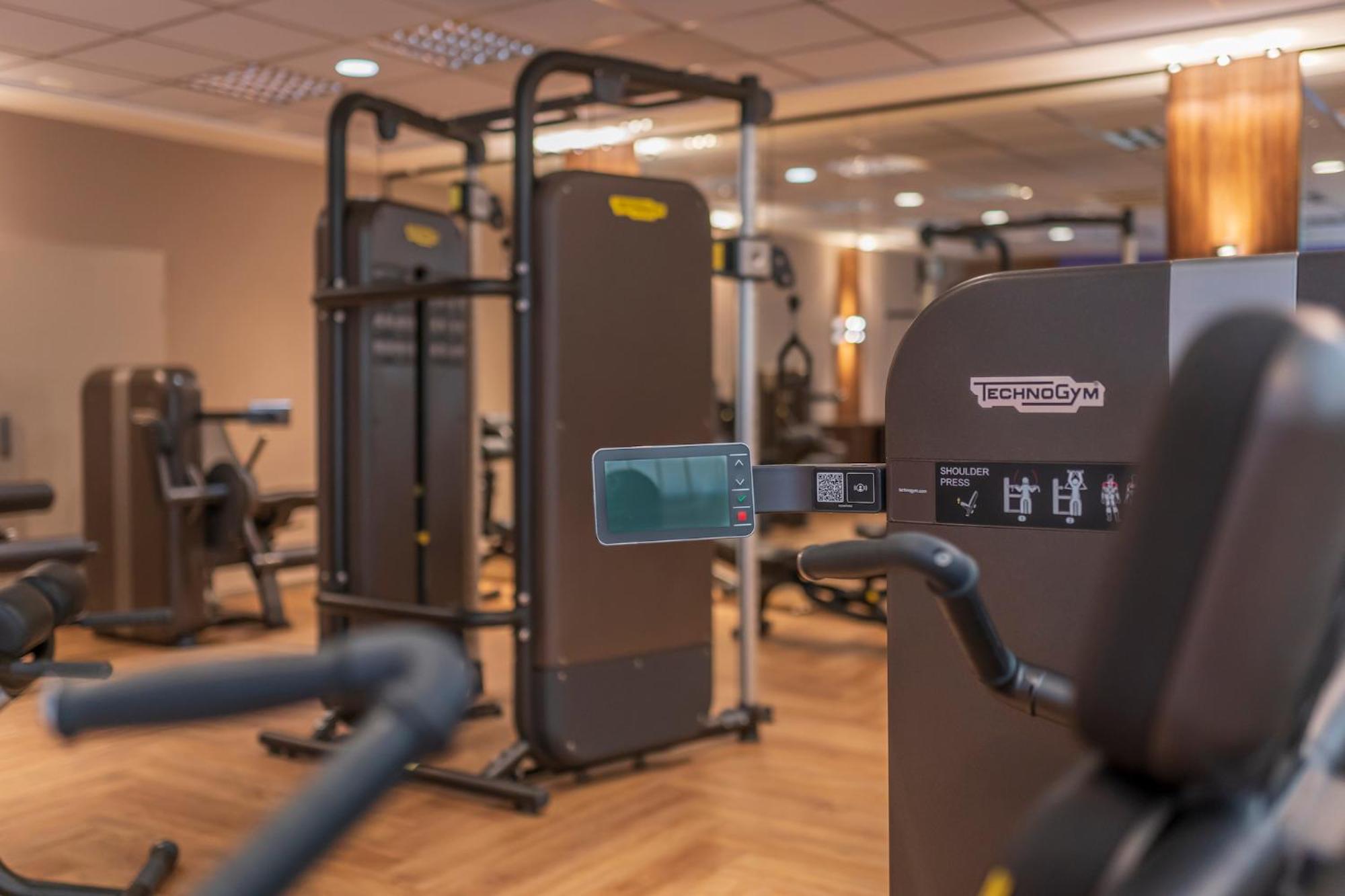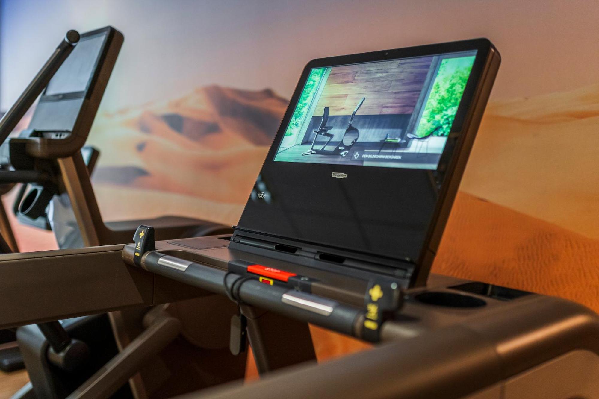 Im Fitnessstudio sind moderne Geräte vorhanden.