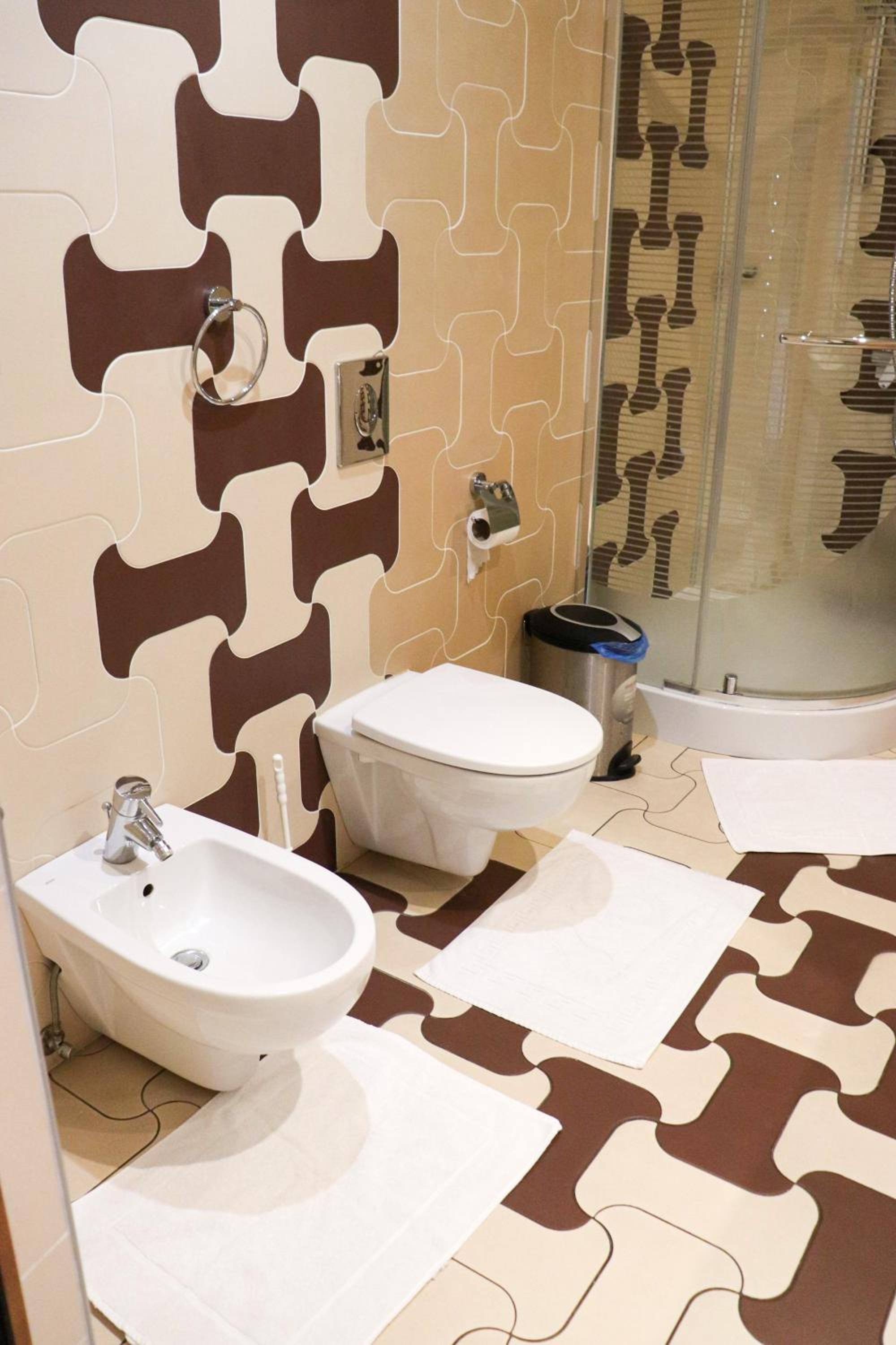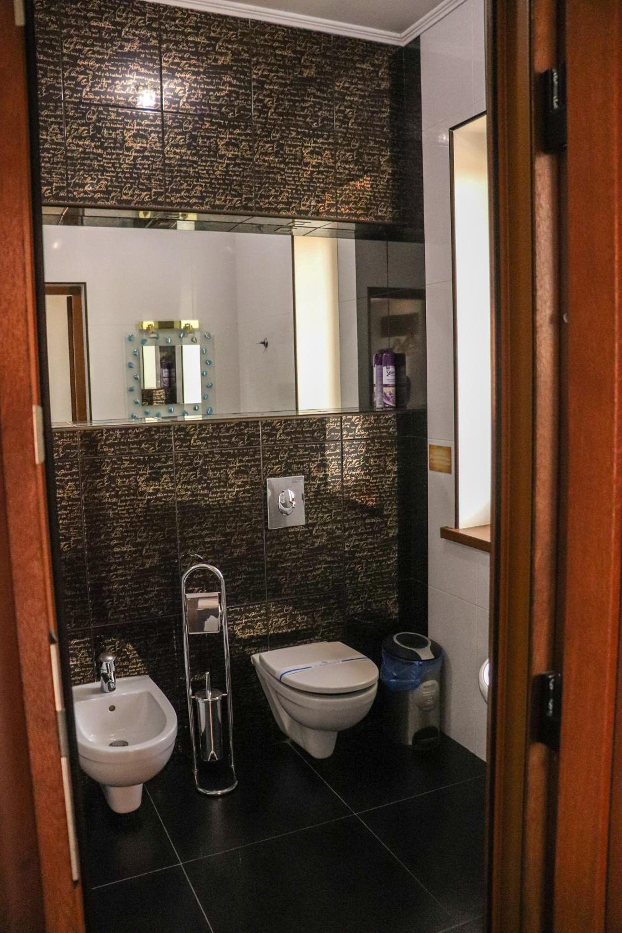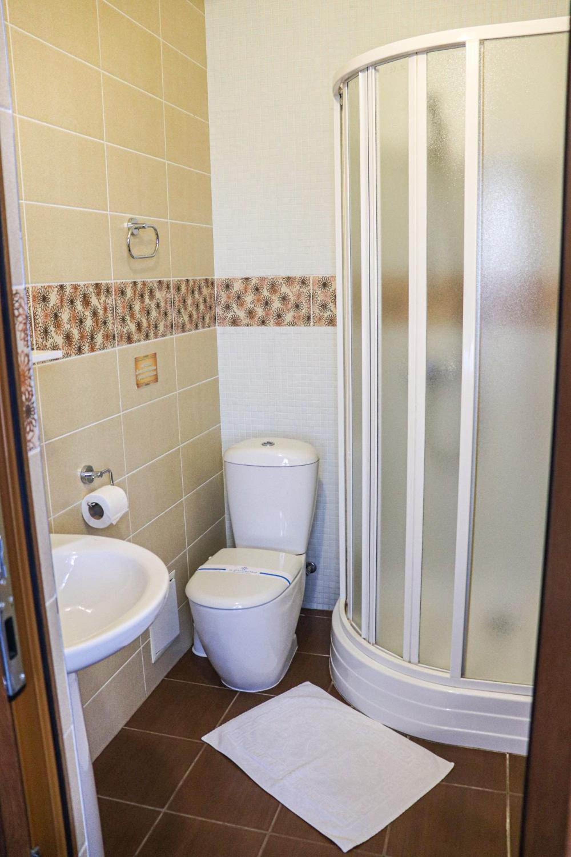 Виявилося, що санвузол на поверсі, а не в номері, нехай ним і користувалися лише ми, але ж щоб сходити в туалет треба вийти з номера на коридор, про це ніде не зауважено при бронюванні.