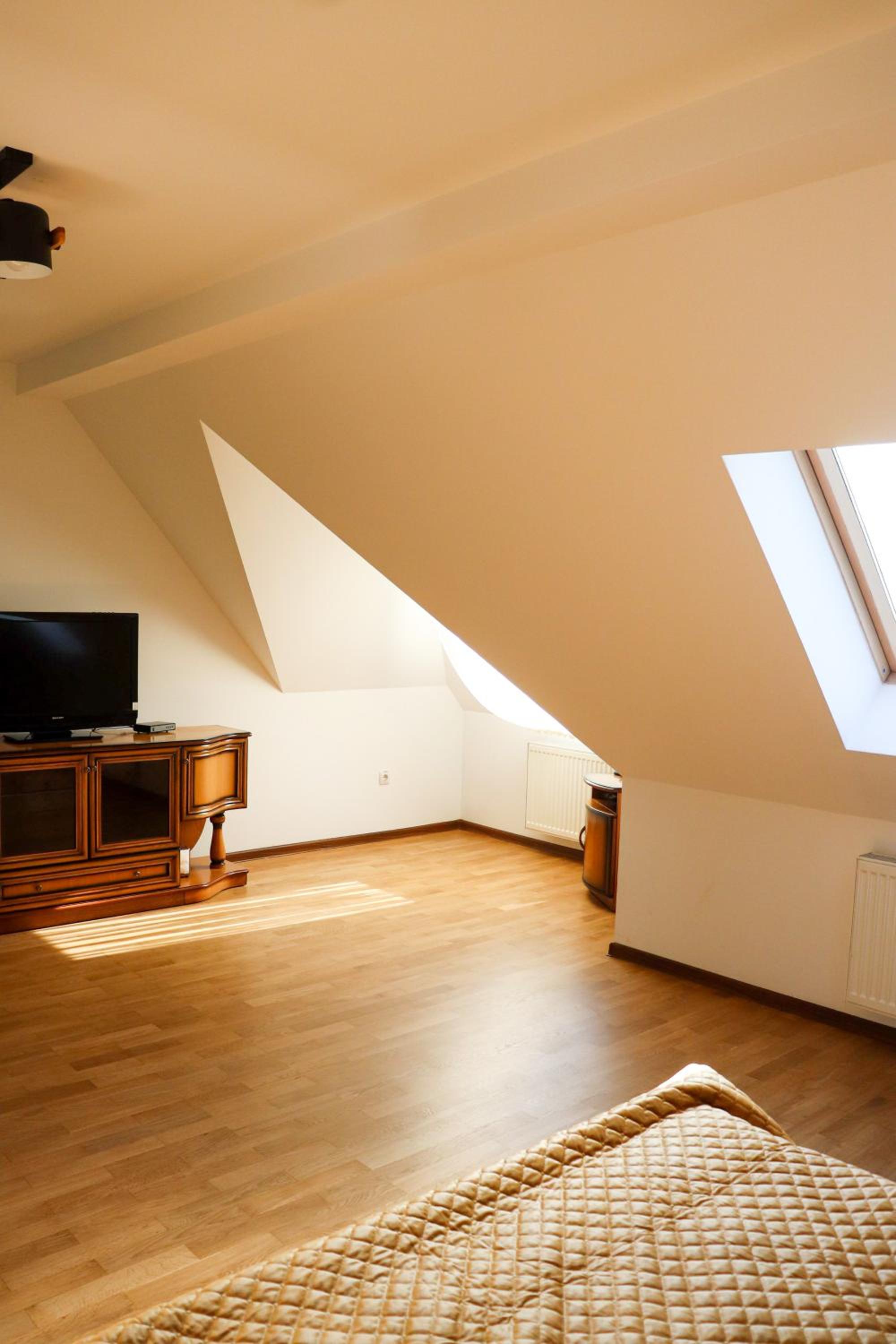 Не завадило б відремонтувати вікна - номер був мансардним, вікна в стелі до кінця не закривалися....