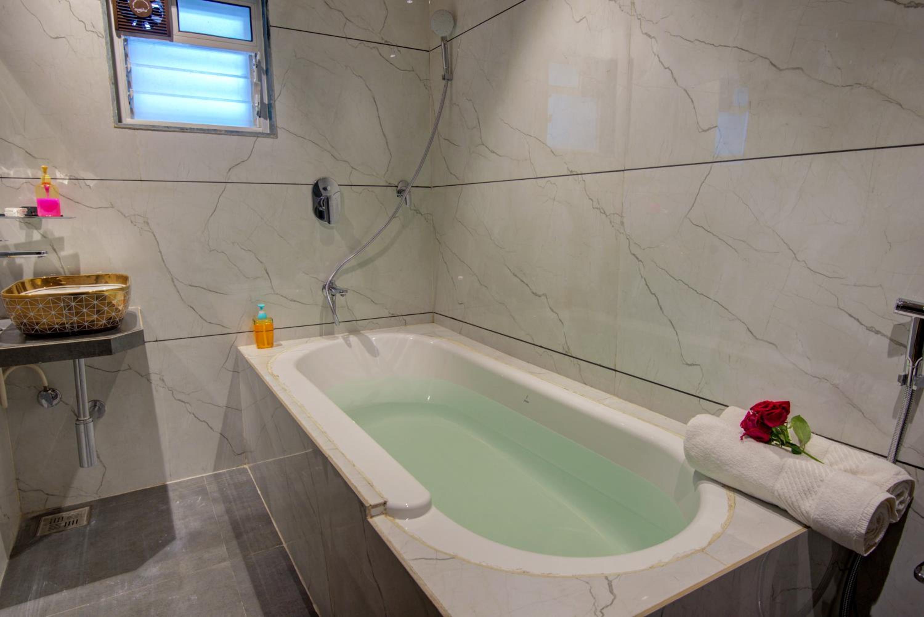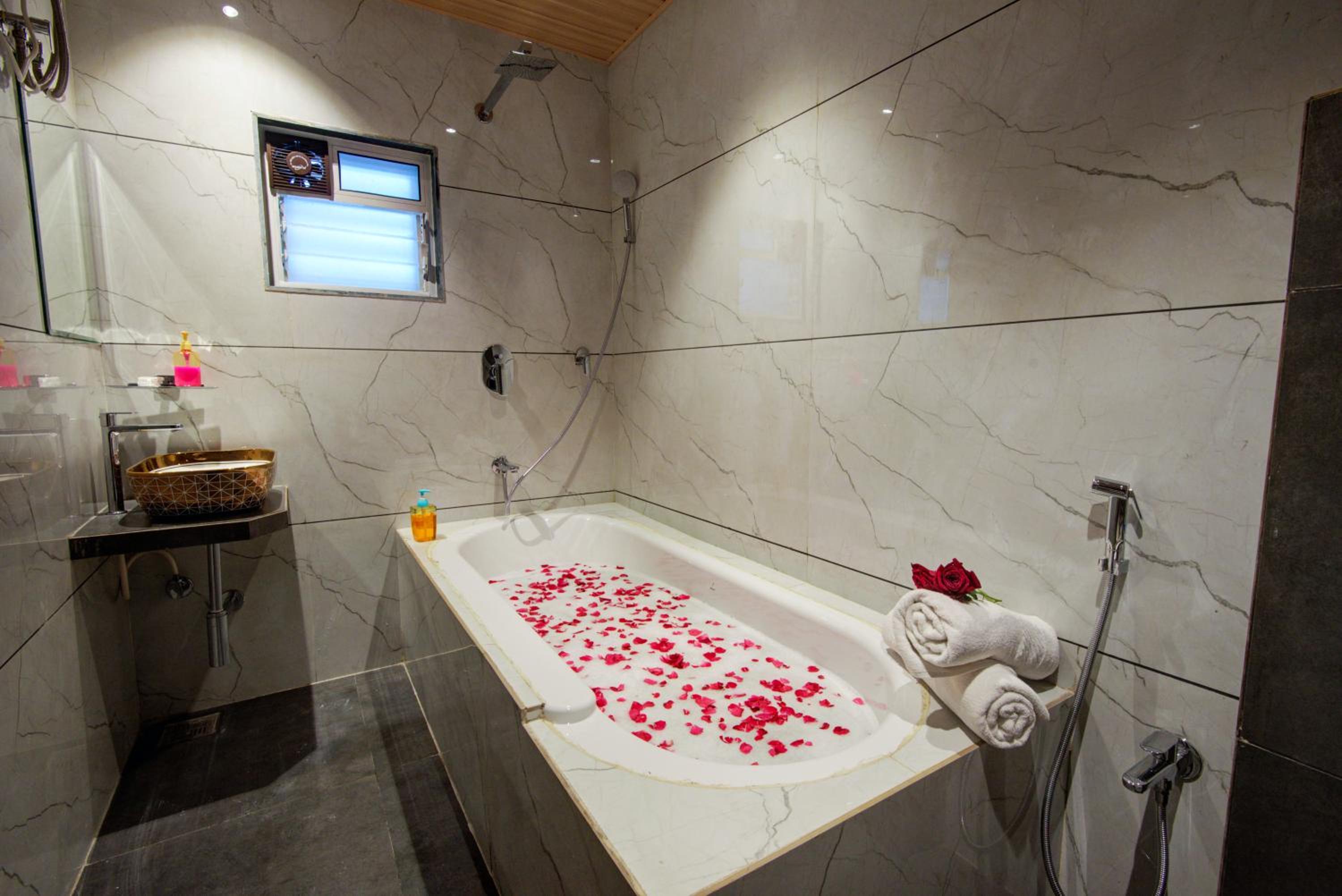 We had booked the deluxe suite which had the bath tub and had confirmed with the hotel for the same that was the room available and he had said yes it is but as soon as we show up they say it's not available and will be available after 2/3 hours for which we still agreed on and till that time he gave us the standard room but took the full price of deluxe suite. Also the room was made available for us at 9 pm which is really disappointing.