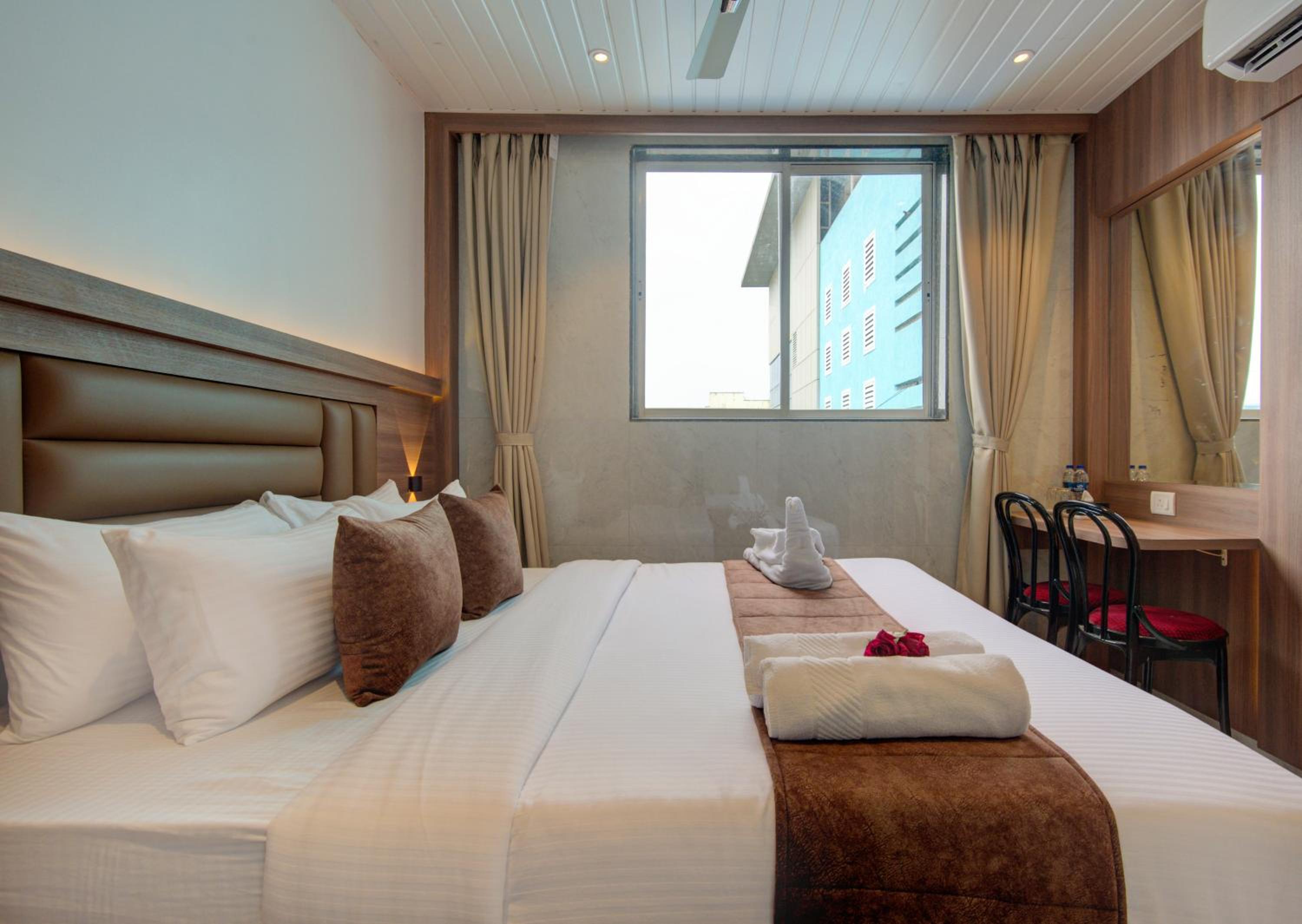 Our air-conditioned rooms are equipped with modern amenities such as a desk, safety deposit box, and a flat-screen TV. Guests can unwind in a cozy setting with complimentary WiFi and enjoy a relaxing shower in the private bathroom. With attentive room service and a 24-hour front desk, we strive to make your stay comfortable and hassle-free.