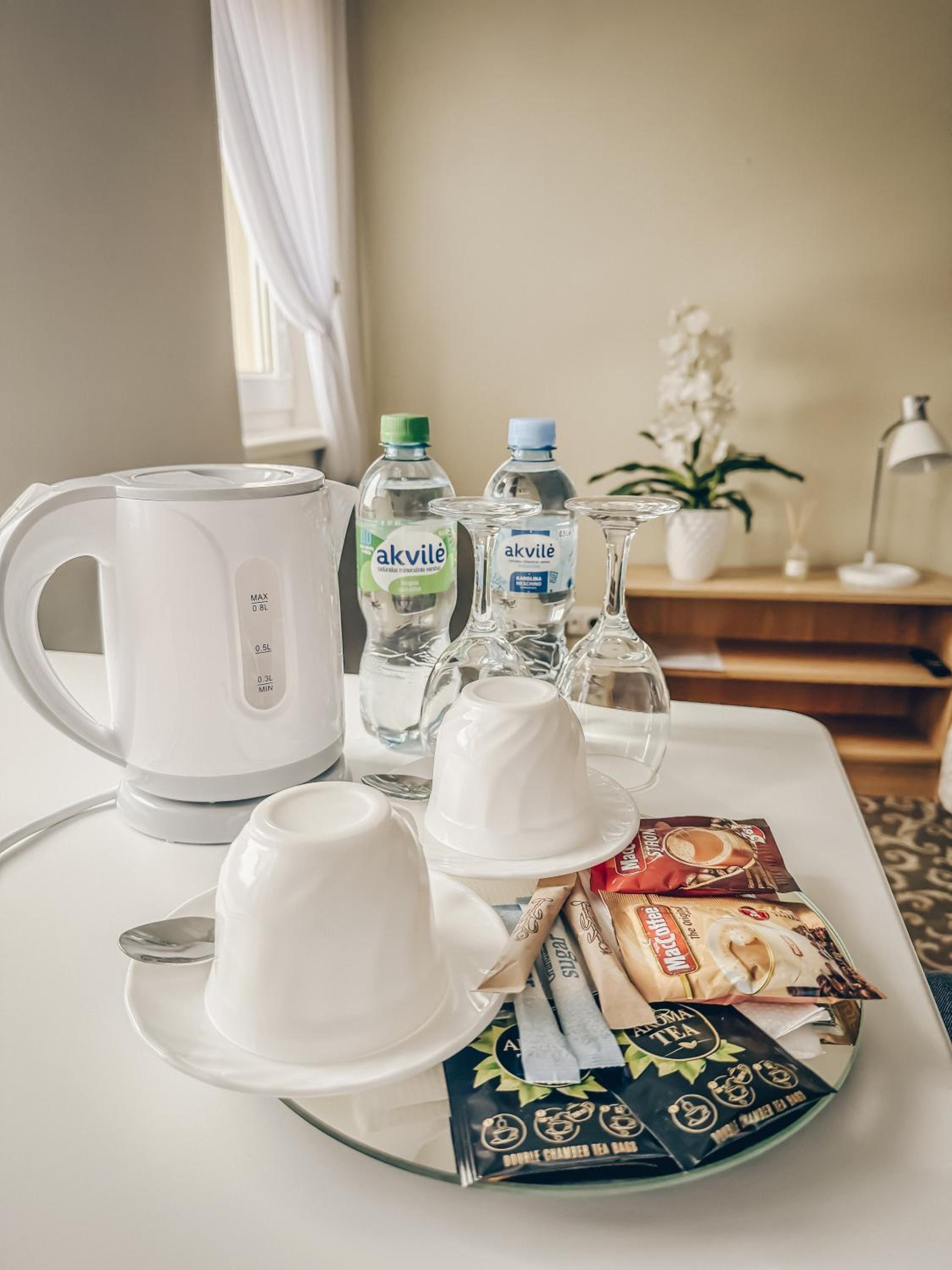 Kambaryje pageidaučiau, kad būtų arbatinukas.