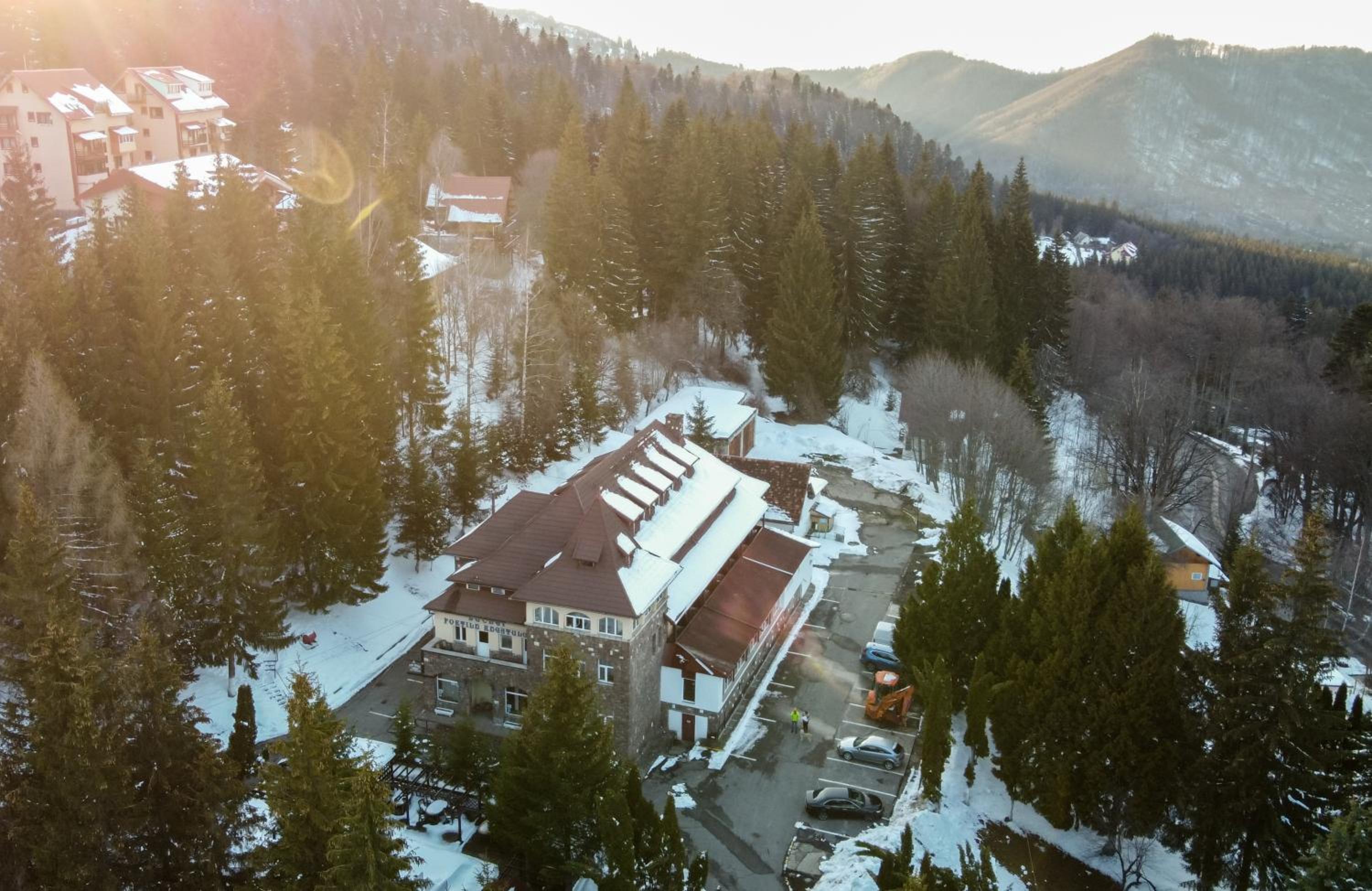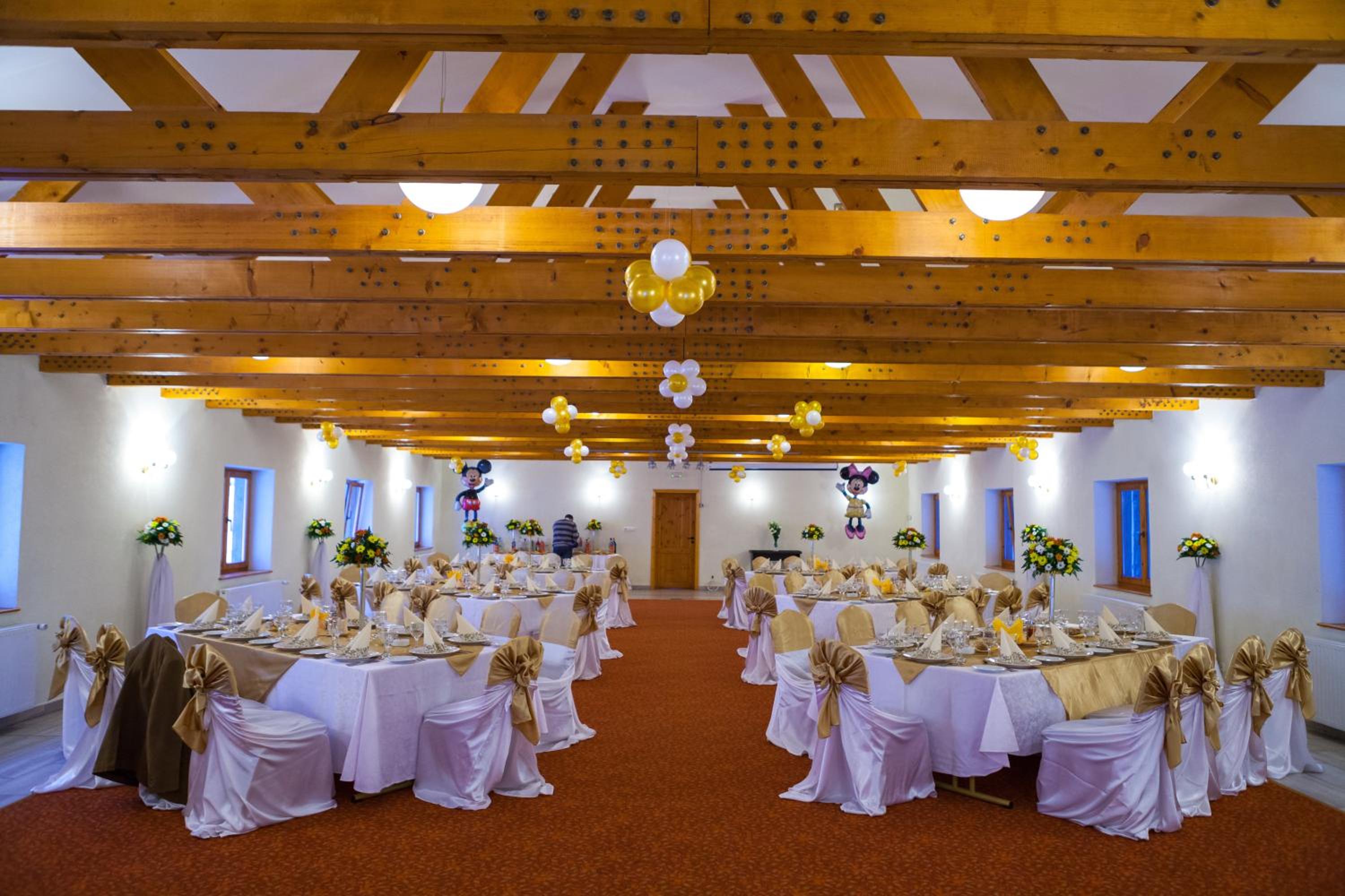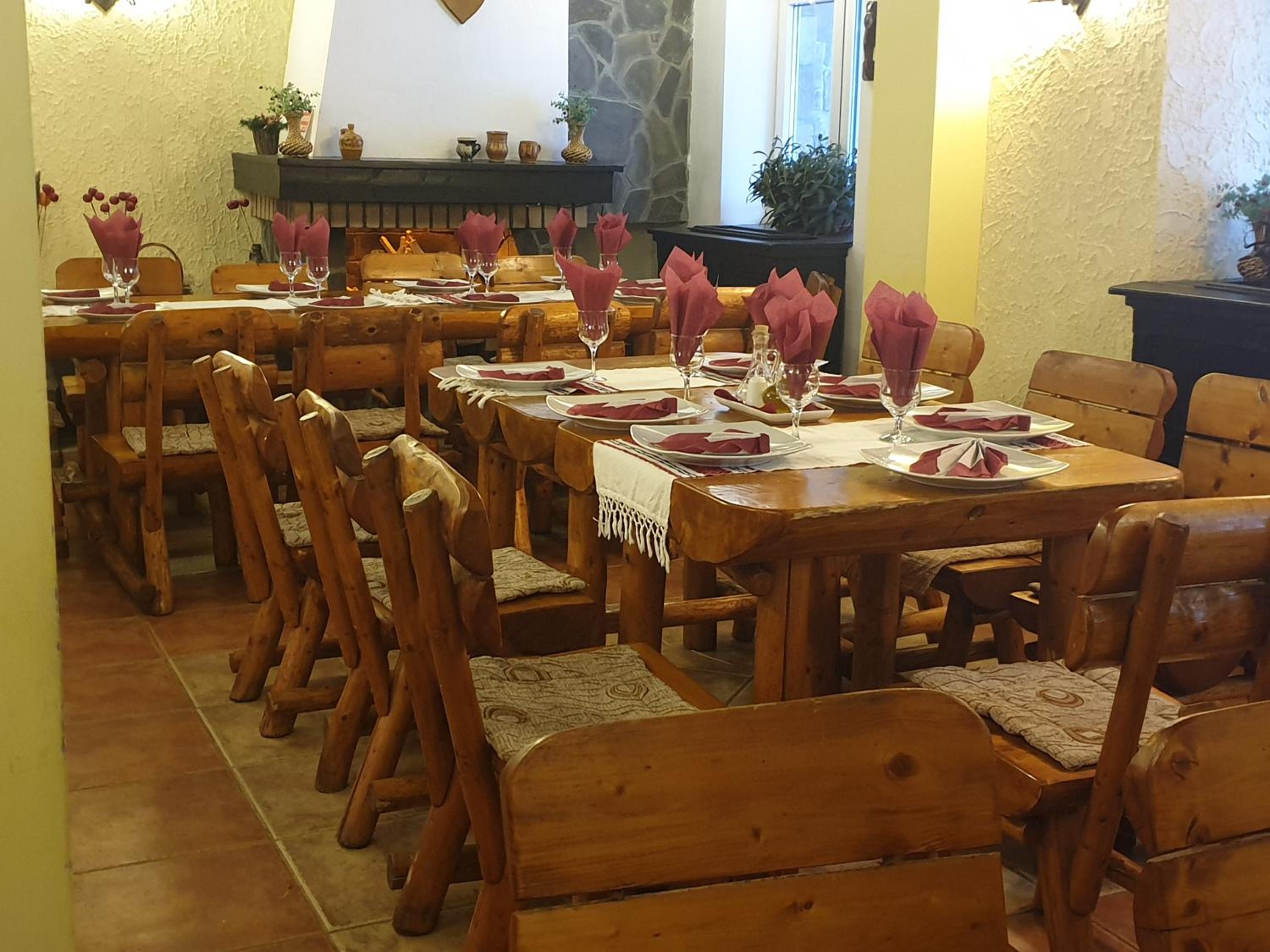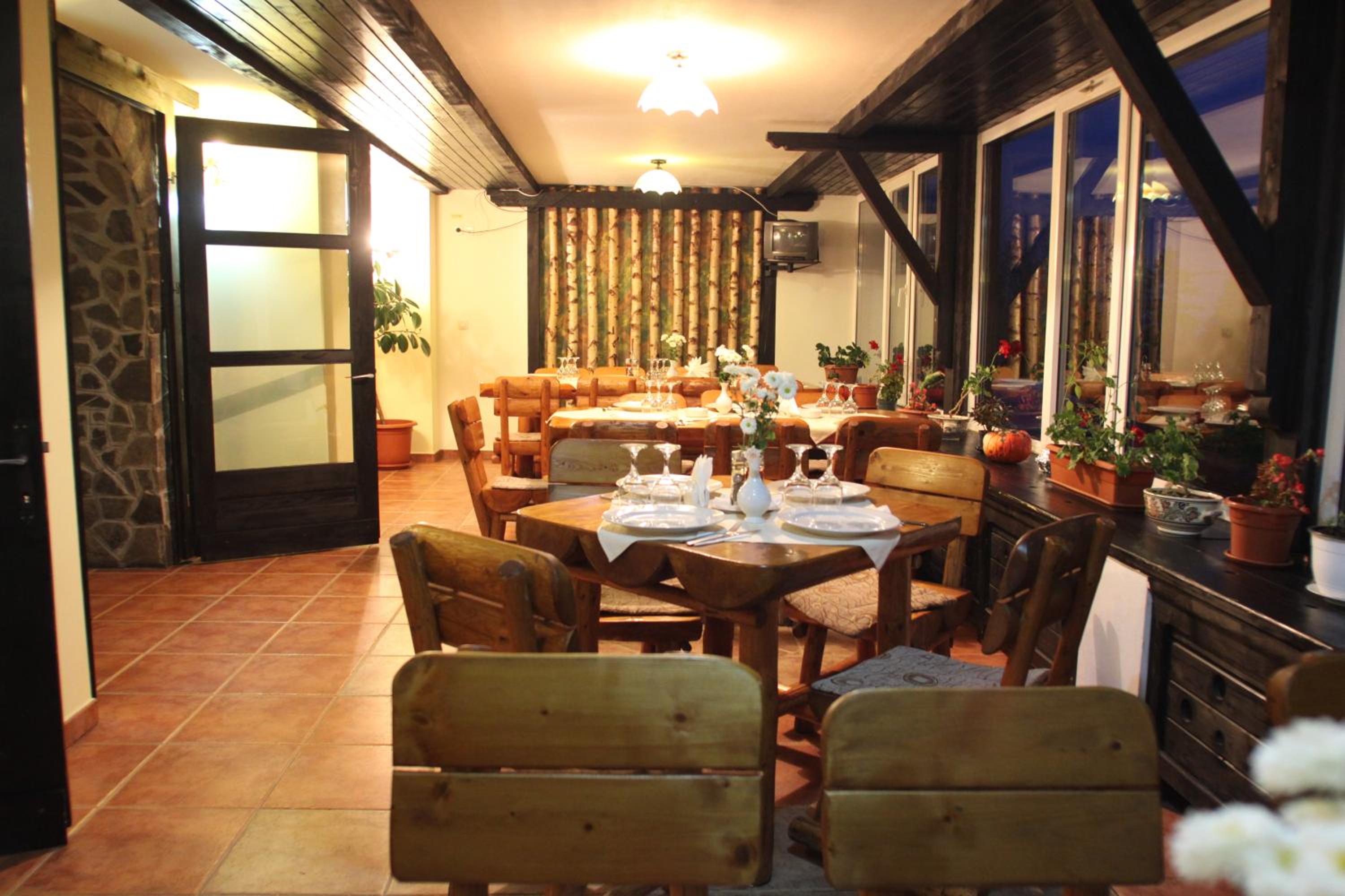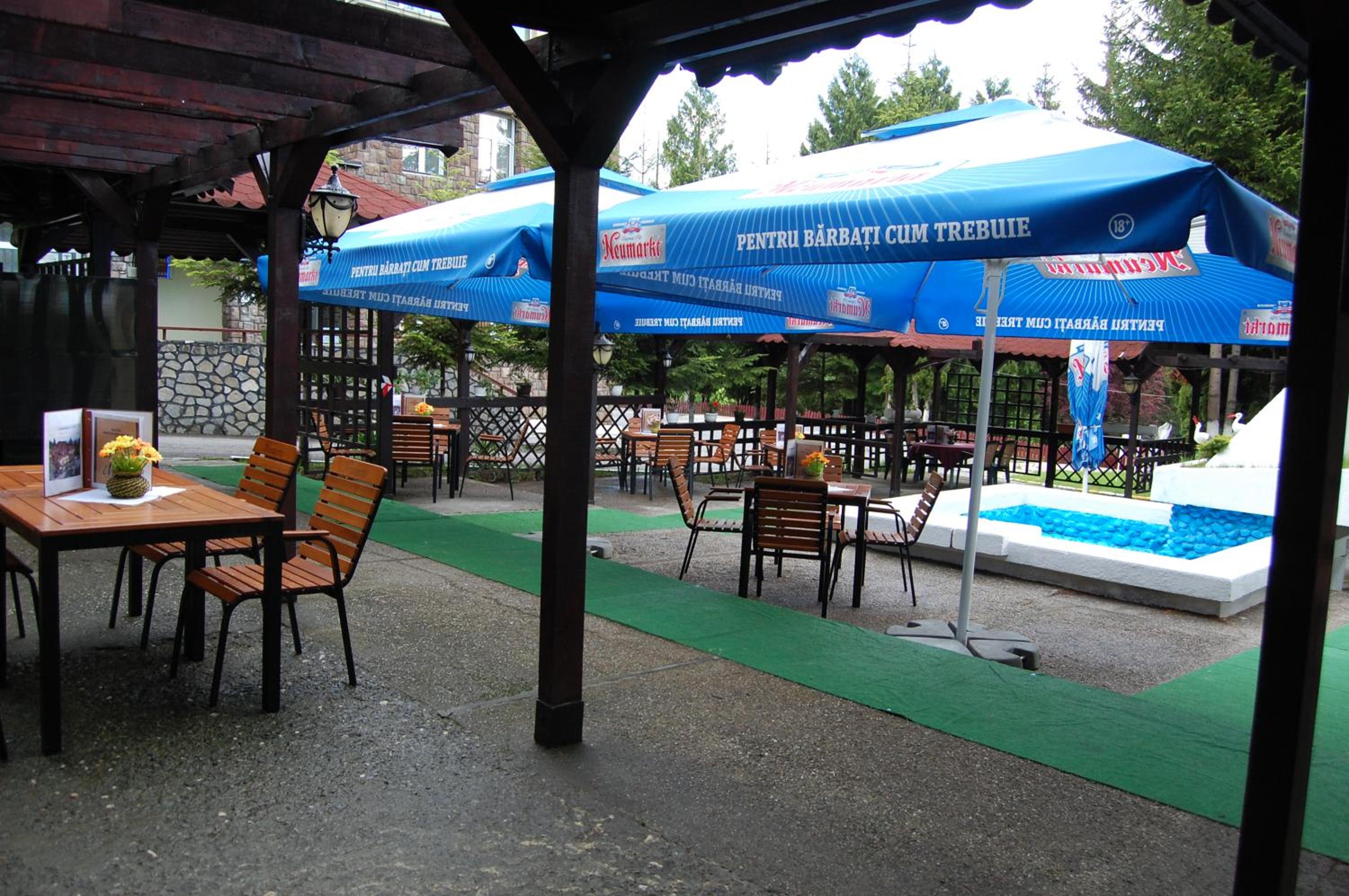 Immerse yourself in the ambiance of a hunting lodge at the hotel's restaurant, serving authentic Romanian dishes. Unwind on the outdoor terrace with a fountain and savor the picturesque mountain views.
