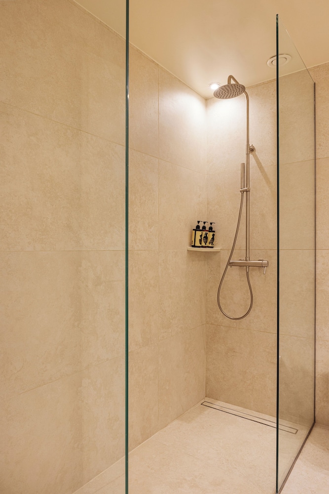 Only downside is that the shower gets the entire bathroom wet. Not sure why the newer hotel go with partial glass doors.