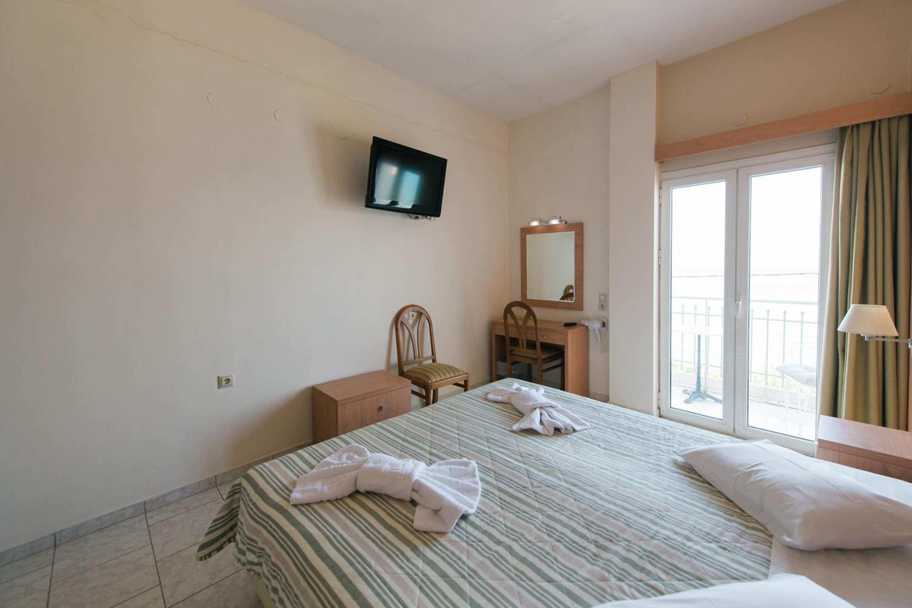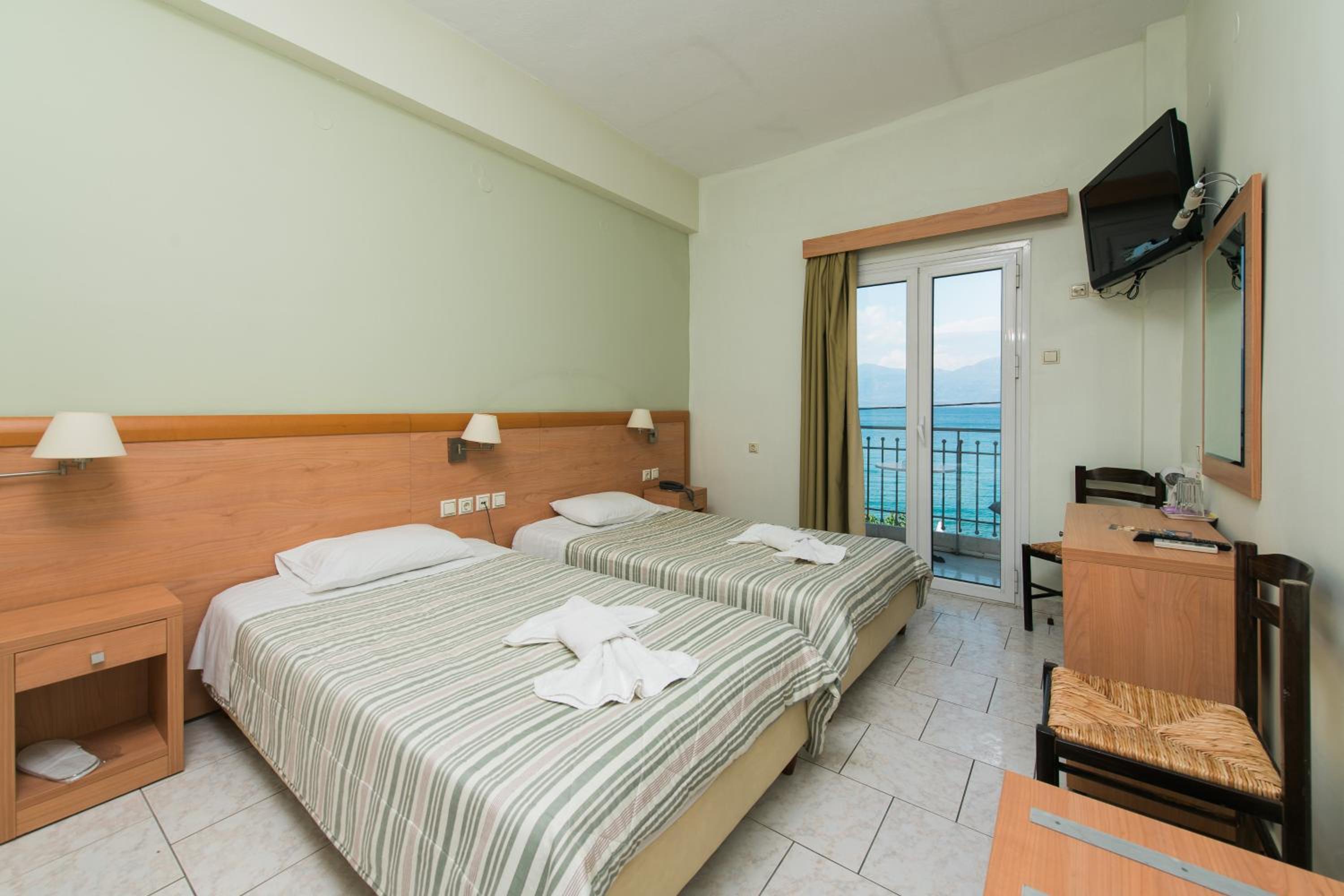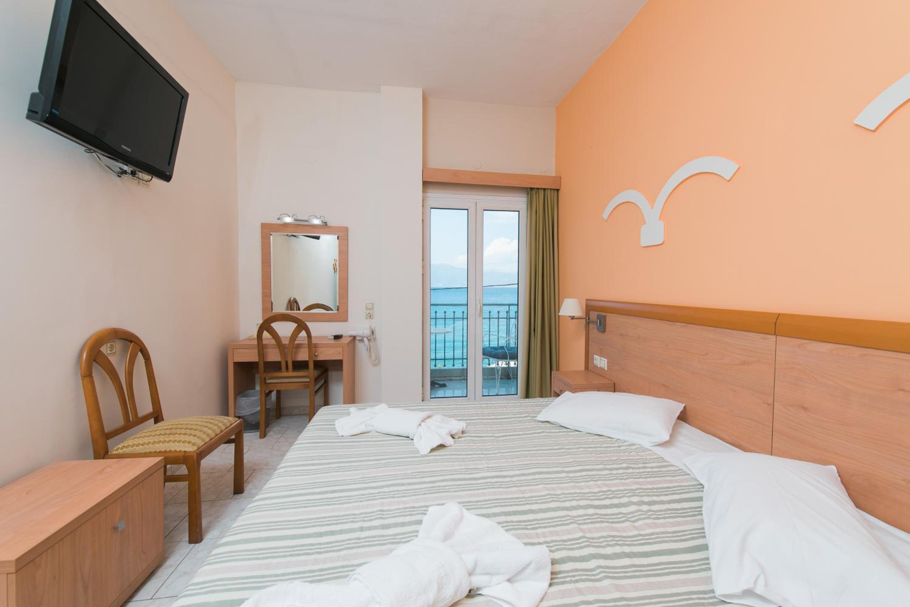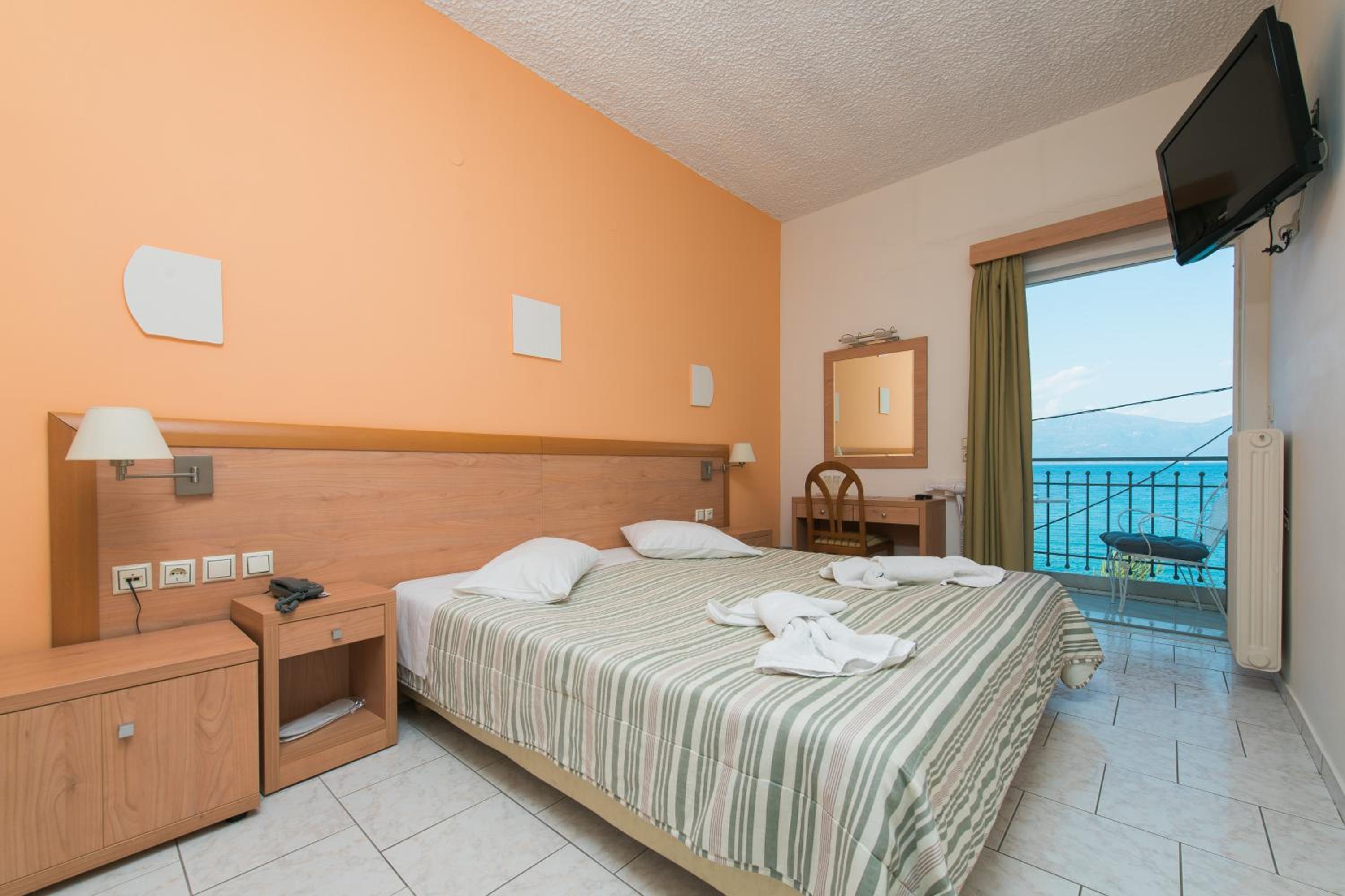 オフシーズンのギリシャ旅行。駐車場(近隣に市営とホテル前の道と)とスーパー・高速へのアクセス、海への近さで当初選びましたが、実際に行ってみると、部屋や廊下の清潔感やスタッフ様の対応と出待ち猫様に高評価。