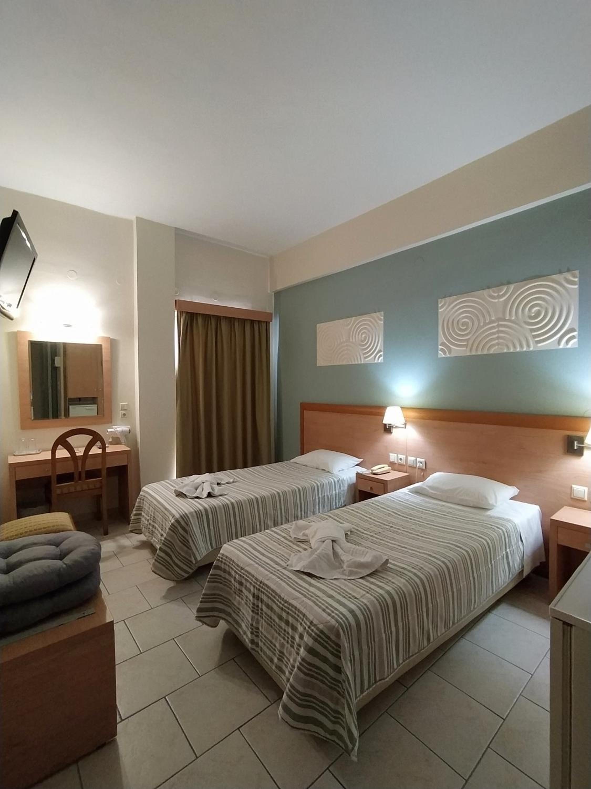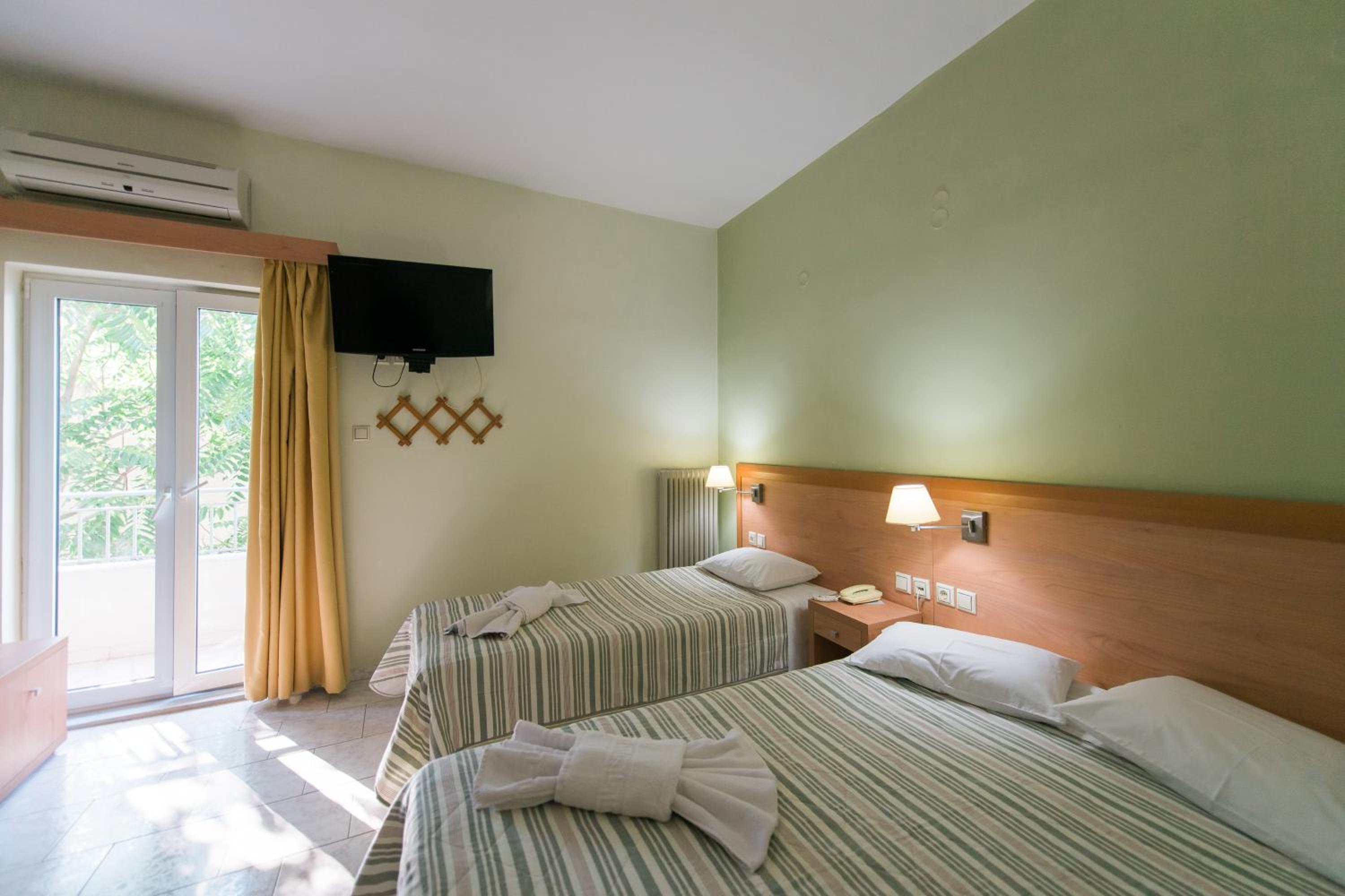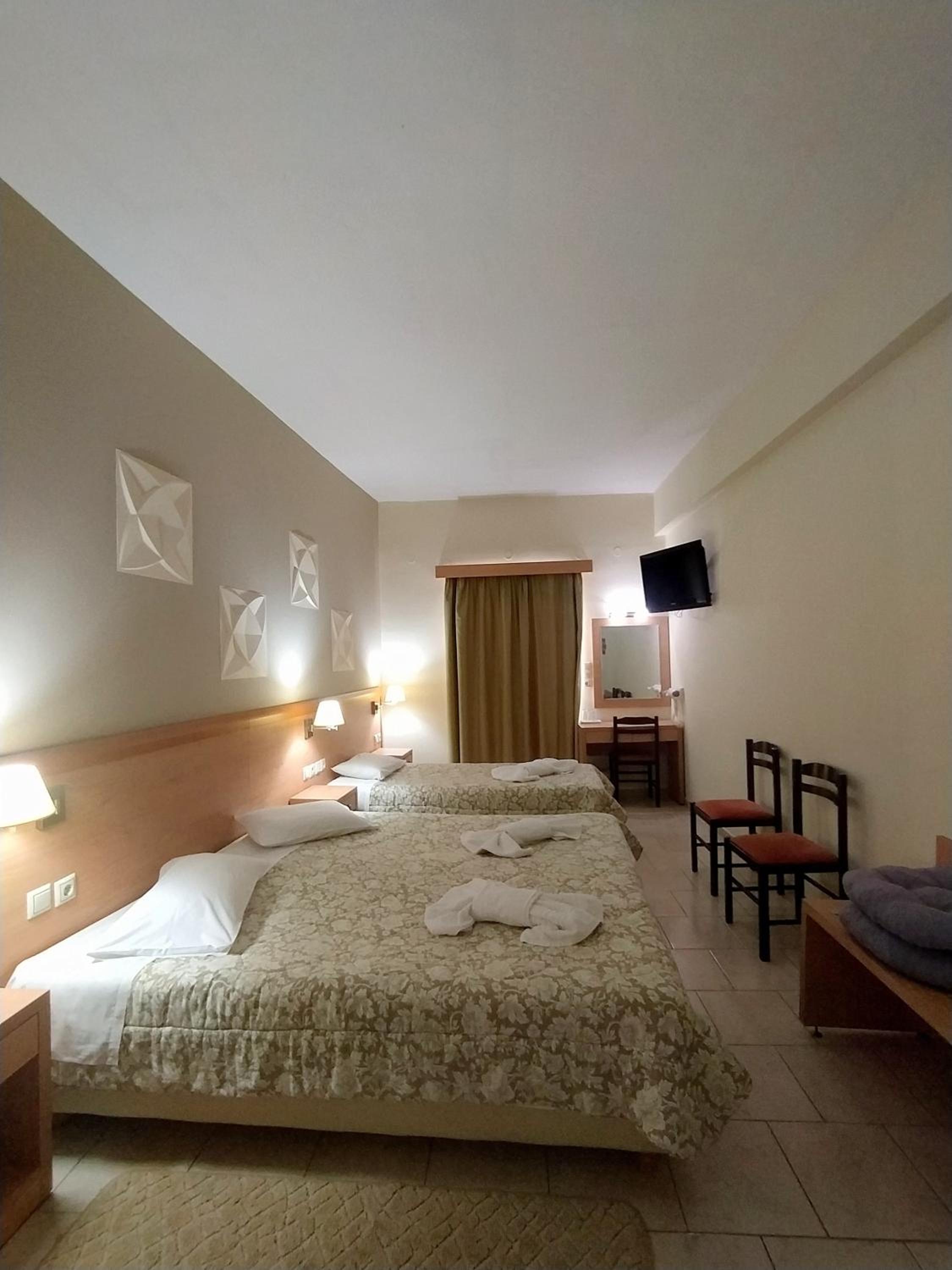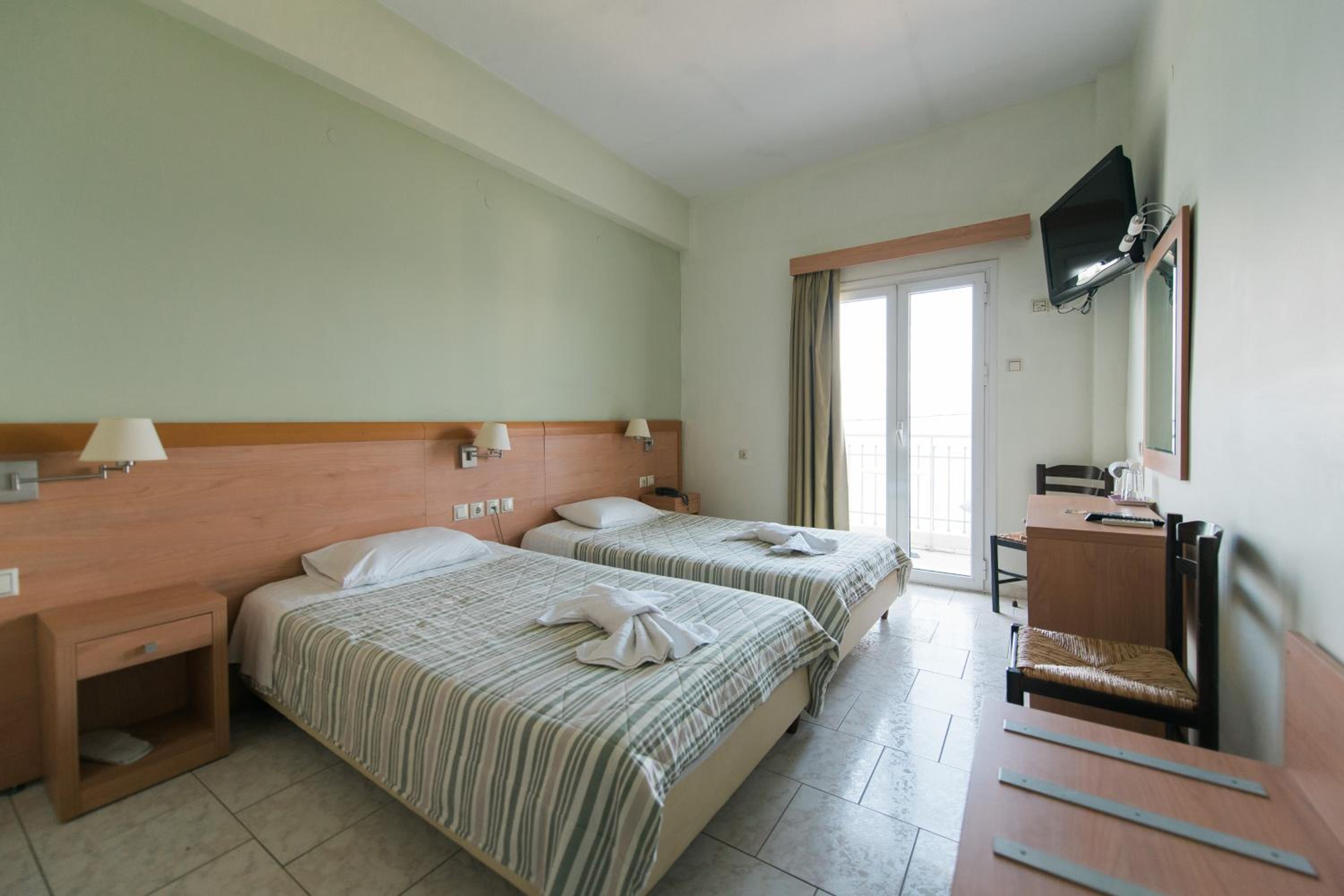 オフシーズンのギリシャ旅行。駐車場(近隣に市営とホテル前の道と)とスーパー・高速へのアクセス、海への近さで当初選びましたが、実際に行ってみると、部屋や廊下の清潔感やスタッフ様の対応と出待ち猫様に高評価。