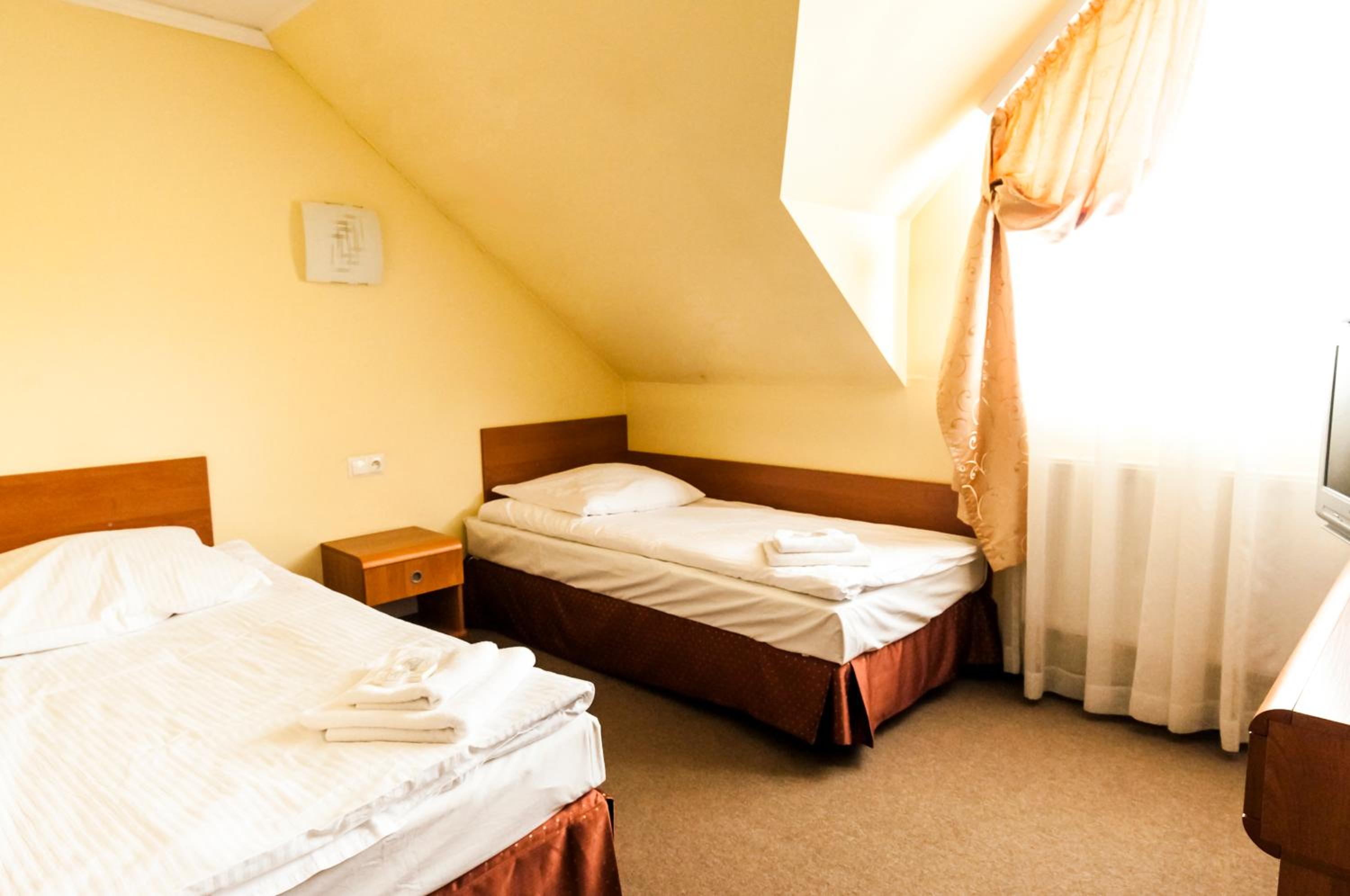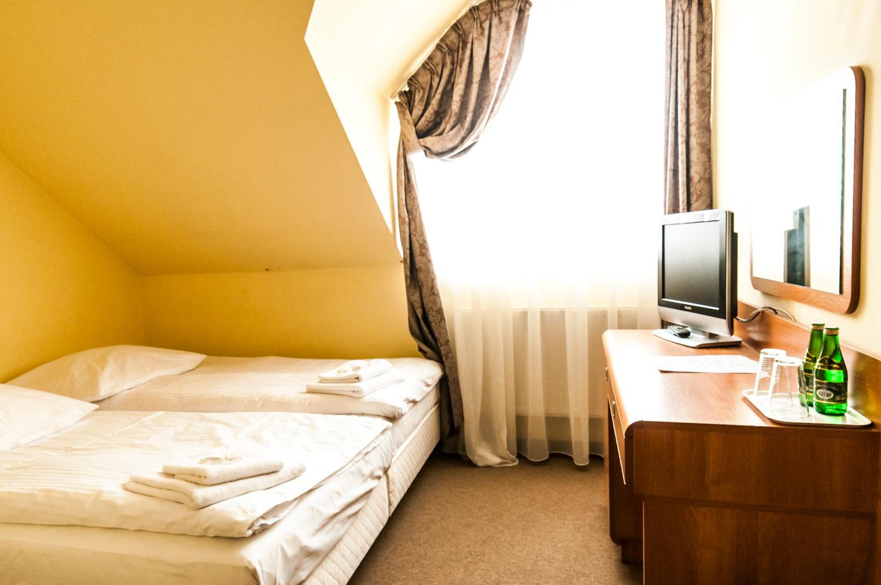 Brak klimatyzacji w pokojach (pokoje na poddaszu), ciasno-2 osoby nie mogą się minąć w pokoju, chwiejąca się muszla klozetowa, codzienny smród z podwórka (chyba wywóz szamba), brak windy, brak możliwości skorzystania z szafy, którą jak próbowałam otworzyć to mało co mnie nie przygniotła, tv z czasów PRL. Nie polecam, cena bardzo zawyżona w stosunku do jakości.