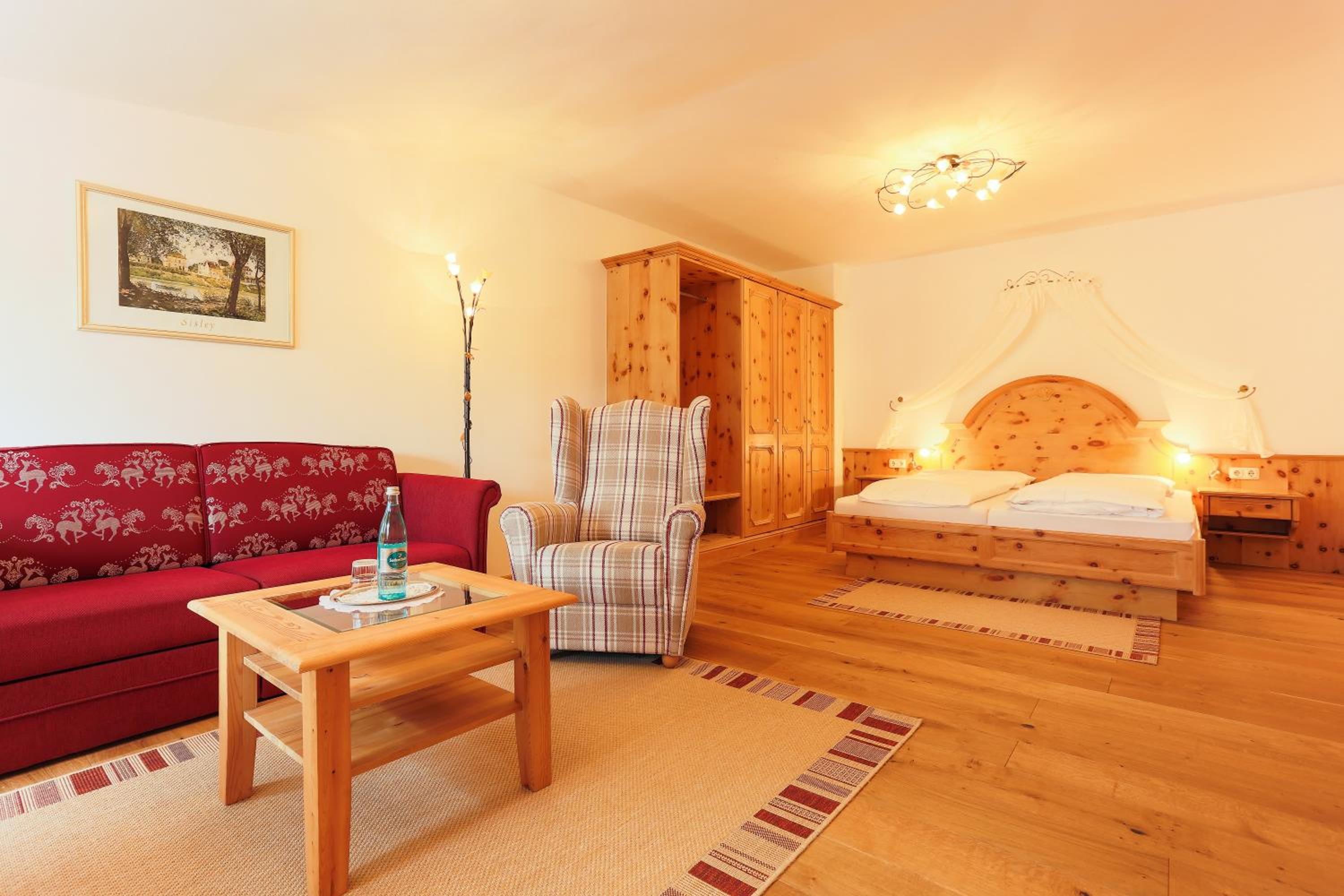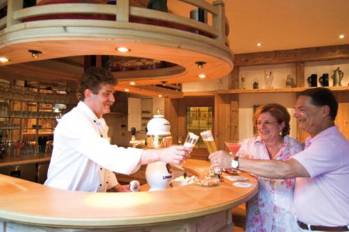 Discover the serene ambiance of Sattelbogener Hof with its lush garden and inviting bar. Unwind in the peaceful surroundings and enjoy a refreshing drink at the cozy bar.