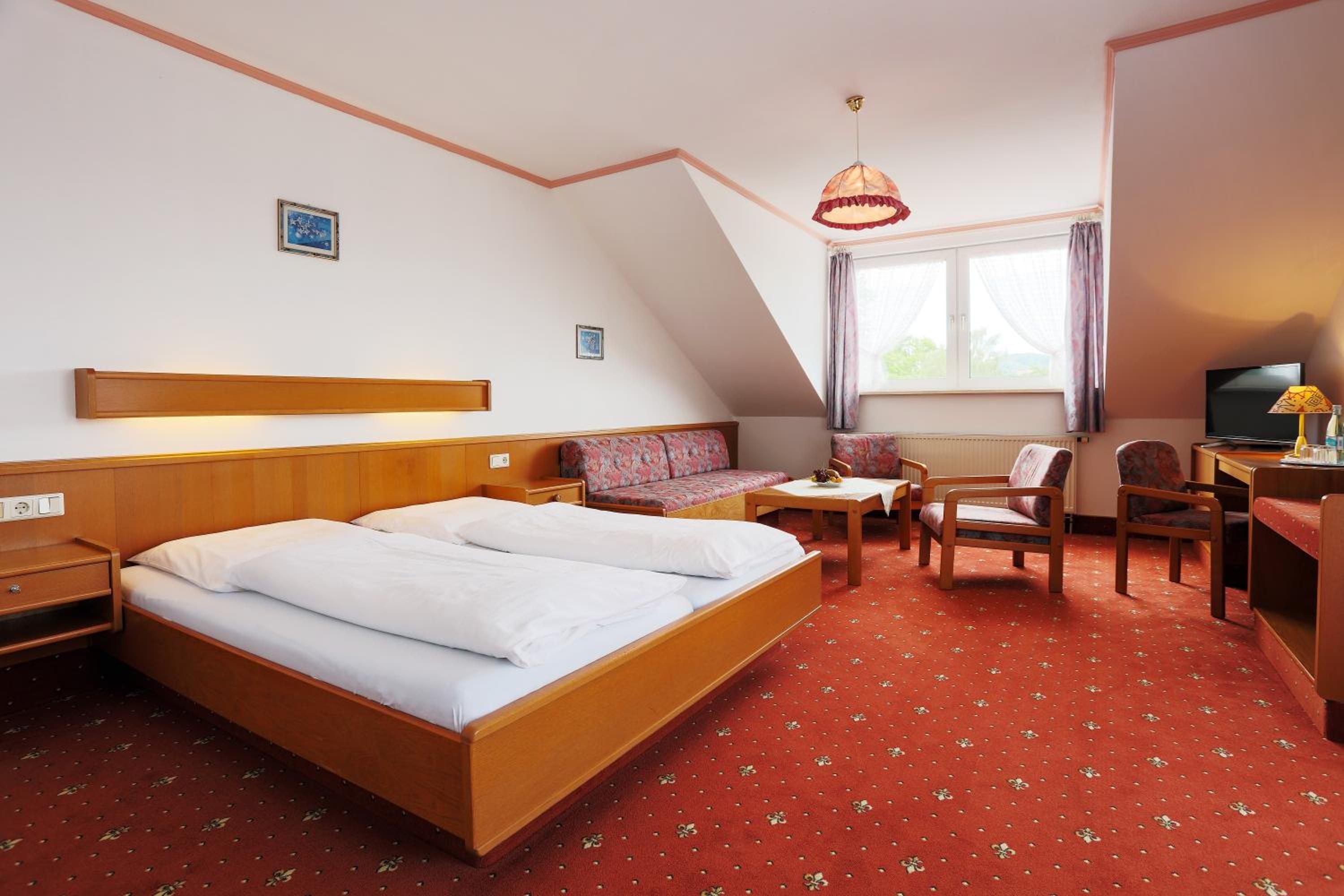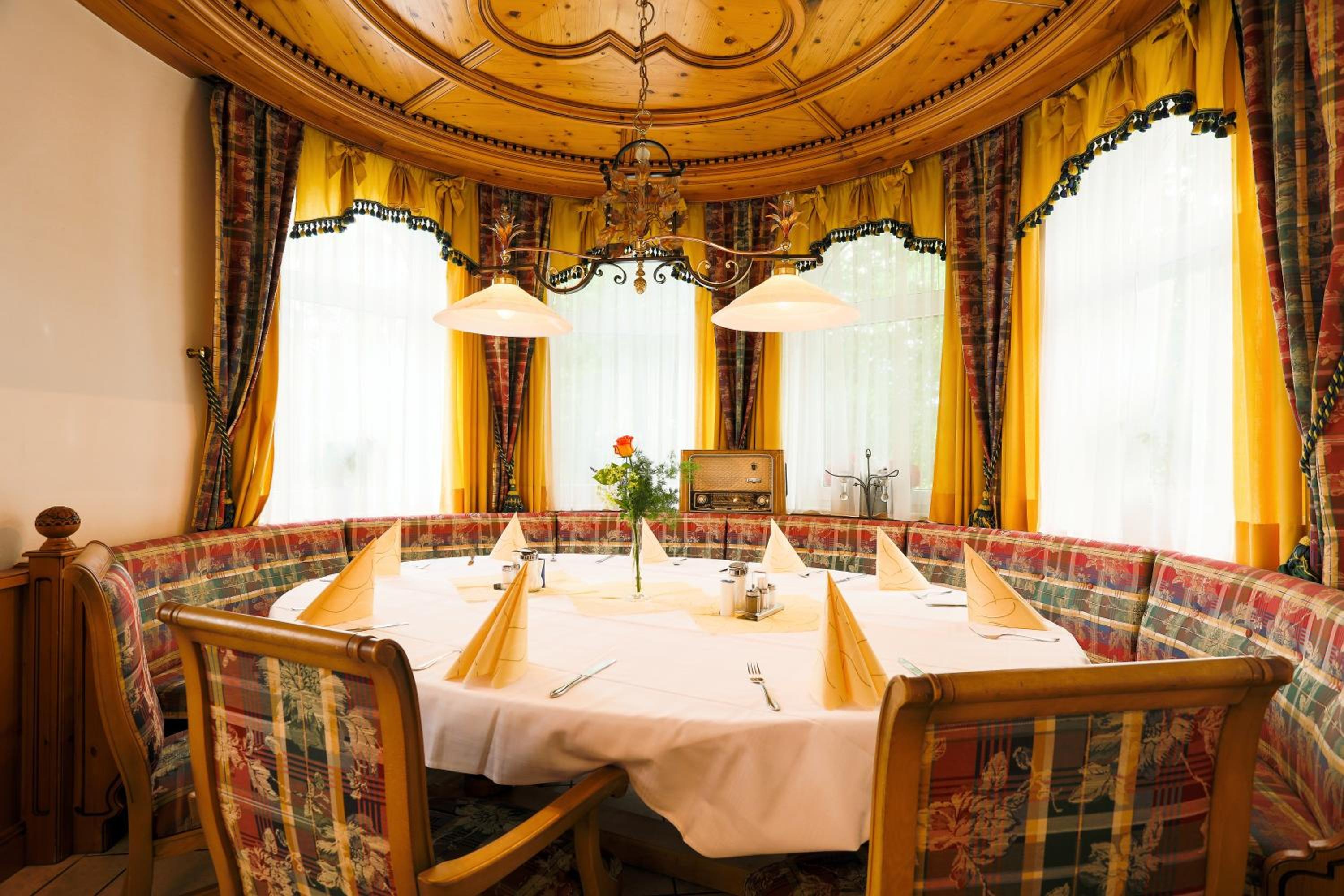 Het ontbijt was voortreffelijk en zeer uitgebreid in een zeer gezellig vertrek. Het diner mocht er ook zijn, in een ander zeer 'gemütliche kamer. Het hotel ziet er echt 'Bayerisch' uit een ligt op een prachtige locatie. Een half uur van de snelweg en dat vonden wij prima.