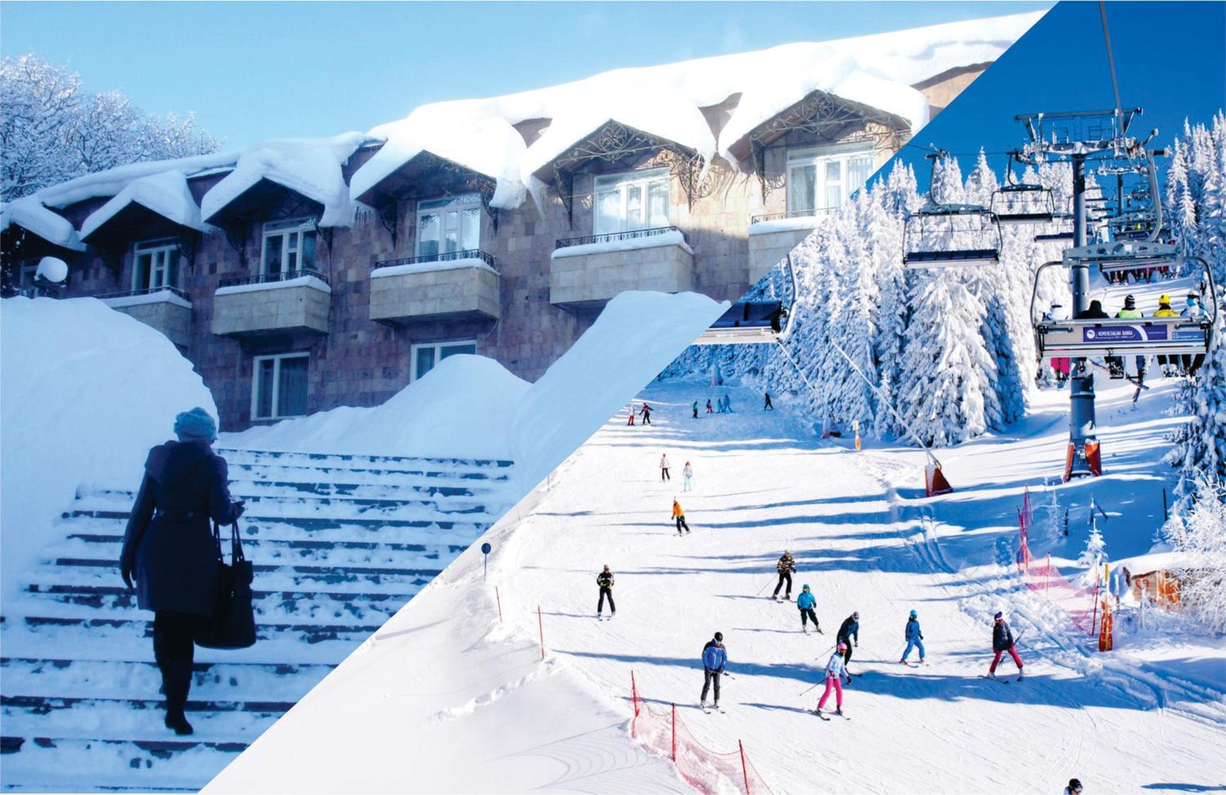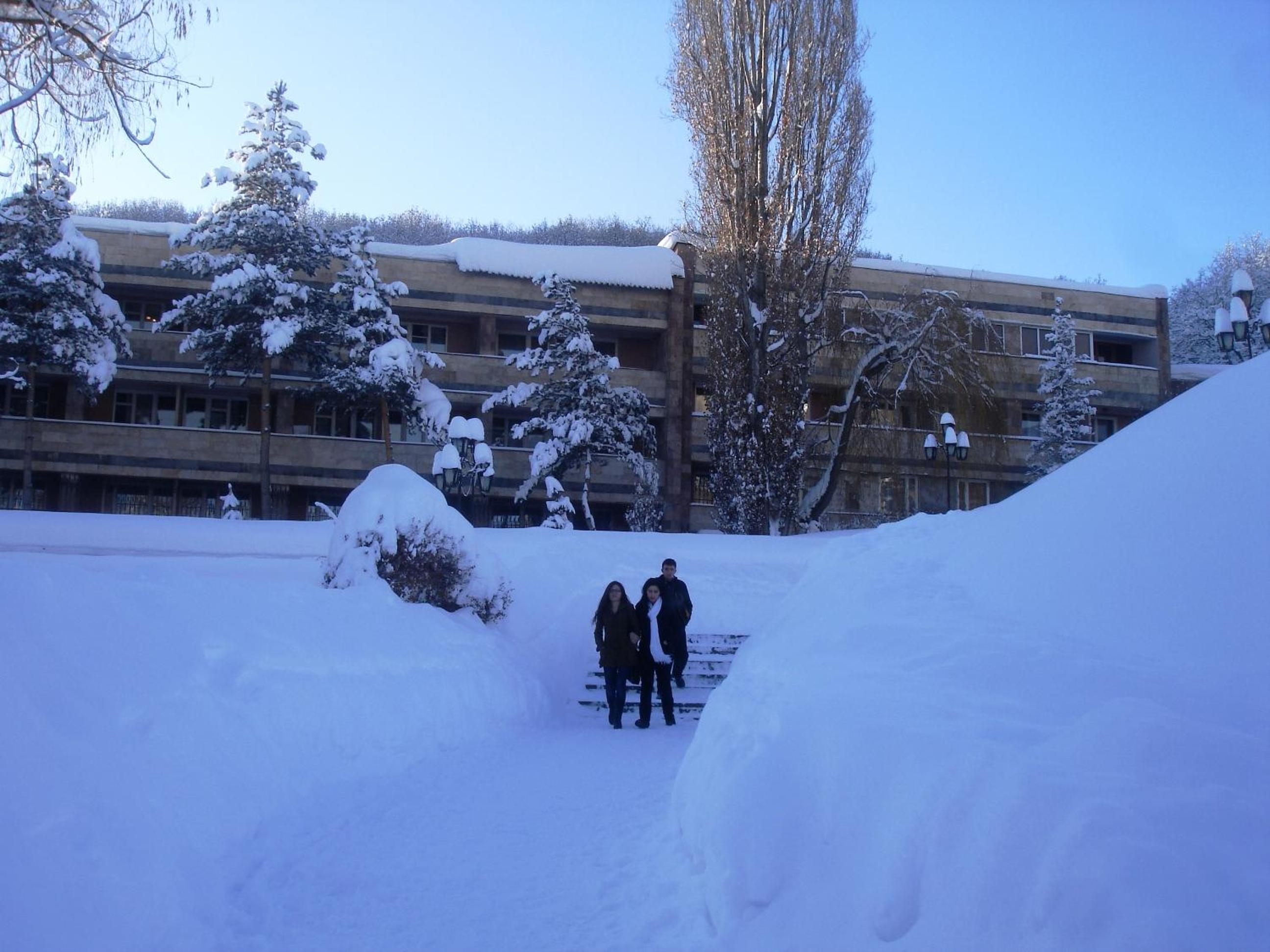 A lot of services for children: snow sledges and tubes with specially prepared slope, trampoline, stuffed toys, etc. The same for adults: pool, library, board games, PlayStation, piano, air hoсkey, etc. Great location - nature around, near the center of Tsaghkadzor, well-groomed territory (for Armenia). A lot of facilities in the room, good catering (but cheap though). Huge and cozy hall, carpets in the corridors. In general it was a pleasure to explore the corners of the resort.