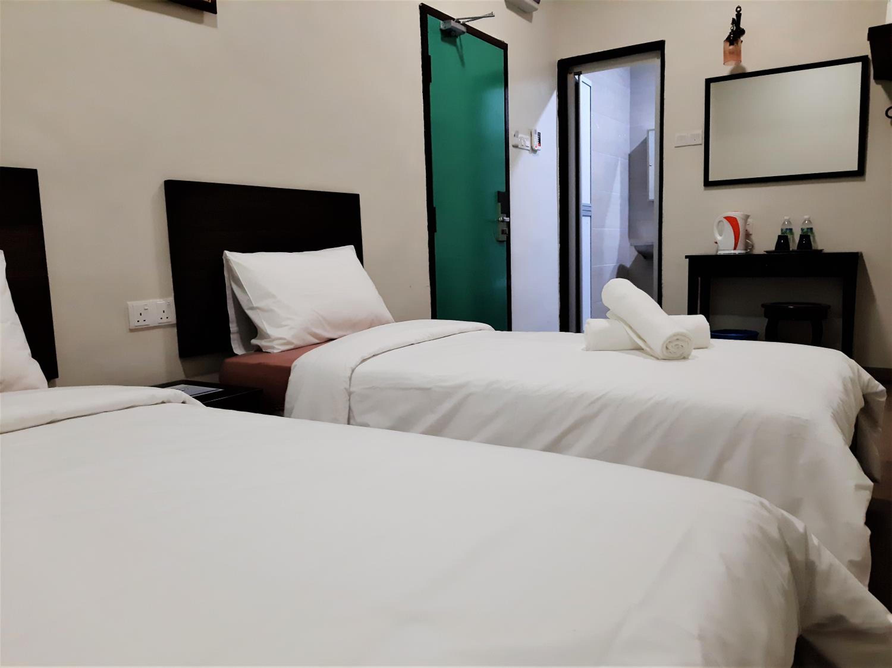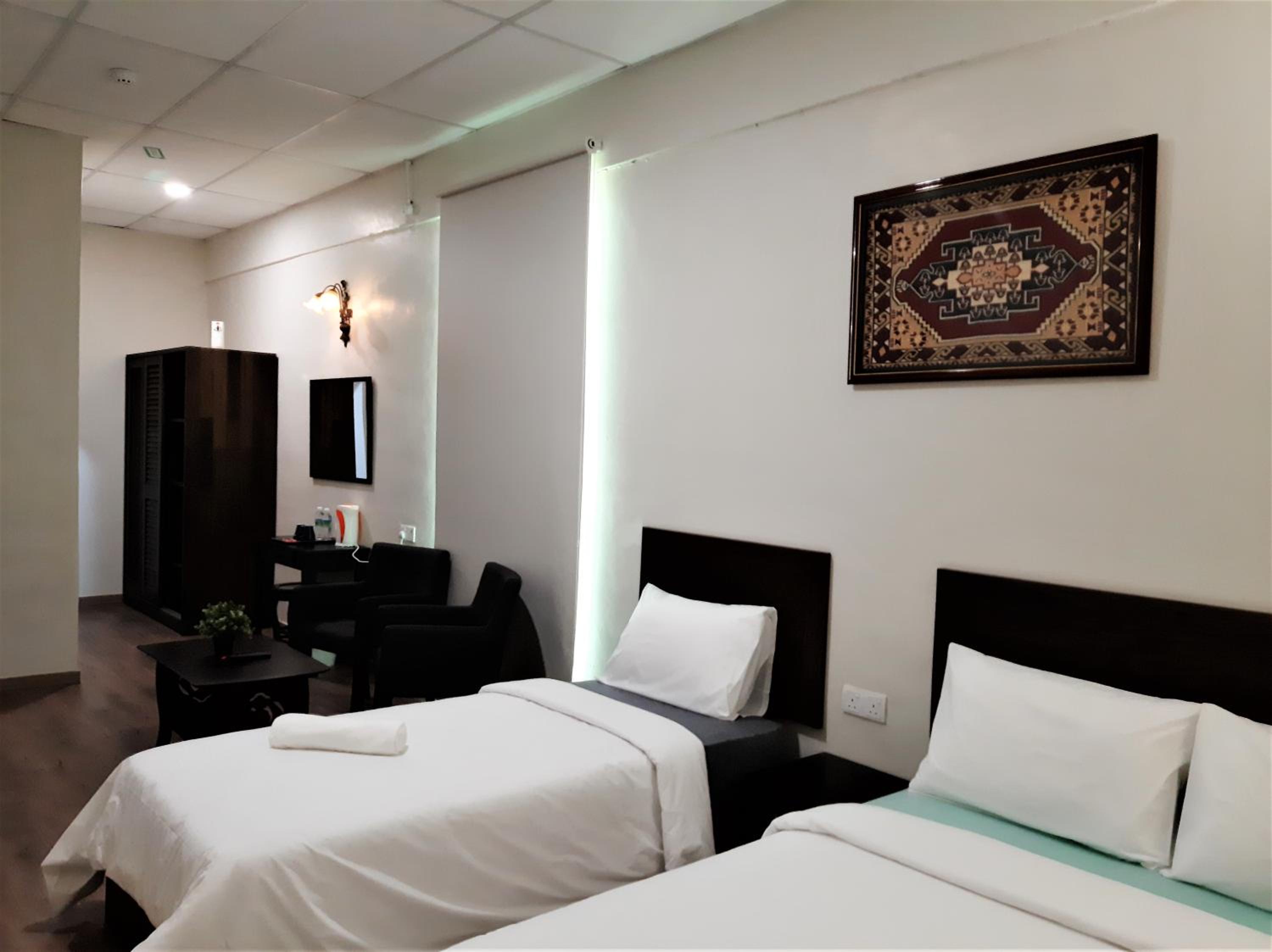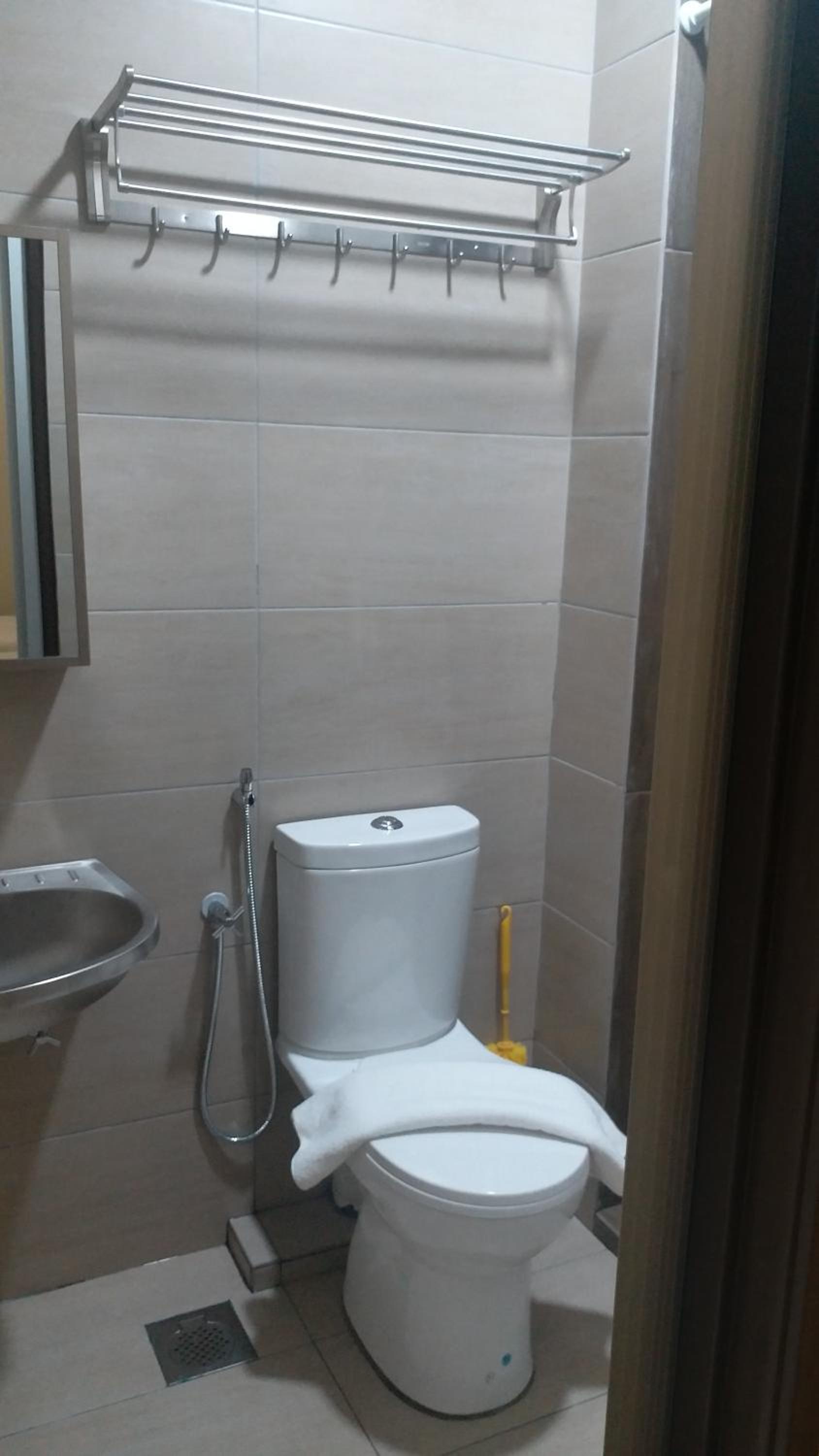 Bilik bersih and paling saya suka is toilet dia sbb bersih and interior dia not bad quite nice la.. i booked for queen room and it's quite spacious sbb ada ruang solat and muat sangat for solat berjemaah 2 orang, ada kiblat and katil semua selesa tak de kotor ii, staff pun bagus sentiasa senyum. And staff explain everything about bilik in detail and they said kalau for solo traveller nak bilik single boleh je call hotel directly sbb dlm app ni drg tak masukkan bilik single and bilik tu quite nice sebab tempat solat pun still and not just katil semata