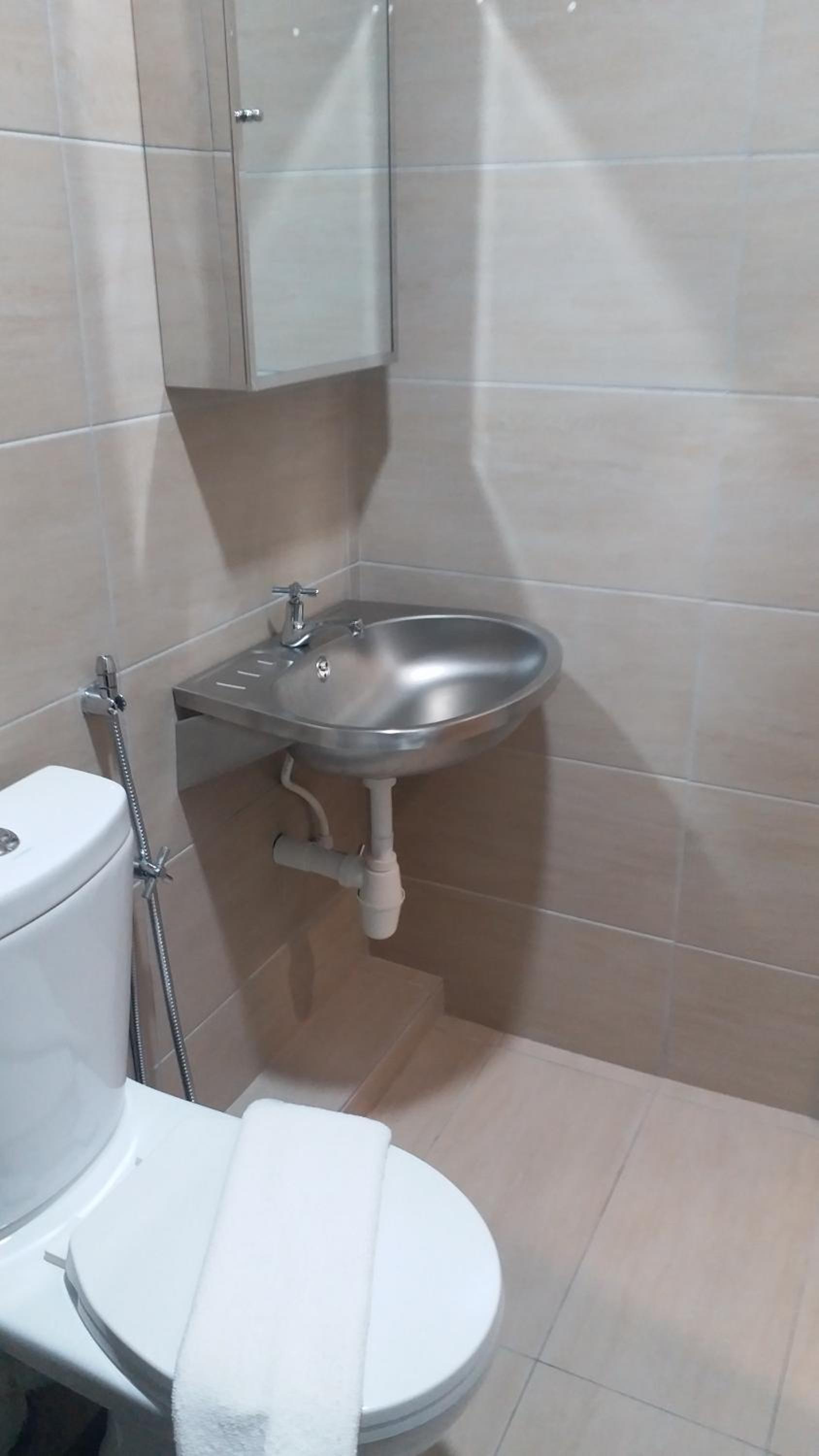 Bunyi paip air singki berbunyi kalau lepas guna, tingkap yg ada tu agak cerah jika nak rehat waktu siang..agak mengganggu kalau nak tidur waktu siang..walau dh tutup lampu cahaya luar tetap masuk dlm..suggest utk guna kain tutup tu warna gelap..