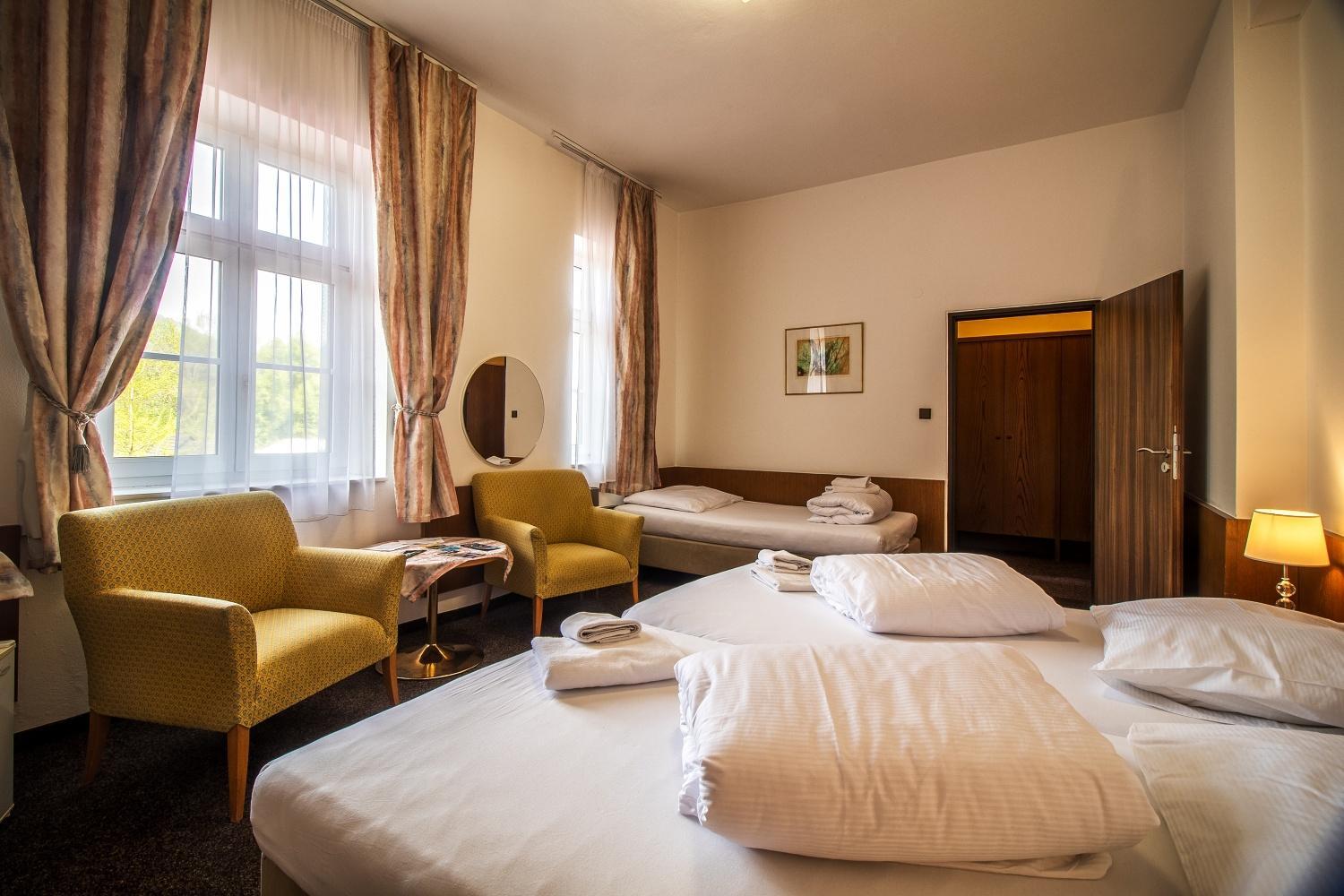 Dobra lokalizacja - blisko do wielu atrakcji Czeskiego Raju. Miła obsługa. Będąc w hotelu cofamy się w czasie - kiedyś musiało to miejsce robić wrażenie i być luksusowym miejscem. Obecnie wymaga remontu. Pomimo tego - pokój był czysty i wygodny. Śniadanie - smaczne ale bardzo minimalistyczne.