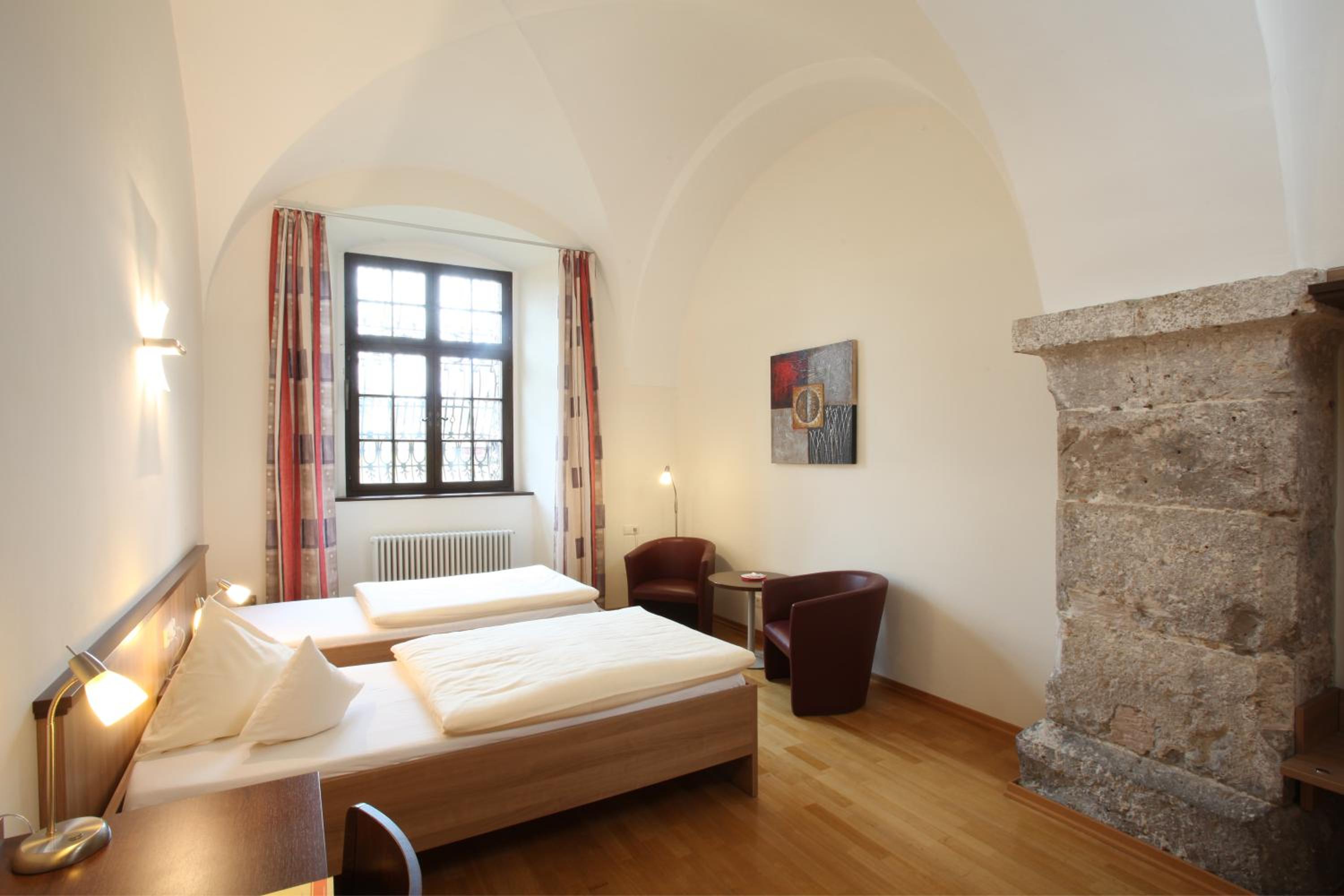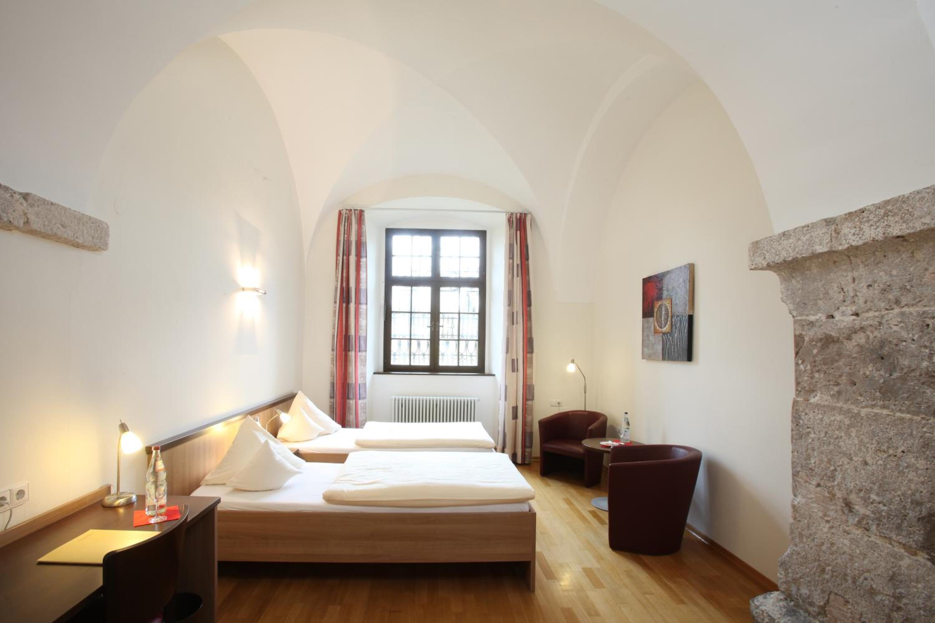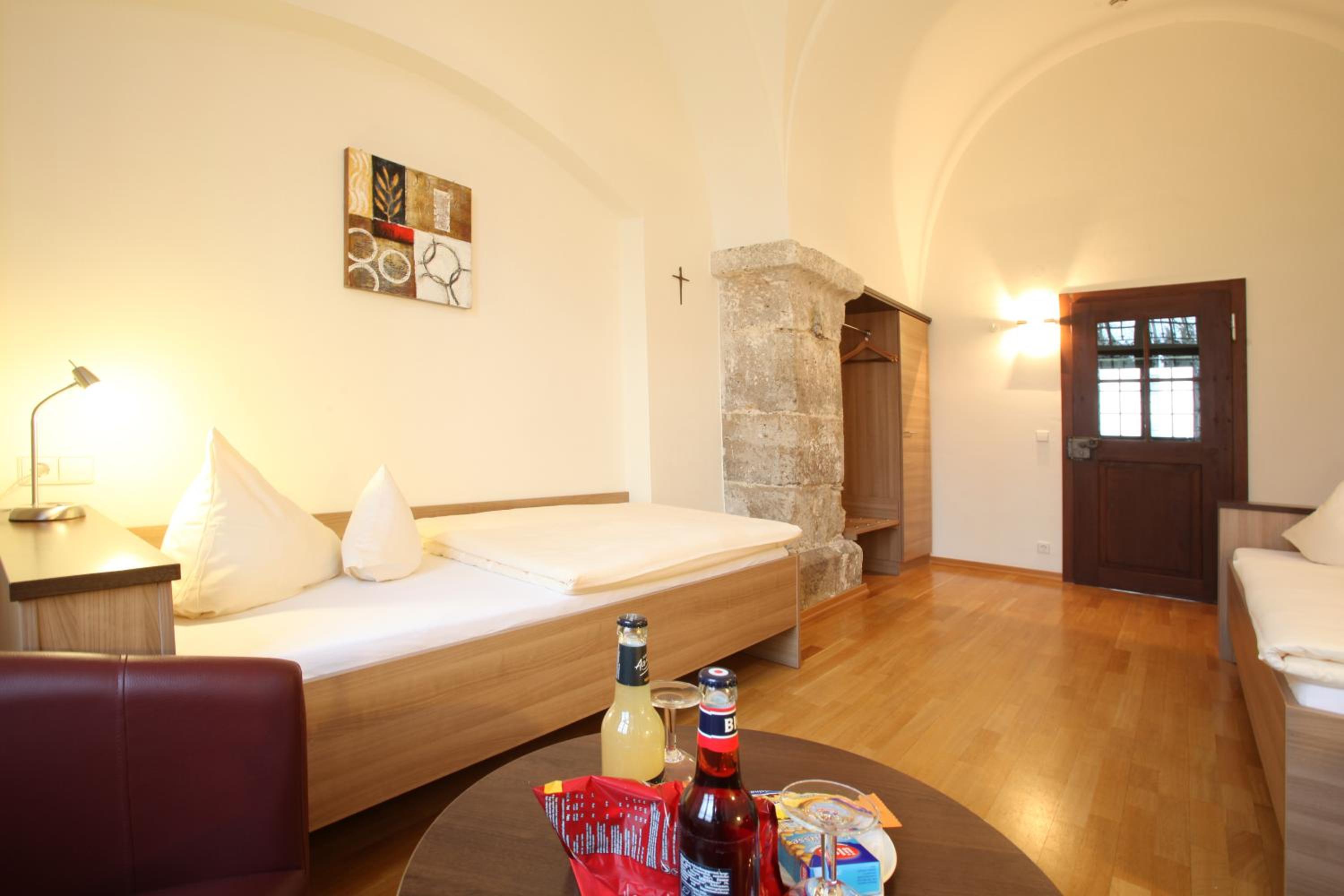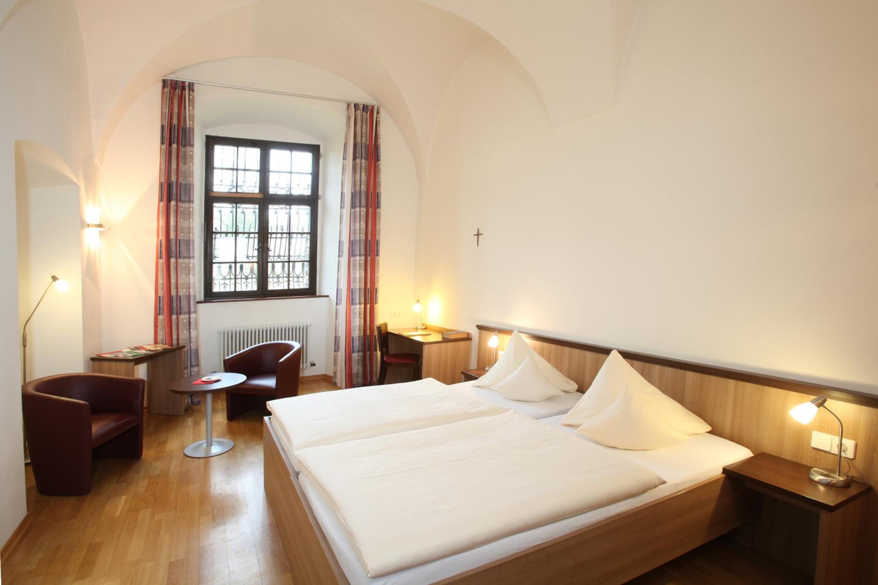 Gut sanierte Klosteranlage, Zimmer mit Kreuzgratgewölbe, lange beeindruckende Wandelgänge mit himmlischer Ruhe.