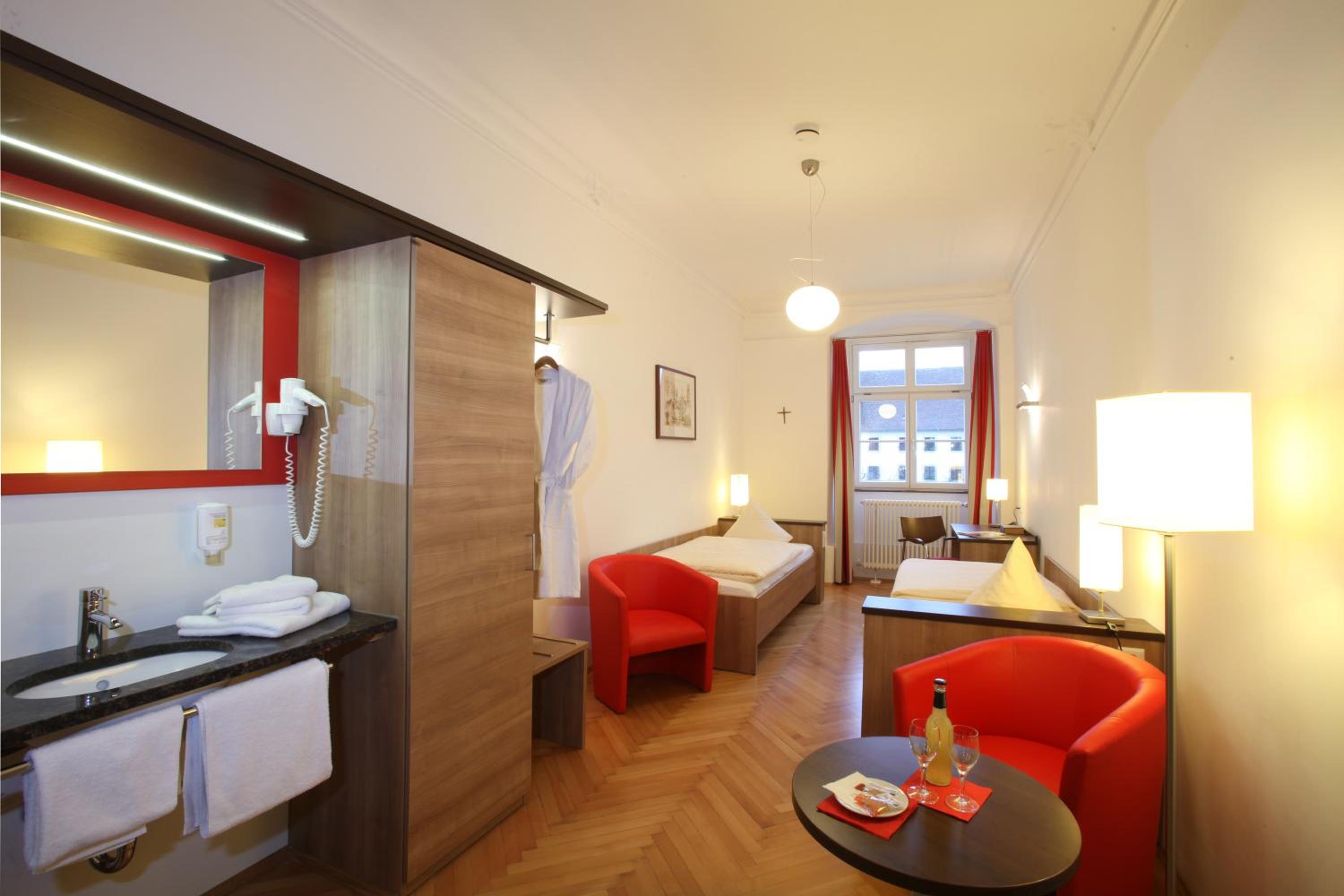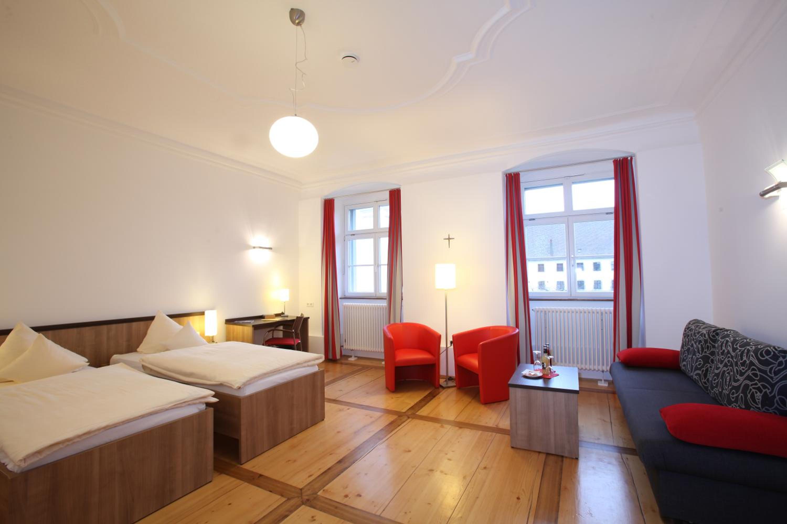 Experience comfort and elegance at Kloster Obermarchtal. Our rooms feature a seating area for your convenience, ensuring a relaxing stay.