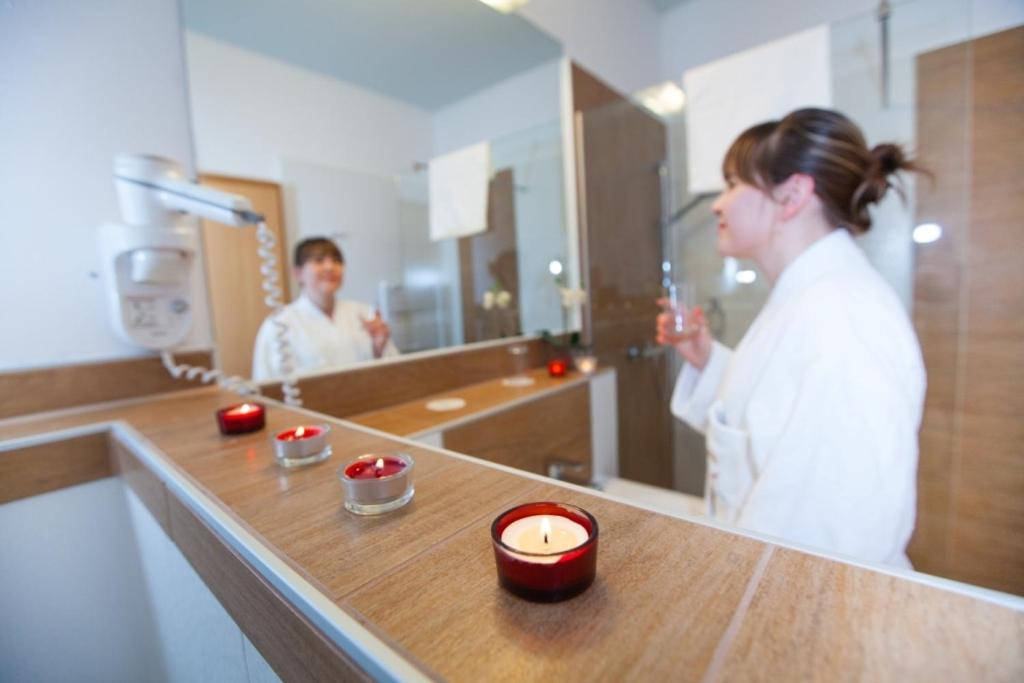 Die Nähe mit Direktzugang zur Therme war für uns das Highlight. Die ruhige Lage des Hotels. Zimmer mit Balkon. Interessant war das Abendessen in Selbstbedienung. Solide zubereitet. Ein kulinarisches Ereignis darf man allerdings nicht erwarten.