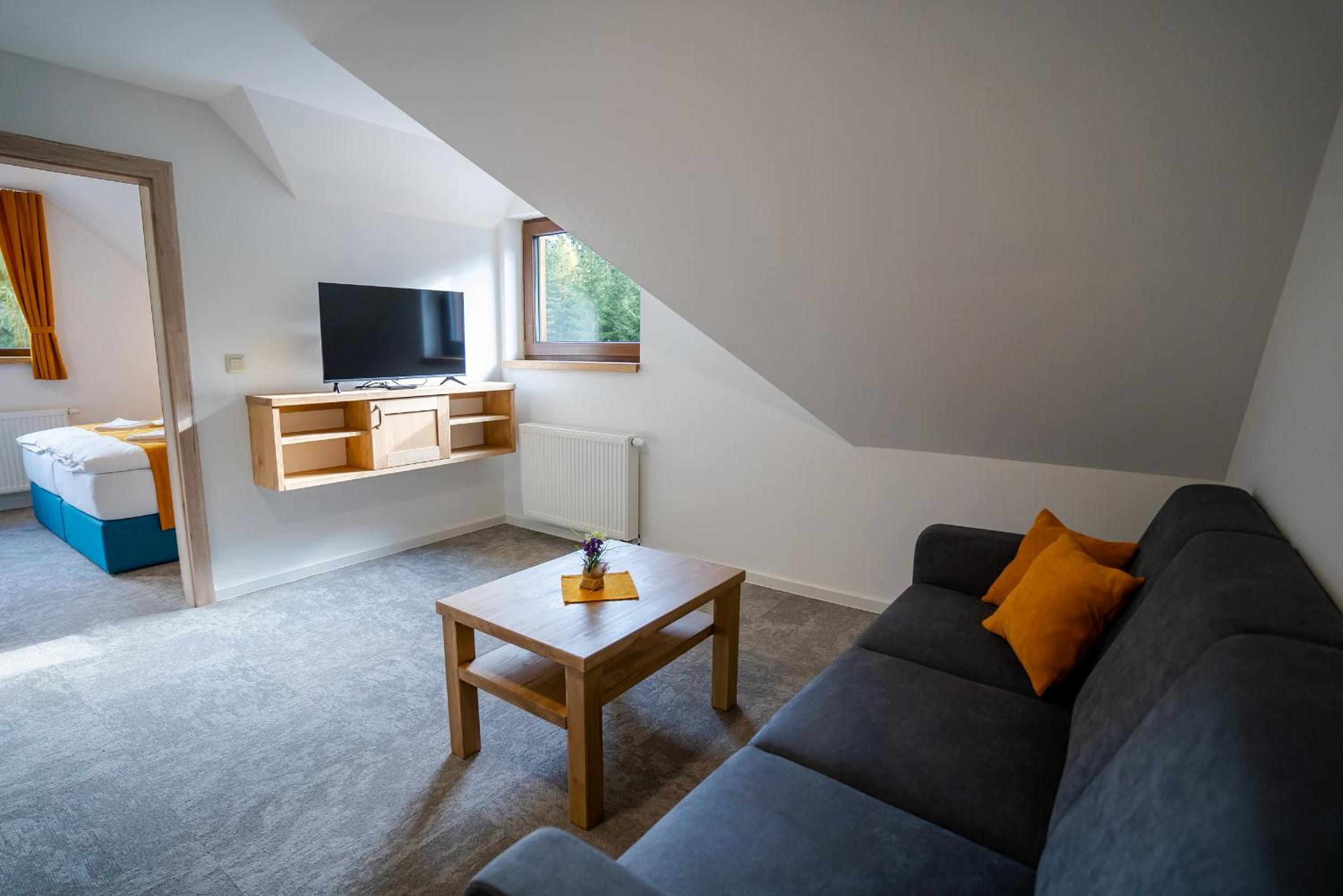 Some rooms at Rezort pri jazere Podbanské provide stunning mountain views, adding a touch of serenity to your stay. Each room features a flat-screen TV, private bathroom, and comfortable bedding.