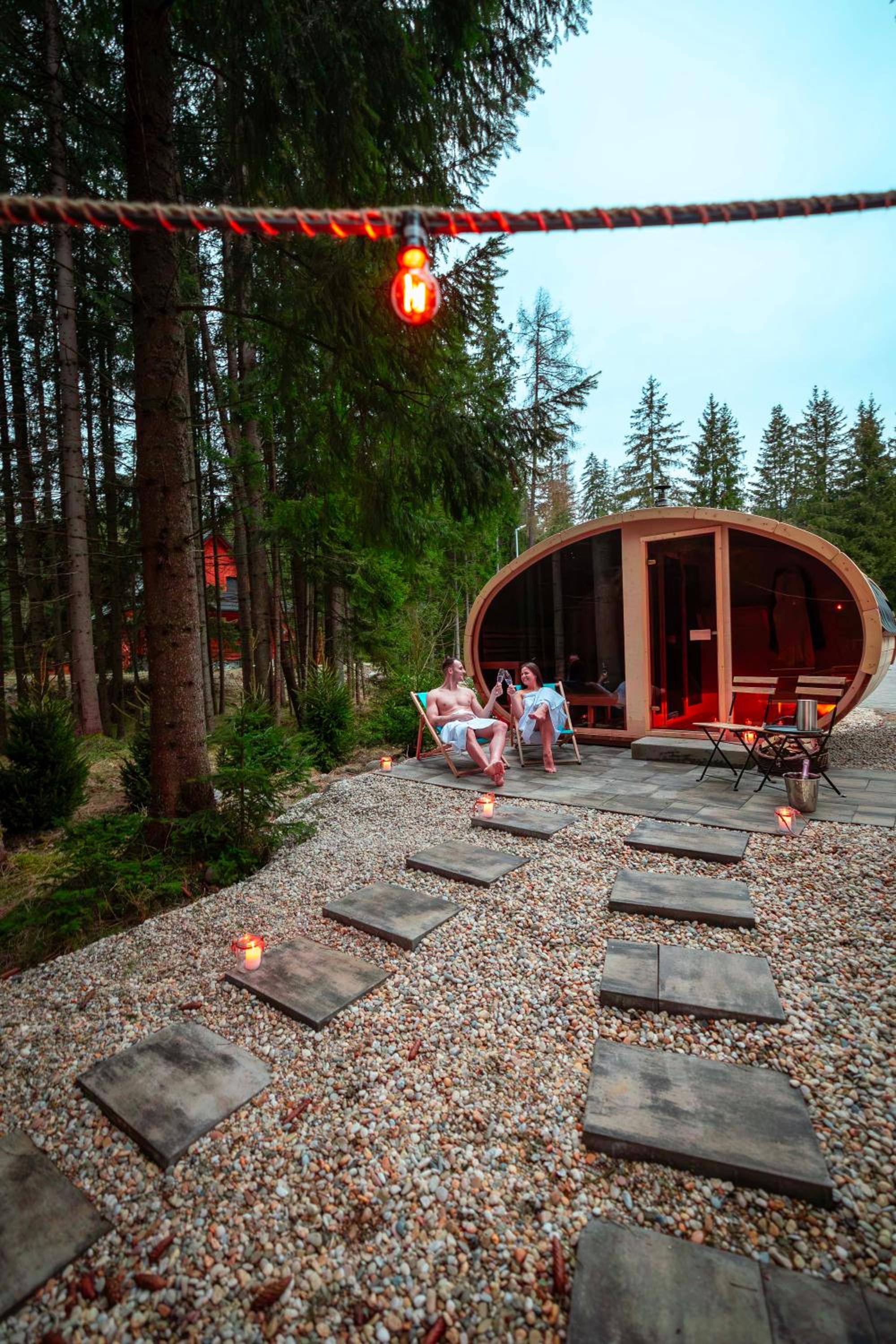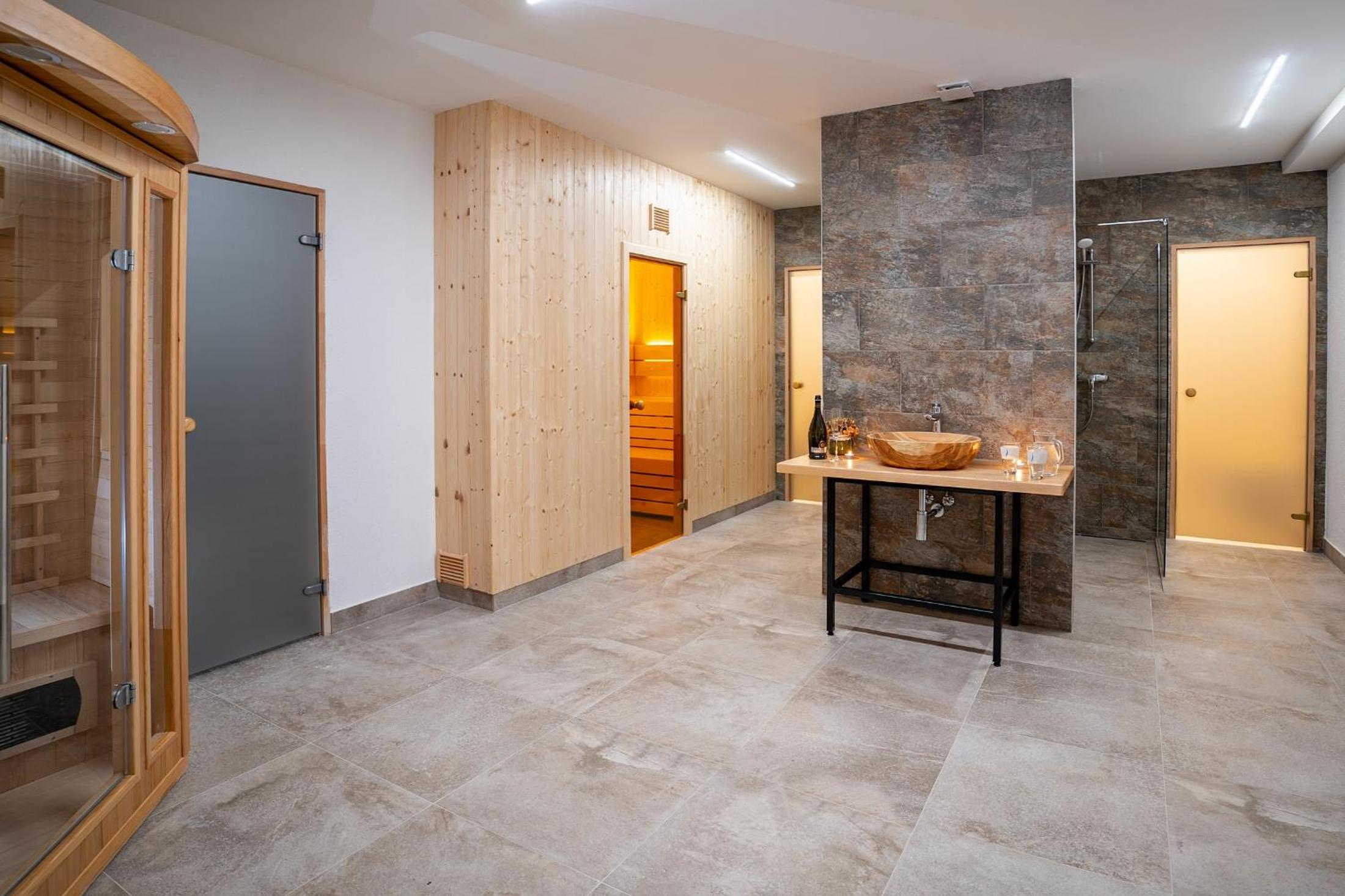 Nagyszerű volt, hogy volt lehetőség privát kültéri wellnessre, de a beltéri wellnesst megnyitnám, hogy egyidejűleg több vendég is használhassa. Méreténél fogva 10-15 ember egyidejű használata esetén sem lenne zsúfolt. Minden este a magas privát használati díjat nem szívesen fizeti ki az ember.