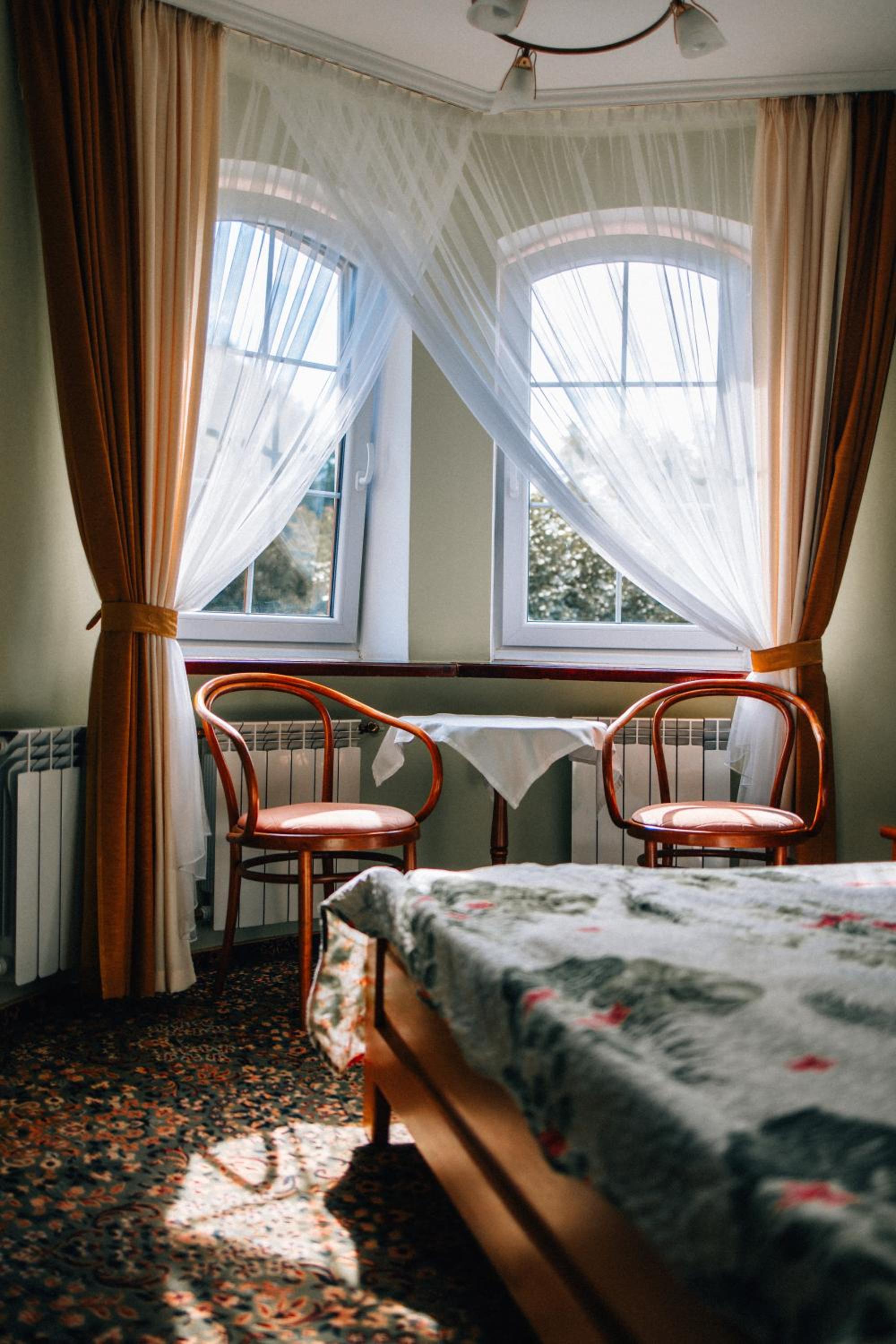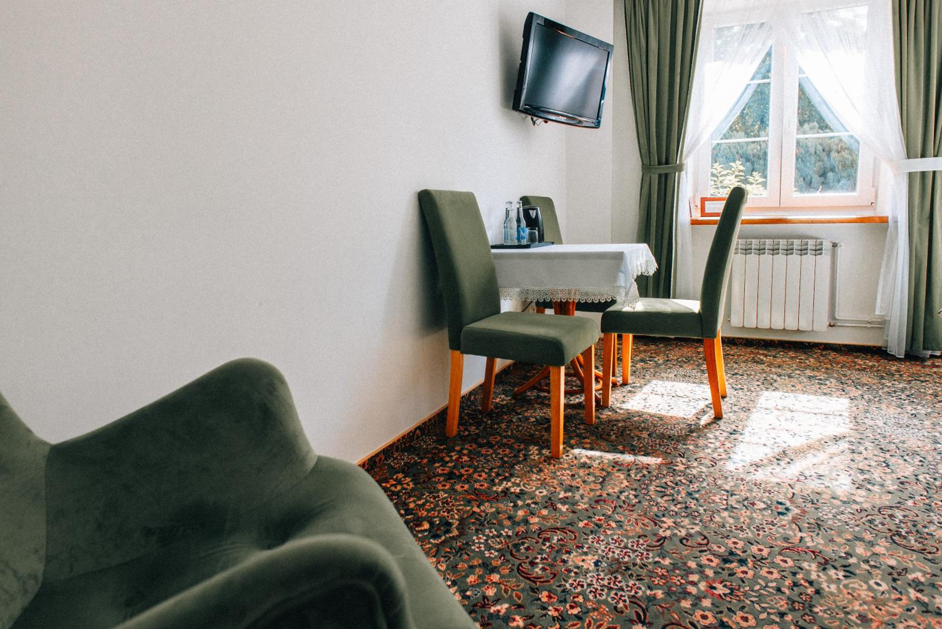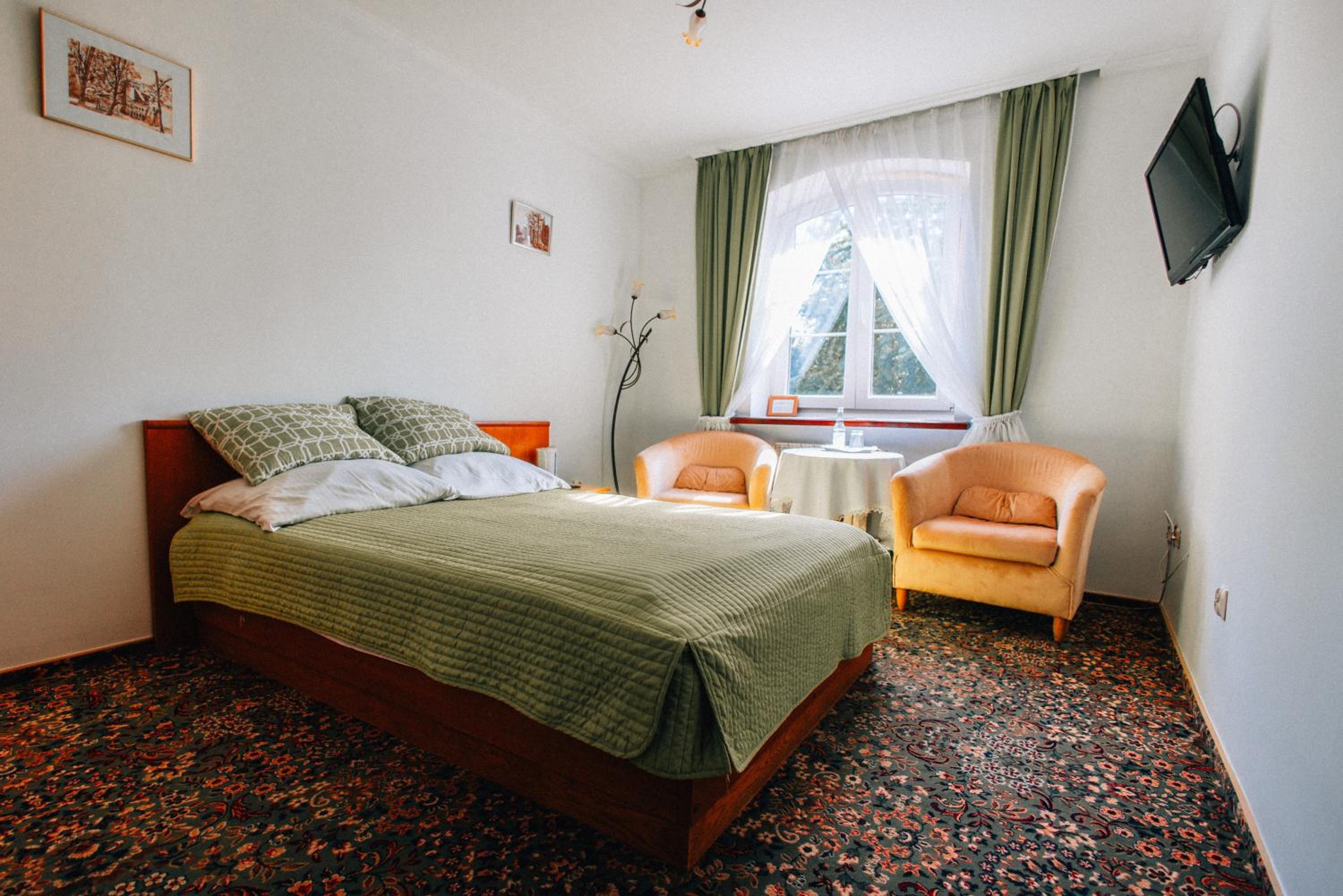 Очень легко найти даже в темное время суток. Много места на парковке у отеля, вообще нет проблем припарковать даже большую машину. Очень, практически идеально чисто в отеле и в номере. Легкое заселение за 2 минуты. Внимательный и доброжелательный персонал. Уютный номер с мебелью из натурального дерева, не новой, ( хотя от этого даже более приятной глазу), но в очень хорошем состоянии. Ковролин без пятен и запаха, что для меня было крайне важно. Тишина, хотя от дороги буквально 1 минута пешком. Мини холодильник и чайник есть. Вода и стакан тоже. В душе необходимые моющие. Полотенца теплые на полотенцесушителе- очень приятно. Все просто, но очень уютно и комфортно. Качество выше, чем ожидаешь за довольно демократичную цену. Для остановки после границы идеальный вариант.