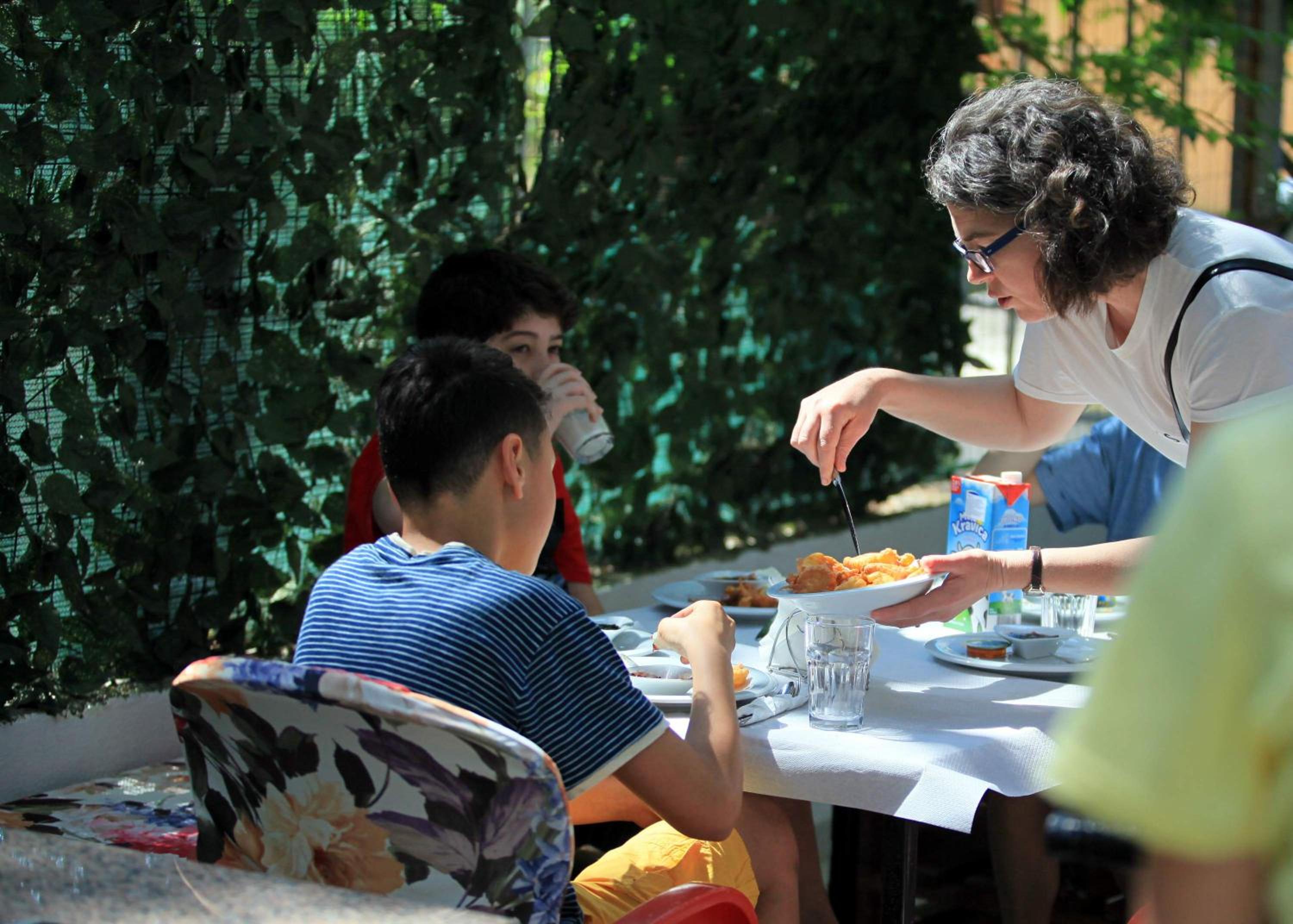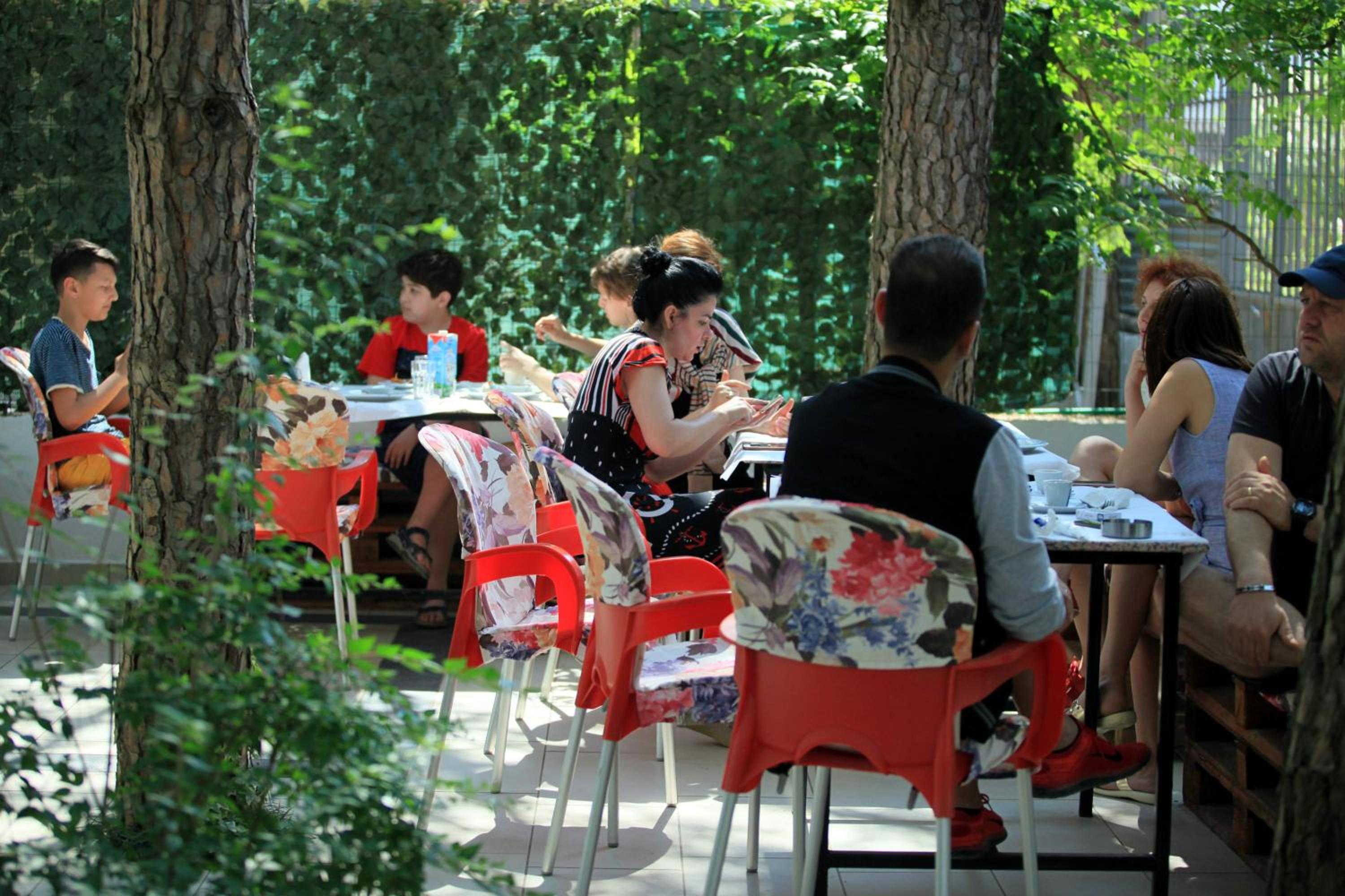 Personal atent la nevoile clienților. Mîncarea gustoasă, prooaspătă gătită specific locului și servită la umbra pinilor din curtea hotelului.