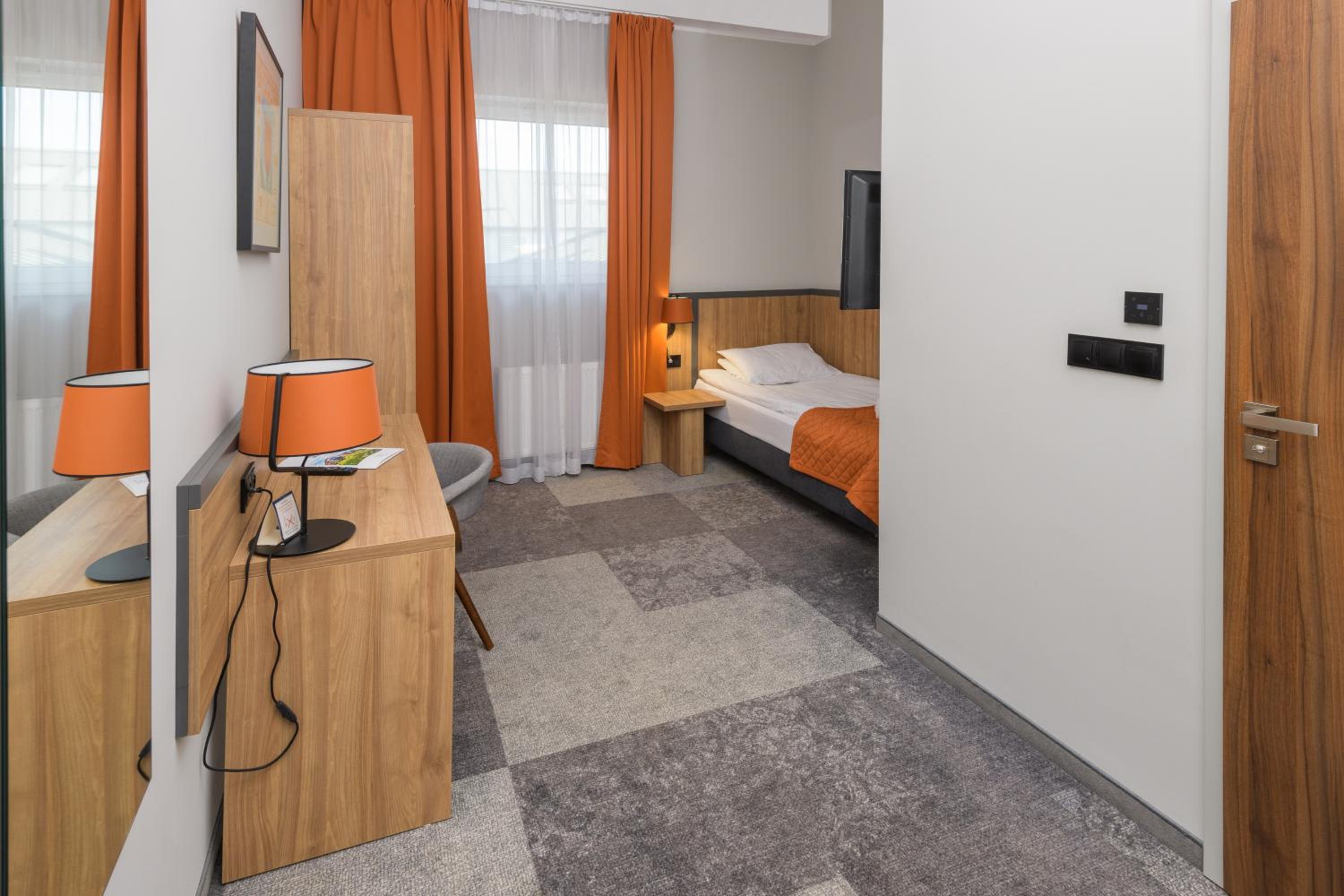 Each air-conditioned room at Hotel Węgierki offers a cozy retreat with a private bathroom, flat-screen TV, and complimentary toiletries.