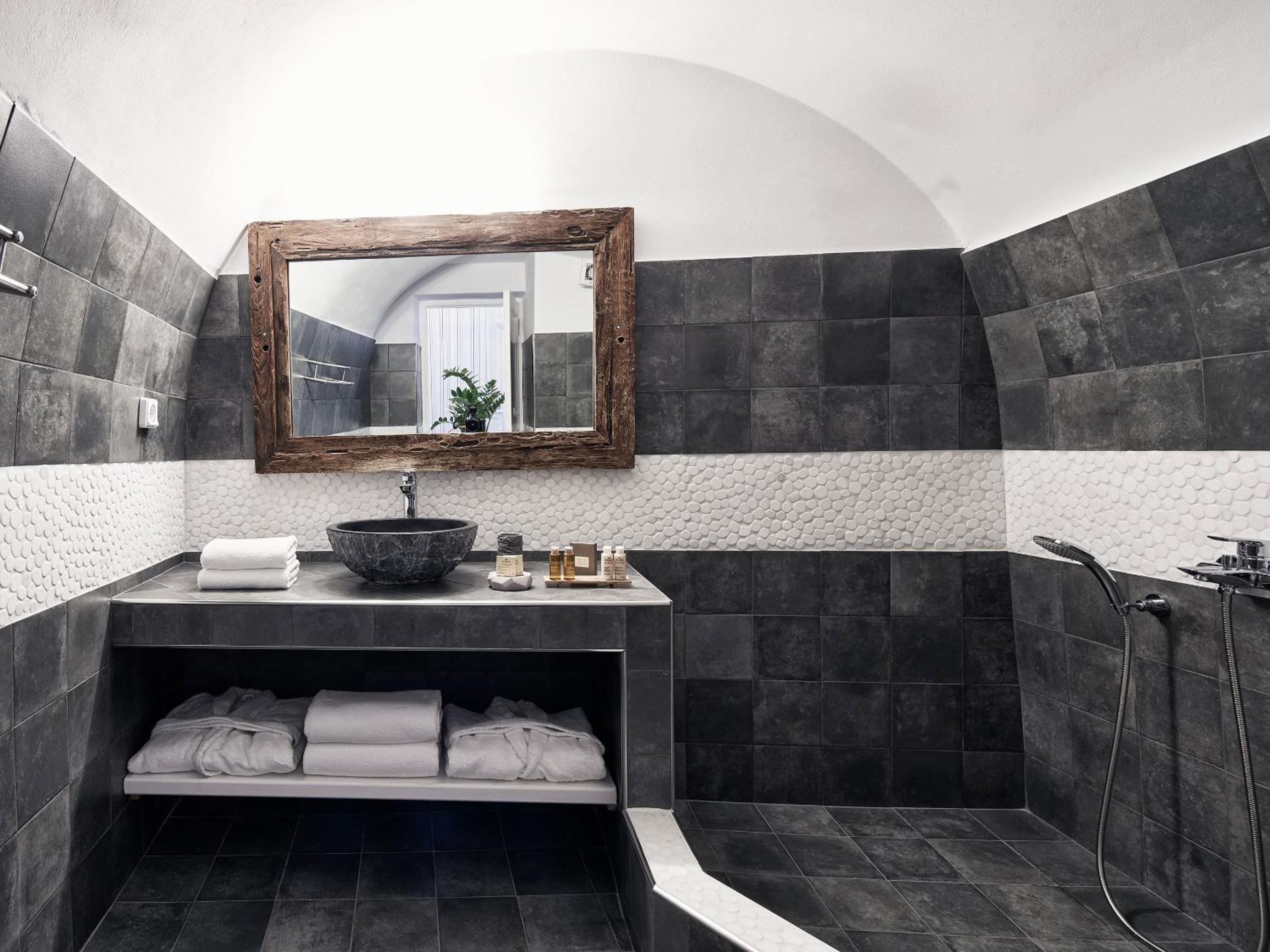 Relax and rejuvenate at the hotel's spa, housed in a cave and featuring a hot tub and a jet shower. Guests can pamper themselves with a variety of treatments and massages using sophisticated spa products, promising a truly indulgent experience.