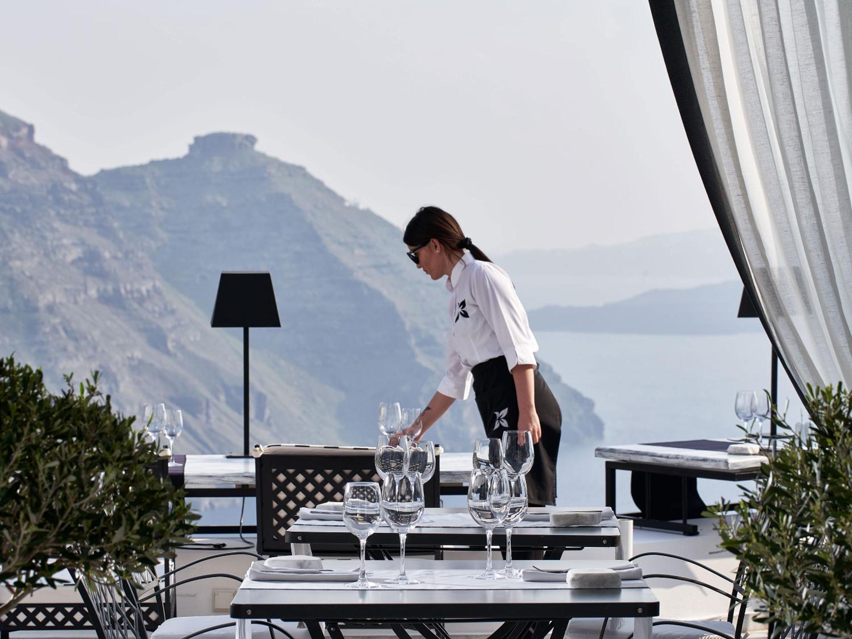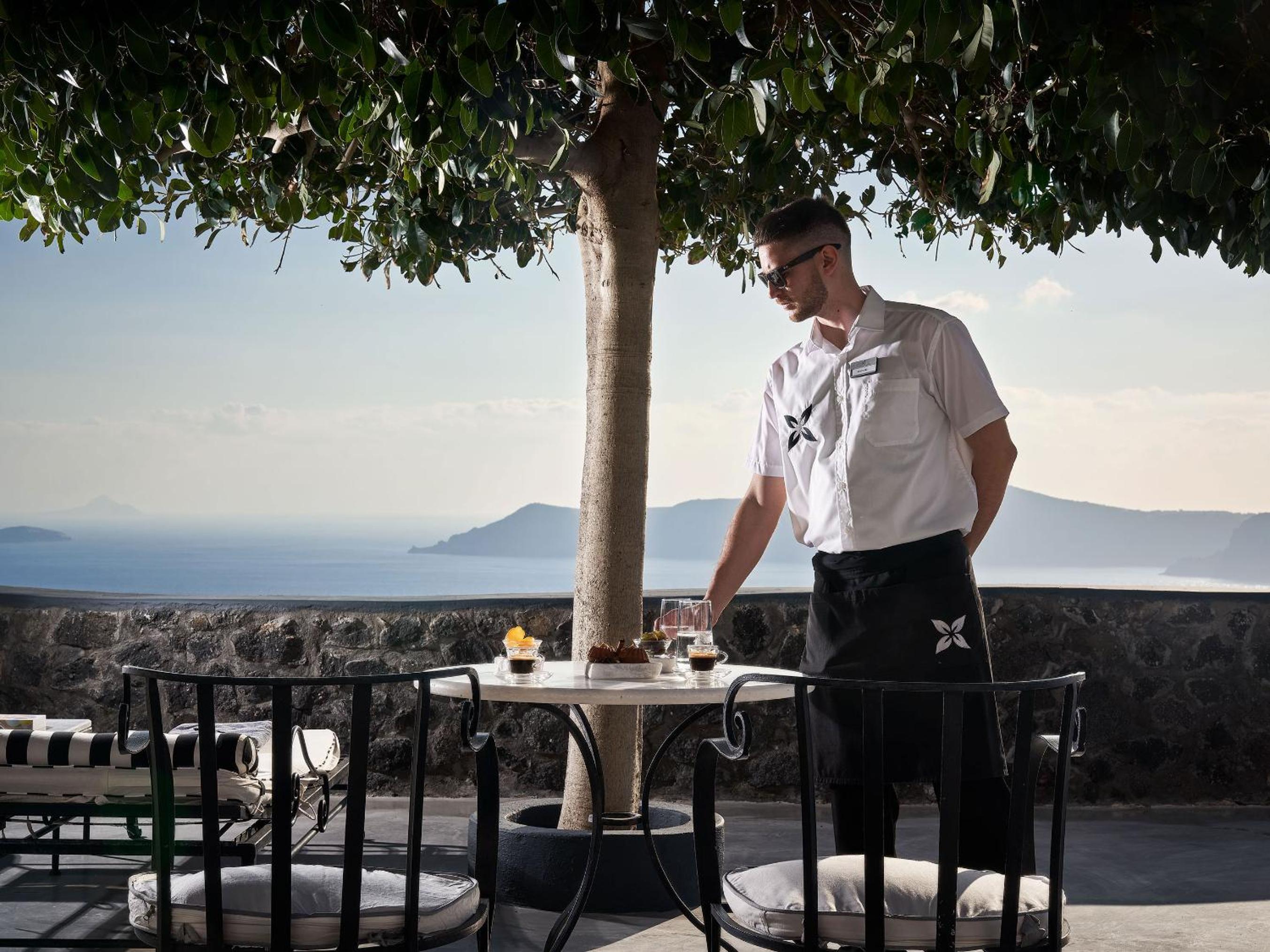 Loved the staff, location was perfect, midway between Fira and Oia so hiking was incredible and literally out our door to either destination, and breakfast was exceptional. It was a joy to eat outside on the edge of a cliff with a magnificent view. All staff were friendly and wonderful. The room was lovely including the outside furniture, reception was kind and helpful always, and the food was delicious and varied, even though we were off-season.