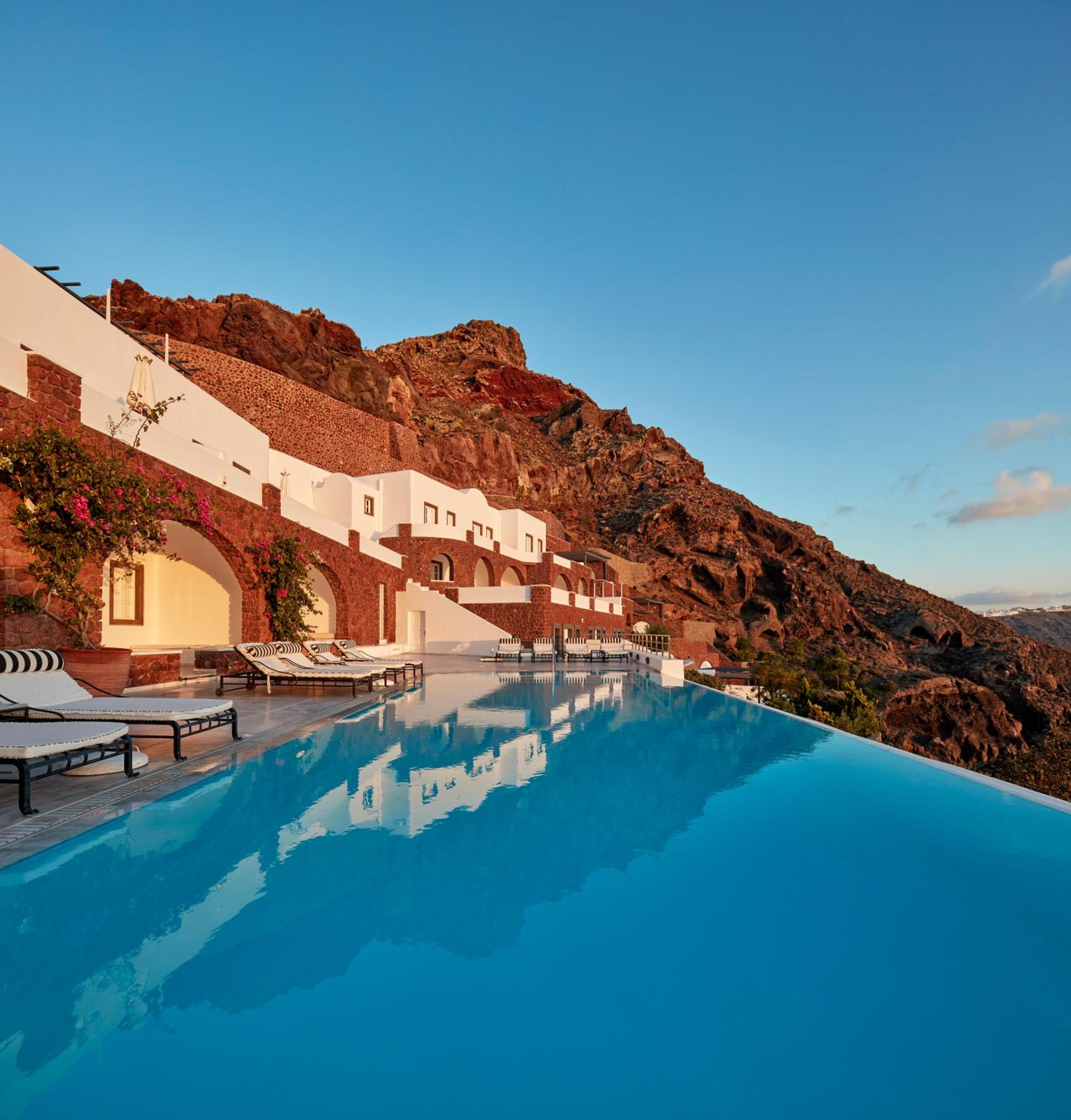 San Antonio, nestled in the outskirts of Imerovigli, offers a serene escape with breathtaking sea views. The hotel boasts an infinity pool set amidst lush exotic gardens, providing a perfect spot to unwind and soak in the beauty of the surroundings.