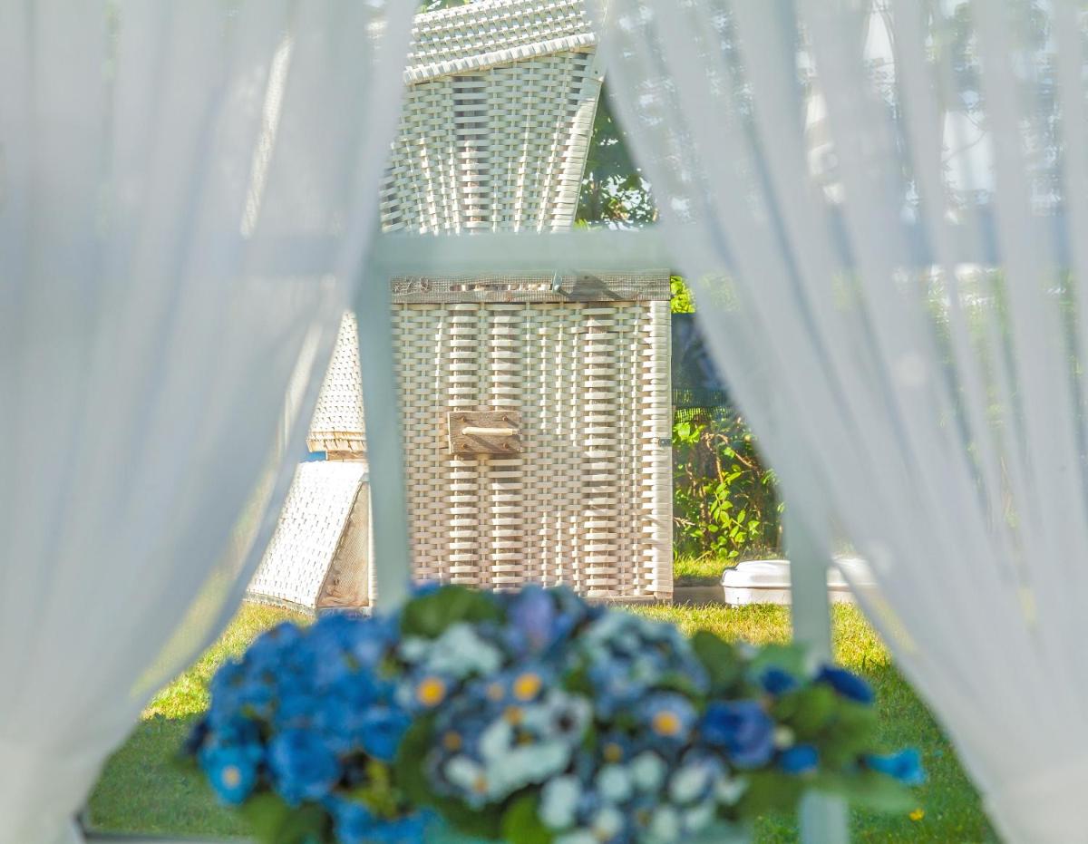 Tranquil Garden Oasis: Unwind in the quiet garden after a day at the beach.
