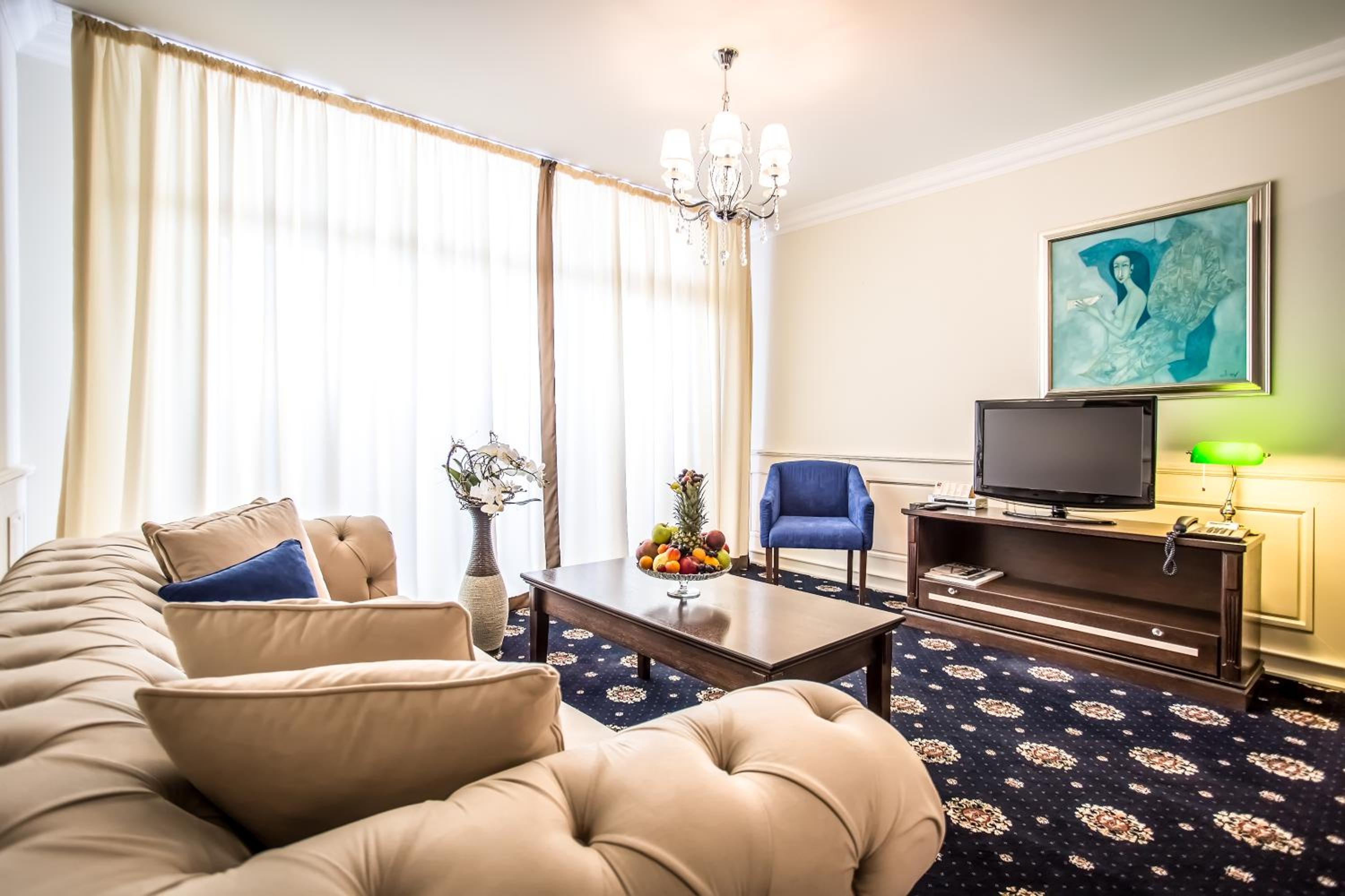 Experience the blend of traditional Bulgarian architecture with modern comforts at Palace Marina Dinevi. Indulge in top-notch services, enjoy the Admiral Restaurant, and benefit from a complimentary airport transfer for longer stays.