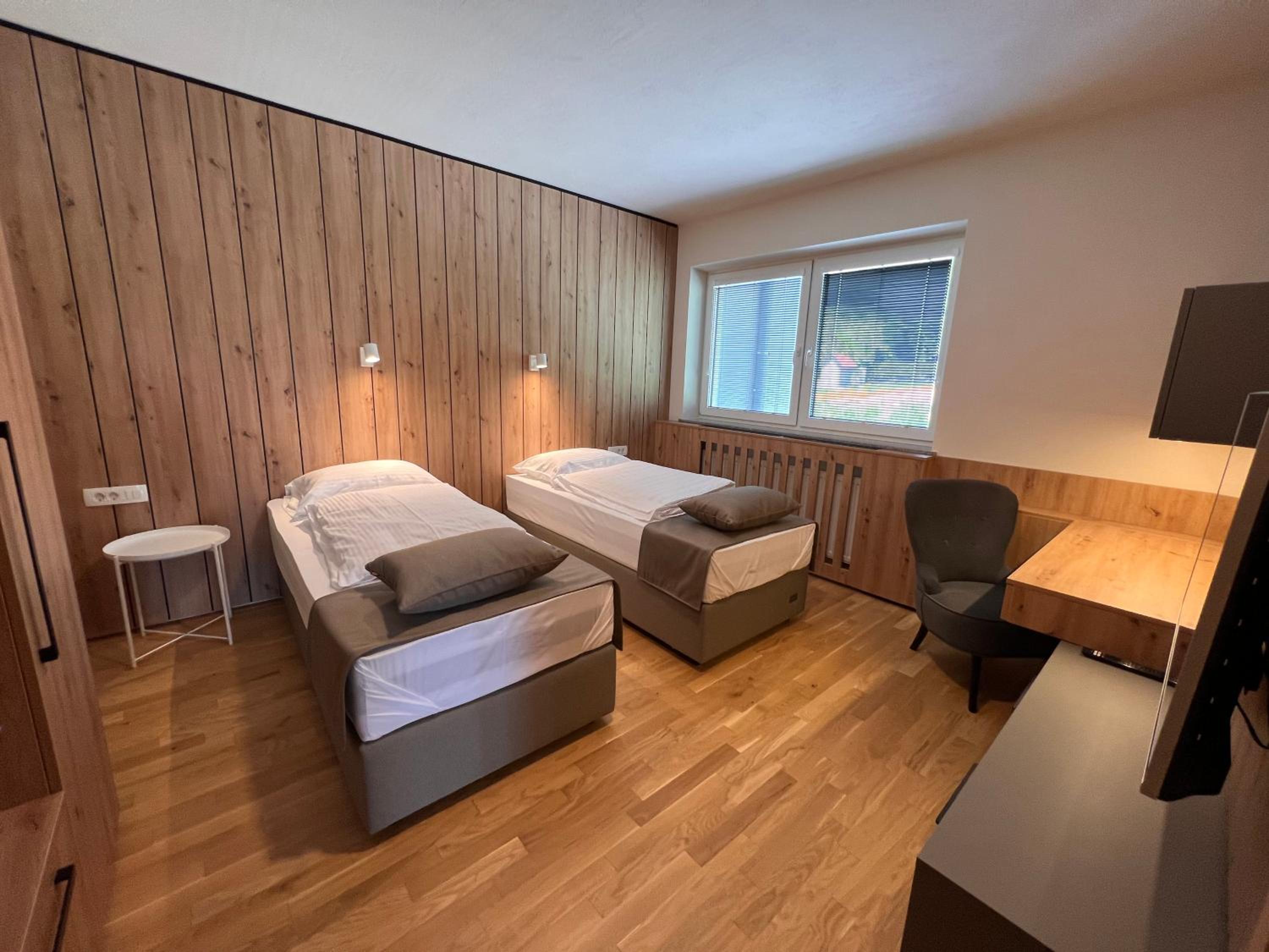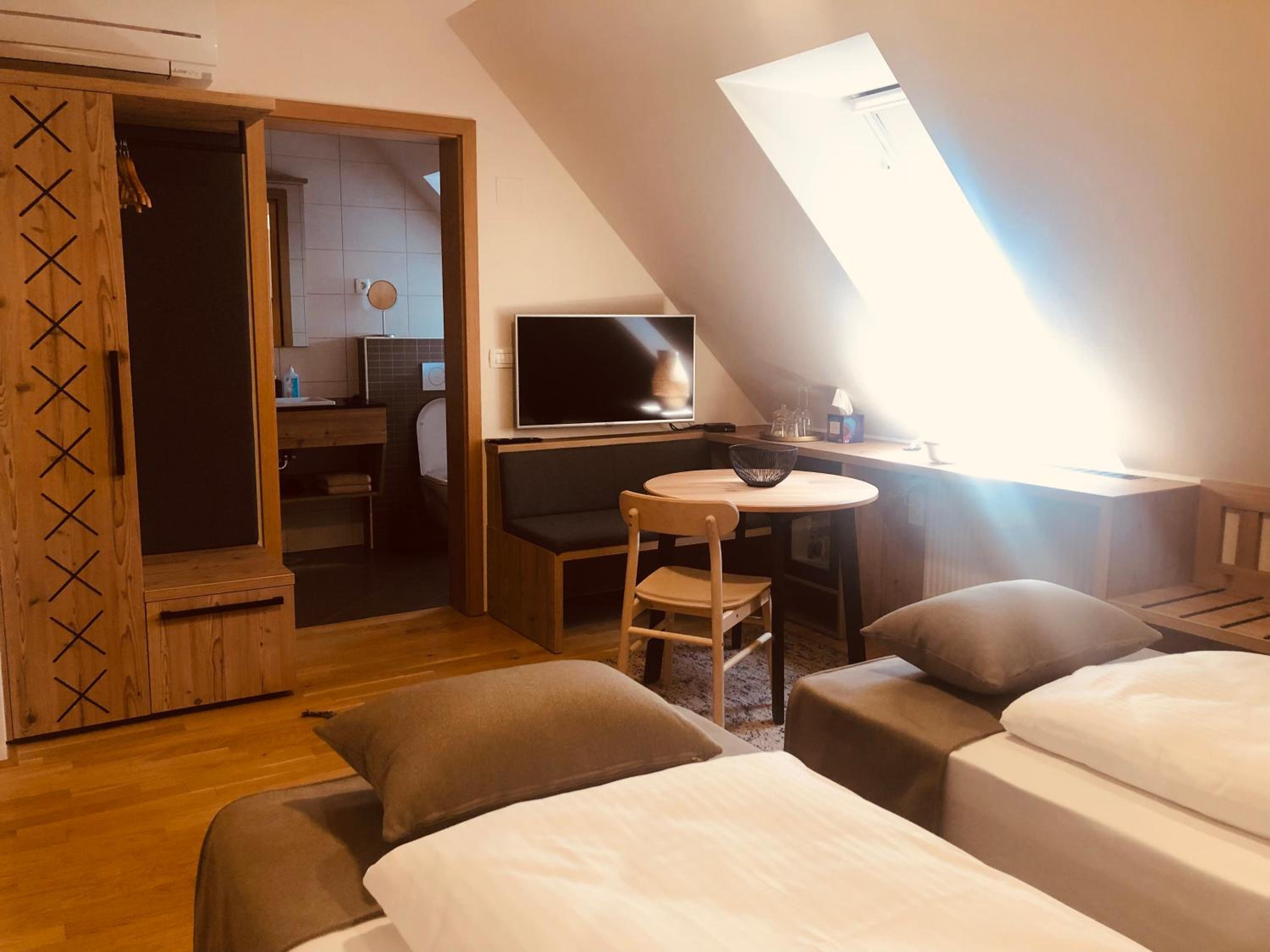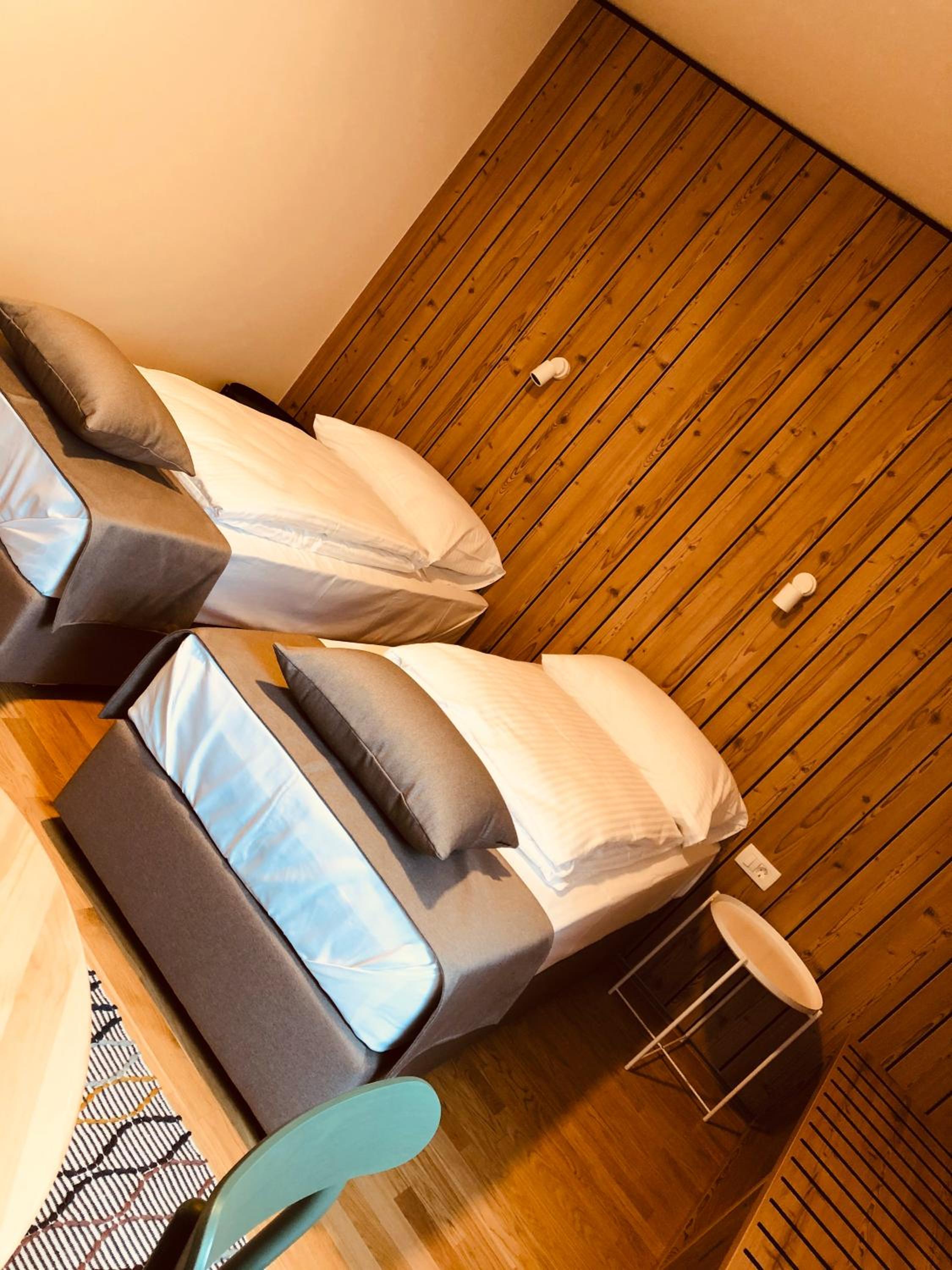 Appena entrati in stanza si sentiva un cattivo odore, andiamo a verificare il letto matrimoniale grande(come da descrizione di booking) e ci accorgiamo che in realtà erano due letti singoli con lenzuola singole tenuti insieme non so in quale maniera o modo. Lo facciamo prima presente al personale di sala il quale ci dice di aspettare il proprietario. Una volta arrivato il proprietario(dopo dieci minuti di attesa, considerate che era mezzanotte e si voleva andare a dormire avendo già pagato tutto in anticipo) ho fatto vedere le foto che in realtà non era un letto matrimonale grande ma due letti singoli legati insieme. Il proprietario ha iniziato ad innervosirsi dicendo che io gli mancavo di rispetto perchè dovevo dire quello che diceva lui ovvero che era un letto matrimoniale grande. Alle mie rimostranze il proprietario ha iniziato ad alterarsi e ad urlare ripetendo continuamente la frase "I kick you out"(vi butto fuori) al che mi sono ritrovato letteralmente fuori la struttura ed ho dovuto chiamare la Polizia slovena per tutelare me stesso, mia moglie e mio figlio di 9 anni. Nel momento dell'arrivo della Polizia il titolare si è calmato e ha detto che mi avrebbe risarcito del TOTALE costo già pagato a booking. Rimborso che sto ancora aspettando.(Parlando con uno dei poliziotti mi faceva presente che già in passato ci sono stati problemi con questo albergo)