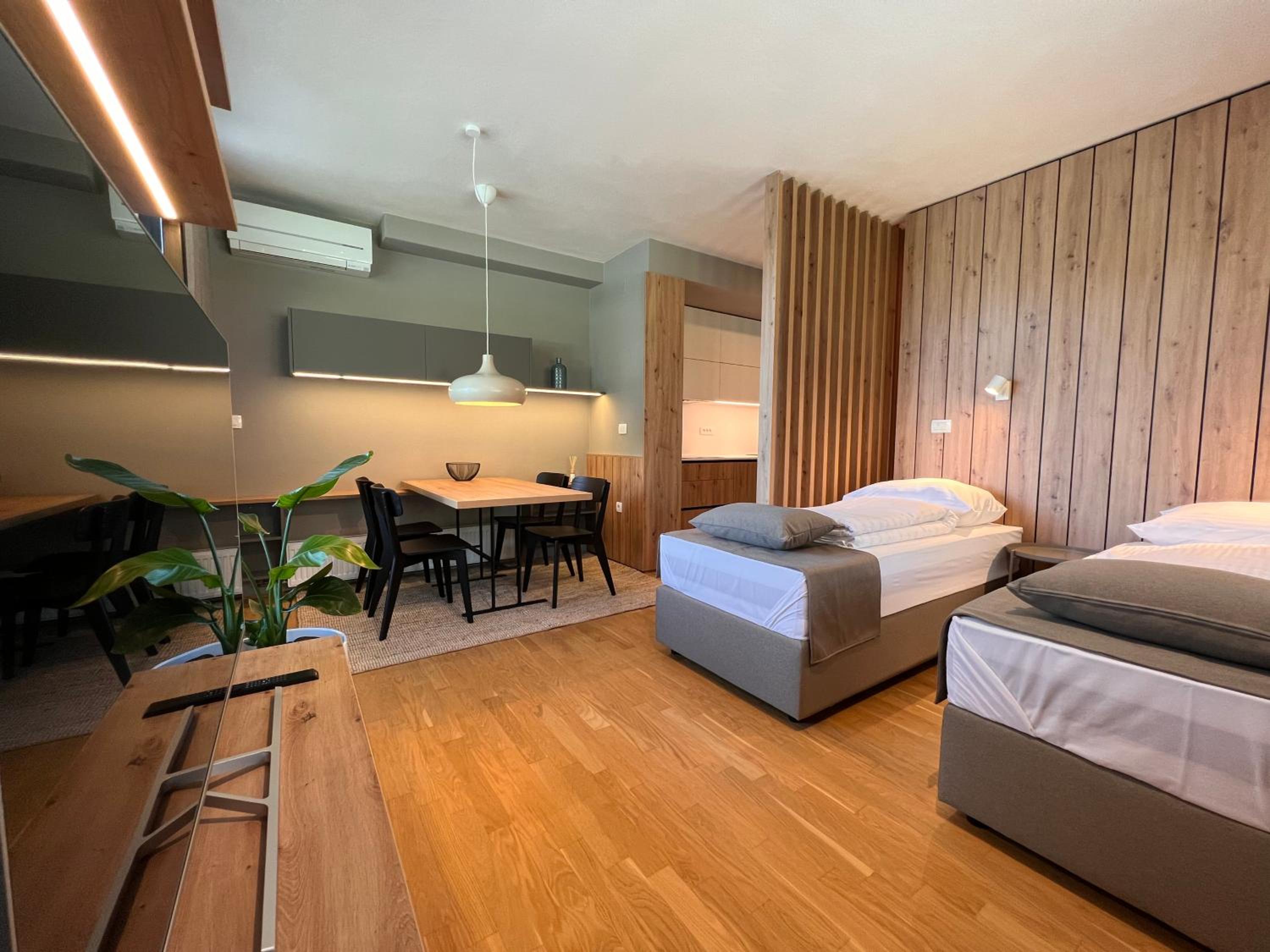 Abbiamo soggiornato in questa struttura in 8 persone, prendendo 2 appartamenti (per 4 persone), e l’esperienza è stata perfetta sotto ogni punto di vista. Gli appartamenti erano pulitissimi, curati nei dettagli e molto confortevoli.