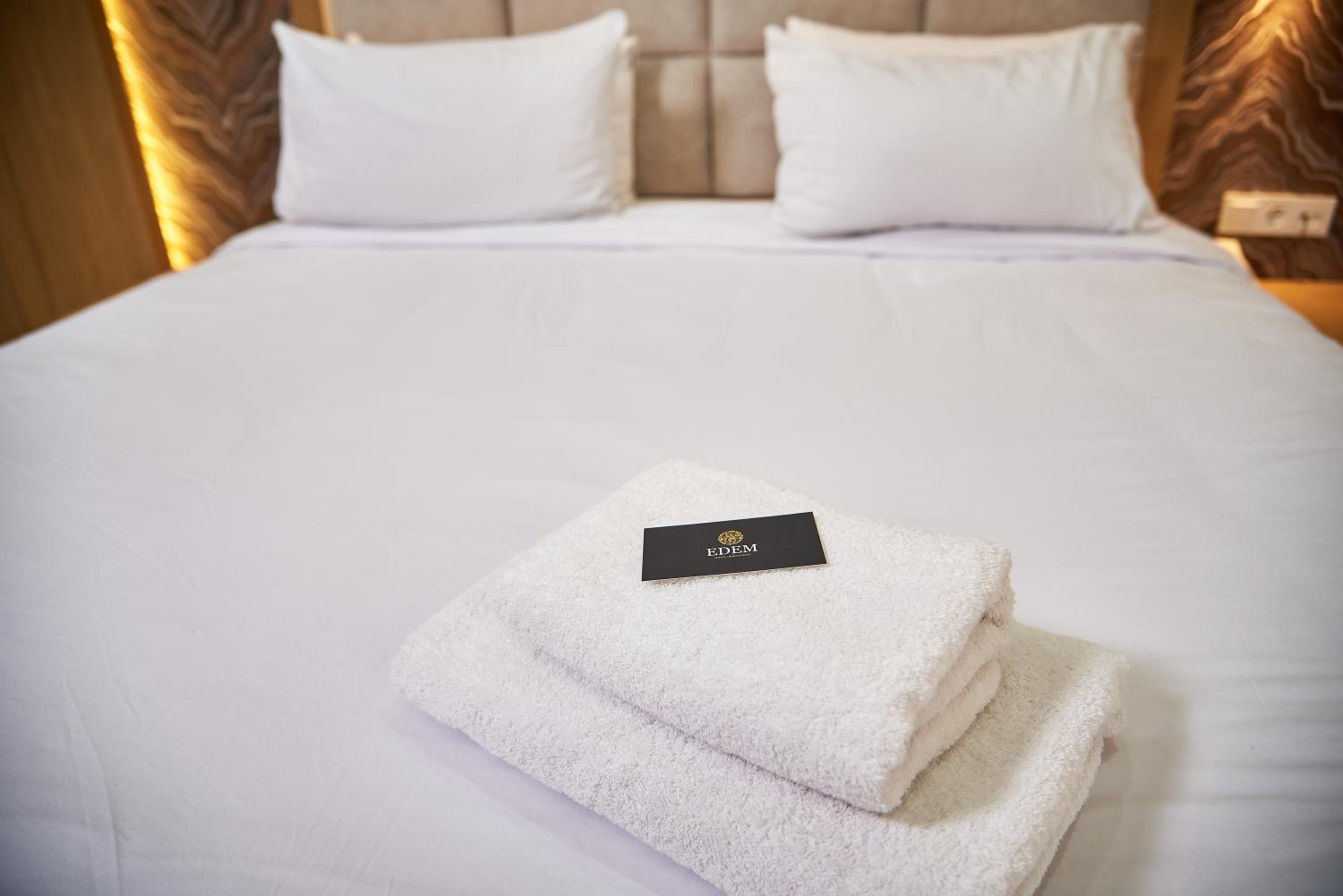 Нам все понравилось в гостинице Эдем. Сюда приезжали во второй раз. Нравиться вежливый персонал, чистота, комфорт, месторасположение, тишина, завтрак отличный. Номер дали с видом на стоянку, мы могли присматривать за машиной своей. В номере есть все и ванные принадлежности, и халаты, и кондиционер, и чайный набор, вода. Молодцы, так держать! Всем советую эту гостиницу. Бронирую через приложение Букинг. Здесь всегда скидки. У нас был номер Д-Люкс.