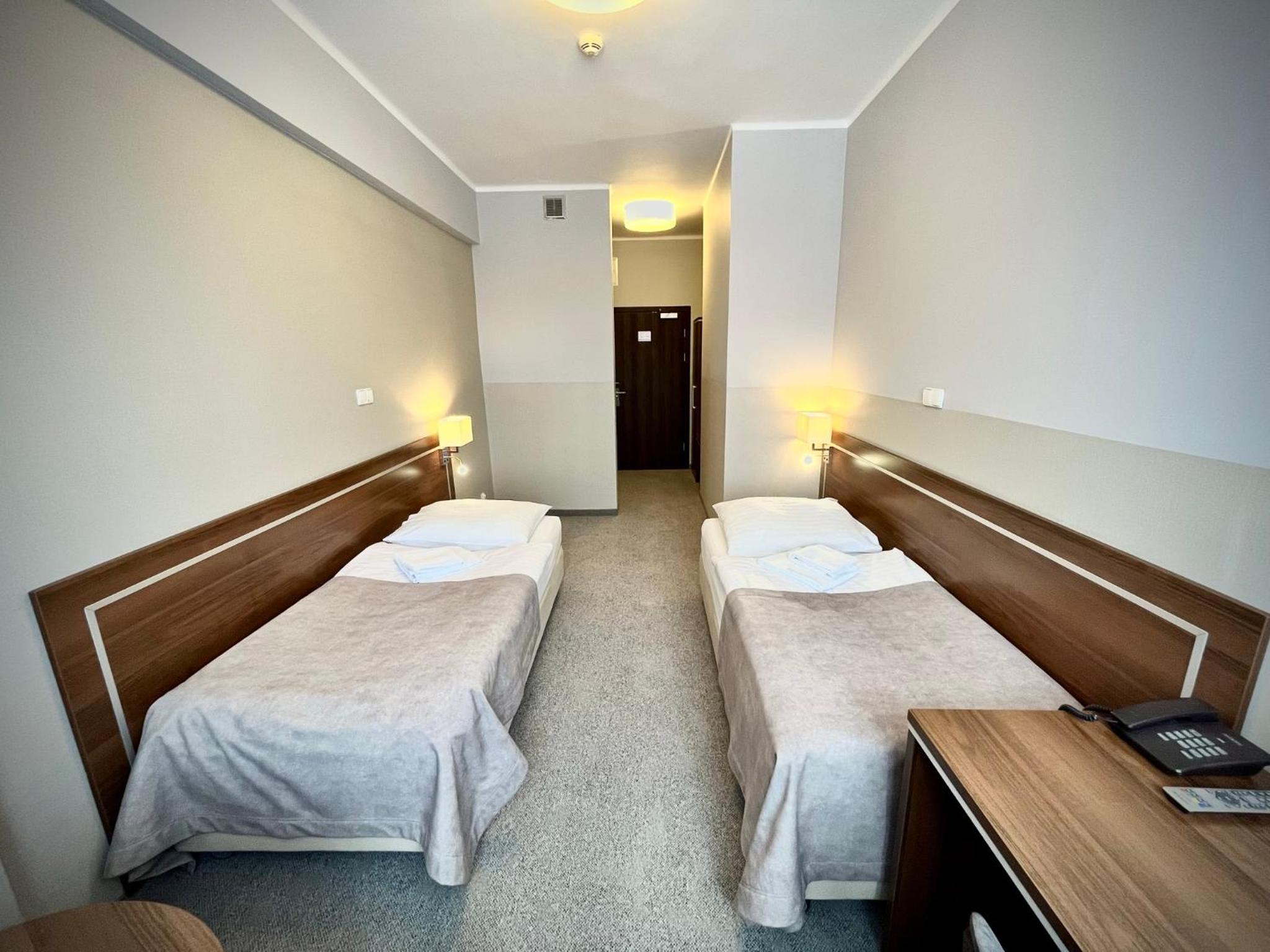 Fatalne materace na łóżkach. W nocy wtaczaliśmy się w wyleżane zagłębienie, masakra. Byłem już drugi raz i to samo. Ponadto nieszczelne okno. Pokój był chłodny , musieliśmy zabezpieczyć parapet narzutą z łóżka i podnieść kotary zasłon żeby odsłonić kaloryfer, wtedy po kilkunastu godzinach temperatura wzrosła. No ale coś takiego w hotelu??