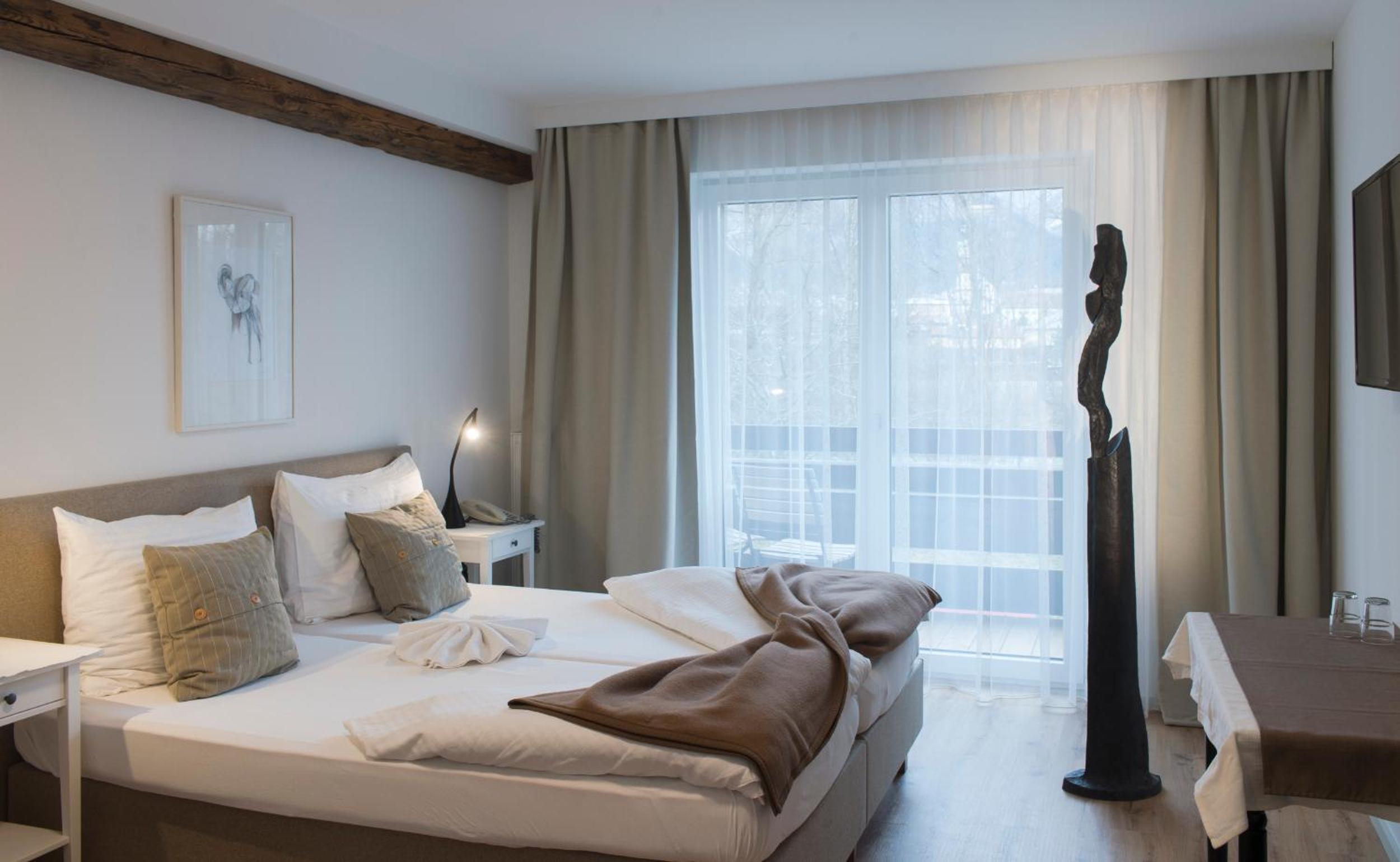 Quaint Accommodations: Enjoy quiet rooms overlooking the Inn river, each equipped with a private bathroom and satellite TV accessible by elevator.