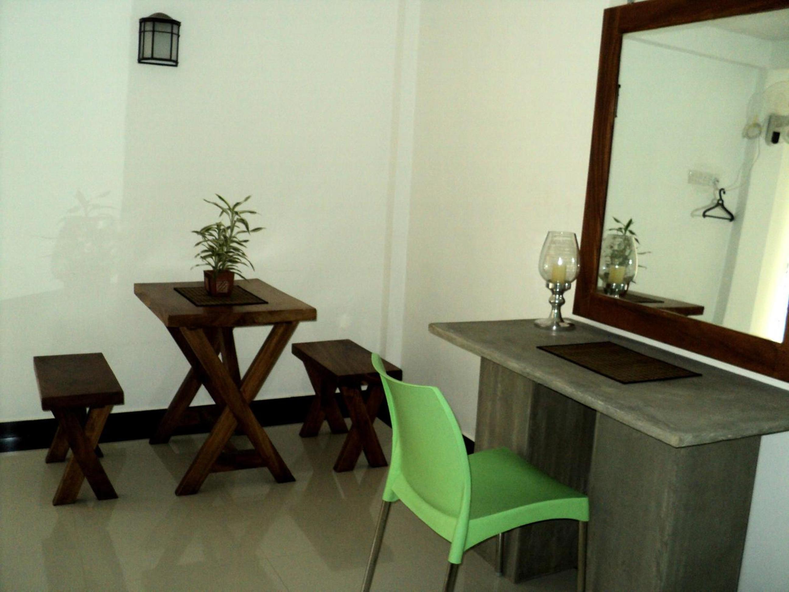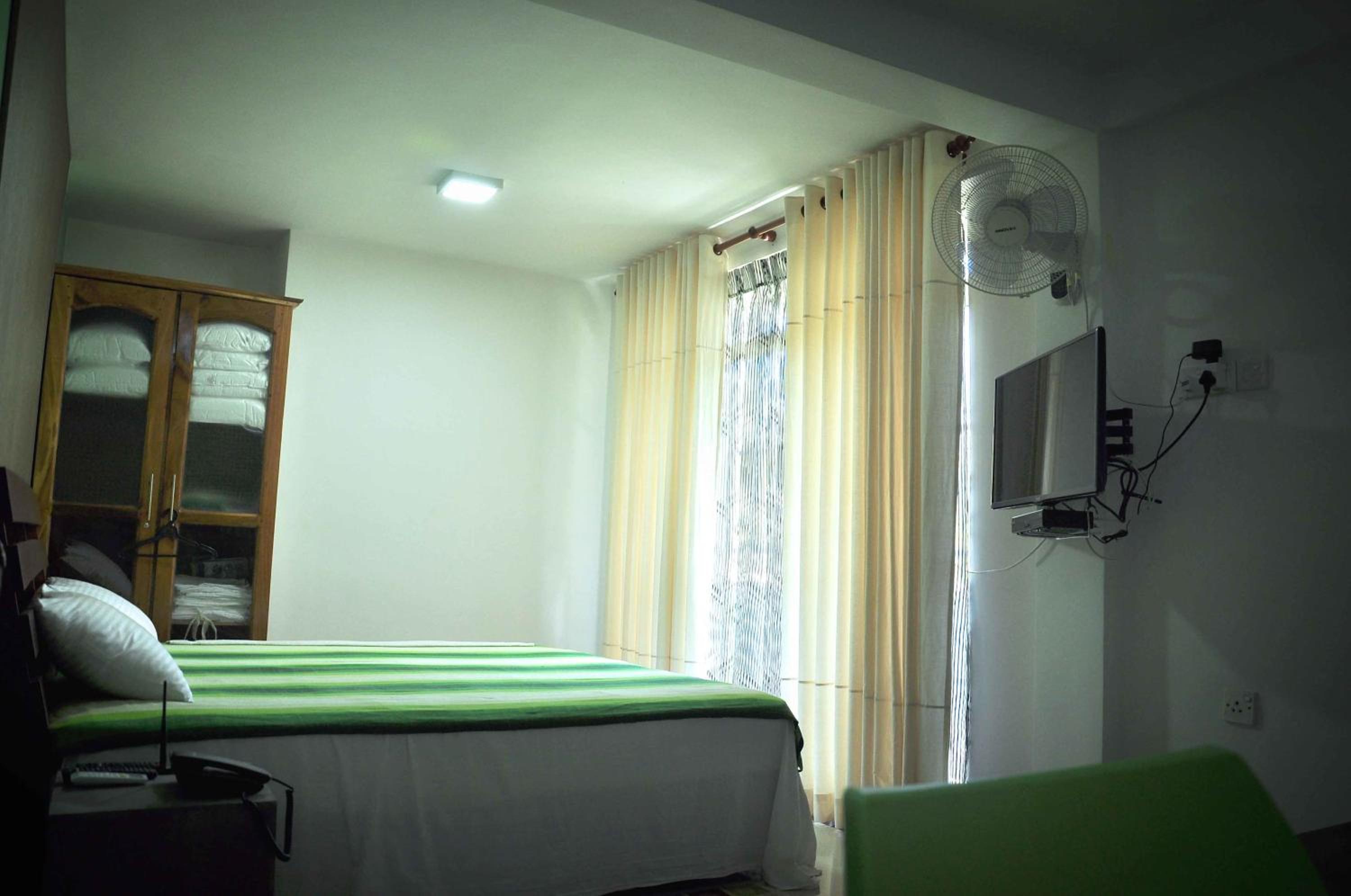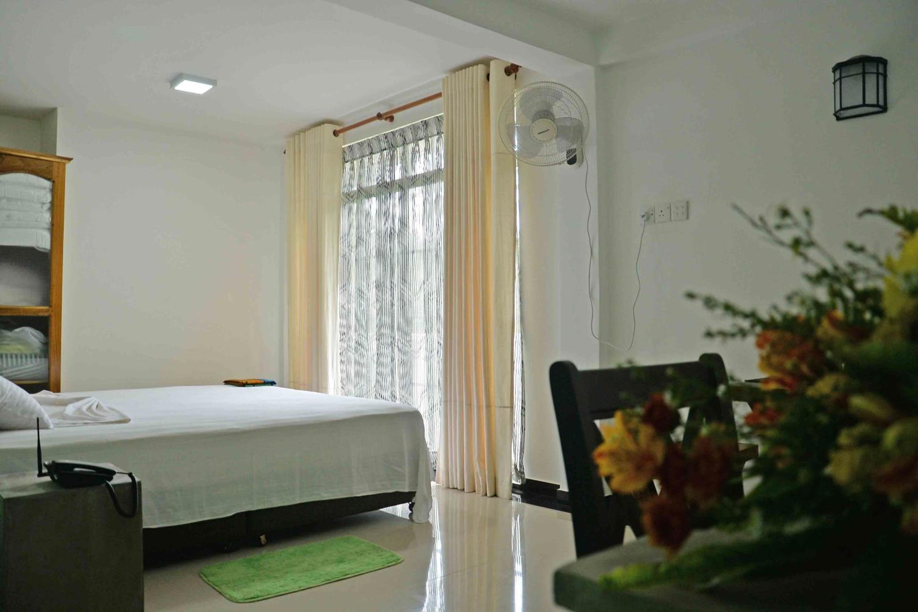 Of the 9 places I have stayed in Sri Lanka, this had the best facilities. Smart bedding and towels, working TV, bar fridge and wifi; good hot water supply. Pleasant outlook from balcony, including toque macaque monkeys playing on wires not far away. Close to main street but only train noise noticed. Owner keen to assist. Comfortable lounge chairs and small dining table. Very clean modern bathroom. Only a 350 rupee ride to the fabulous Myula Restaurant/Bar with its sensational views and great food. Exemplary.
