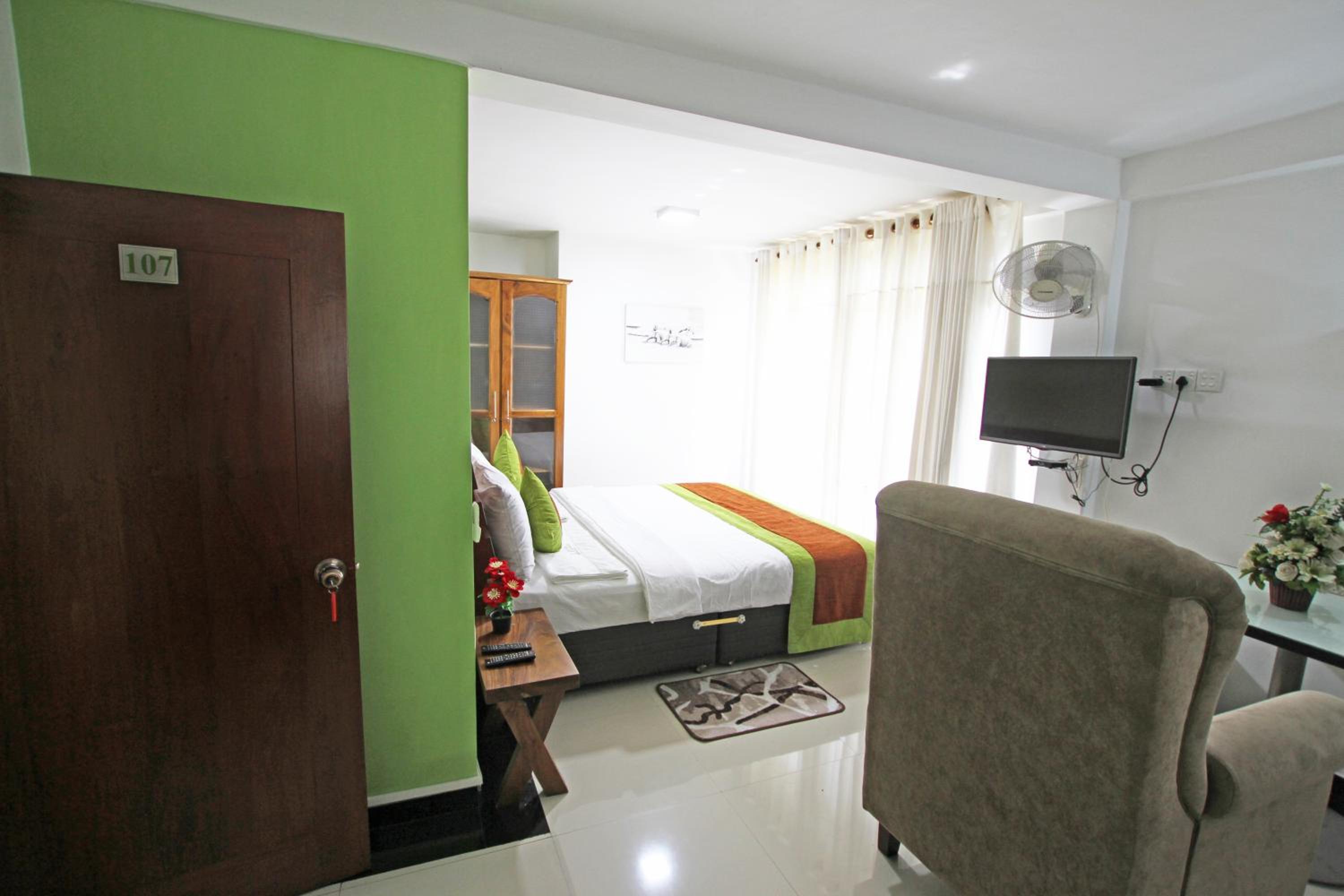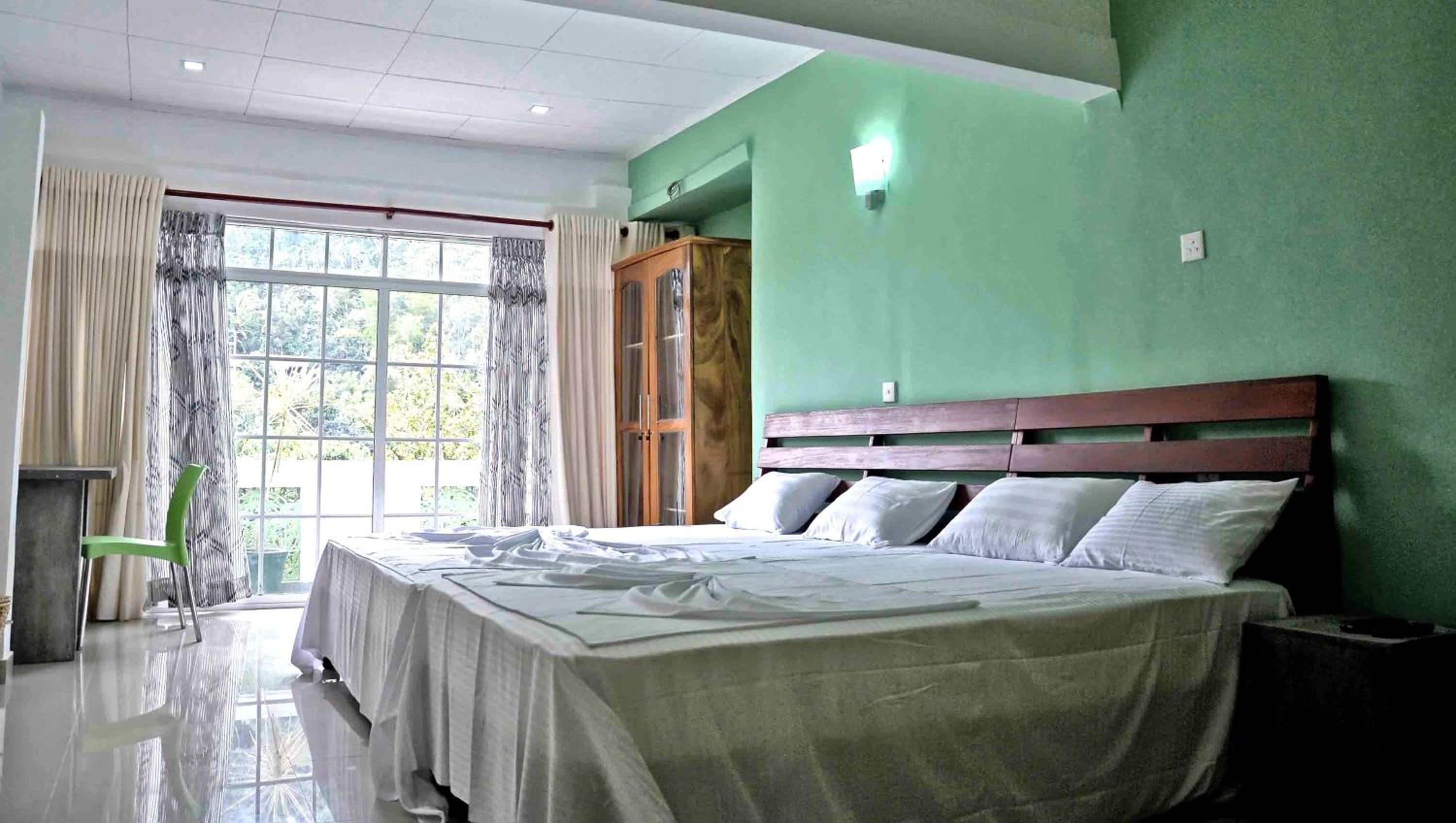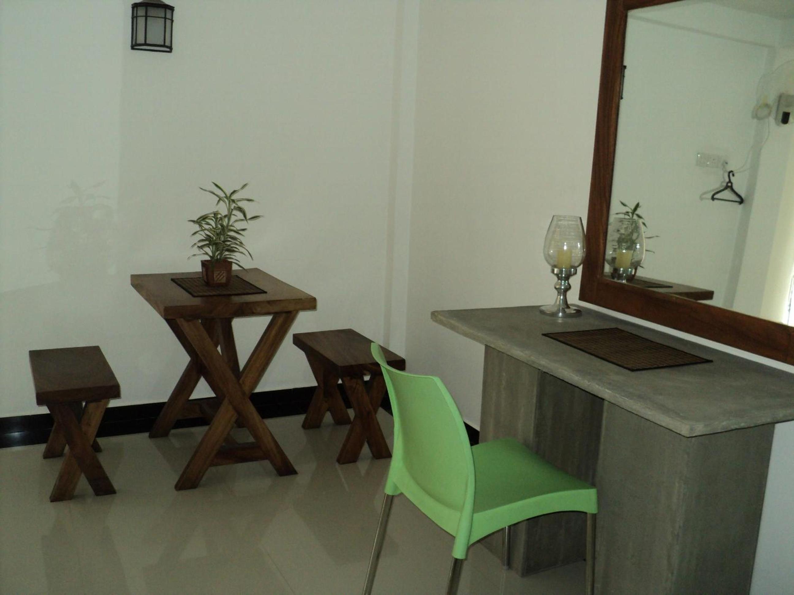 Of the 9 places I have stayed in Sri Lanka, this had the best facilities. Smart bedding and towels, working TV, bar fridge and wifi; good hot water supply. Pleasant outlook from balcony, including toque macaque monkeys playing on wires not far away. Close to main street but only train noise noticed. Owner keen to assist. Comfortable lounge chairs and small dining table. Very clean modern bathroom. Only a 350 rupee ride to the fabulous Myula Restaurant/Bar with its sensational views and great food. Exemplary.