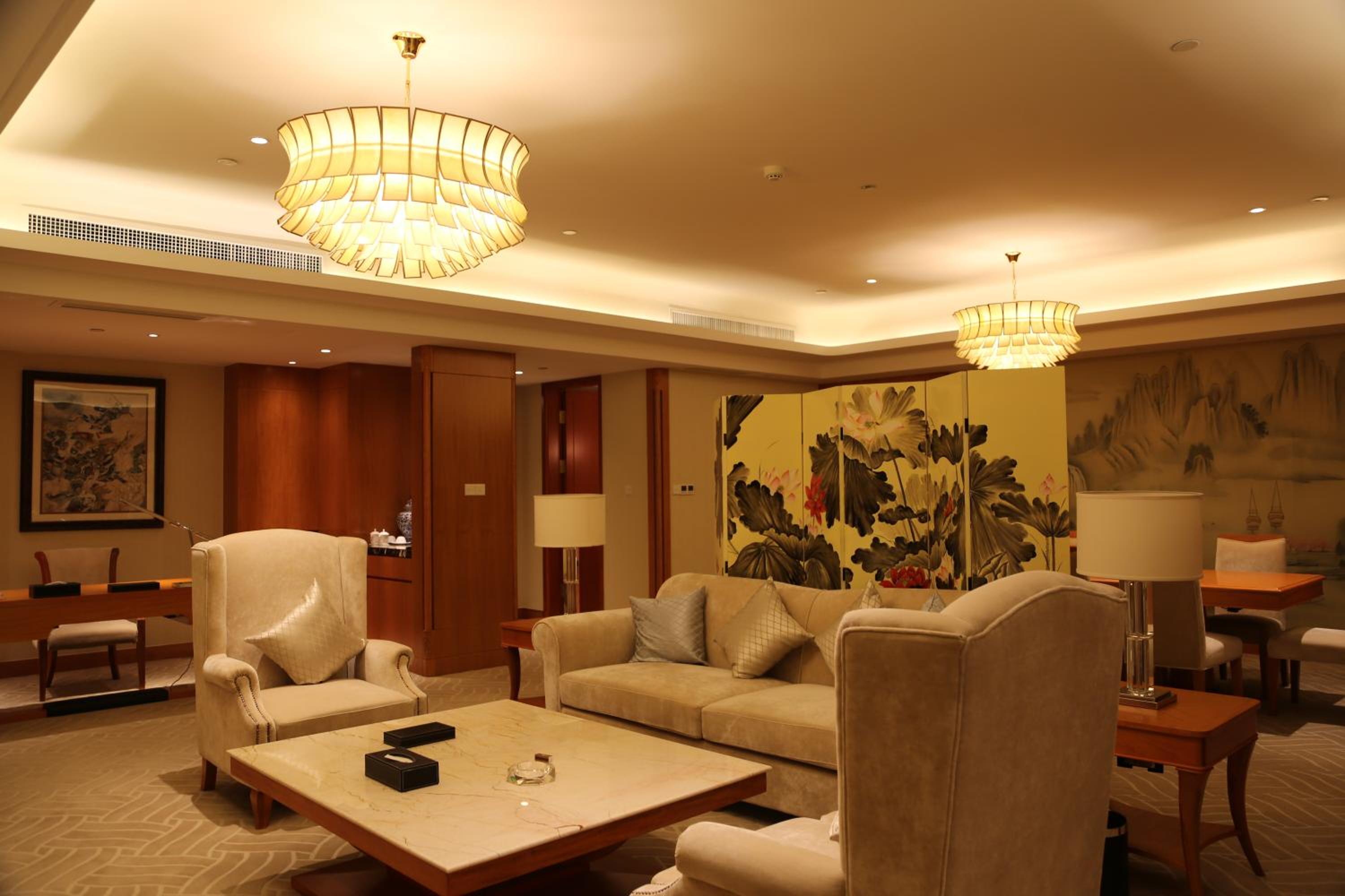 Jinling Huaguoshan International Hotel, nestled in downtown Lianyuangang, offers a serene garden and complimentary Wi-Fi throughout. The rooms are elegantly furnished with modern amenities including a flat-screen TV, air conditioning, and a minibar.