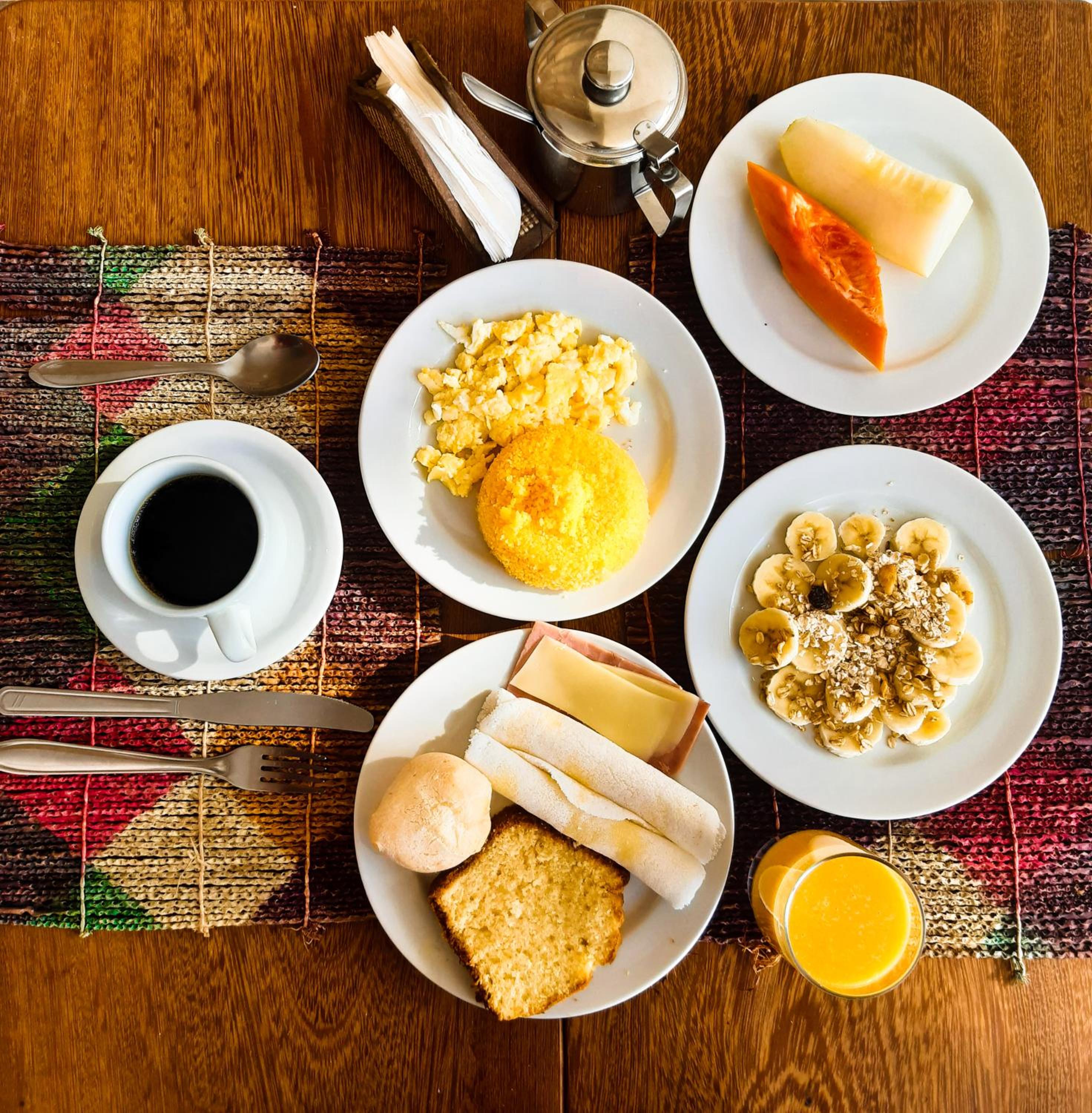 Café da manha bem servido.