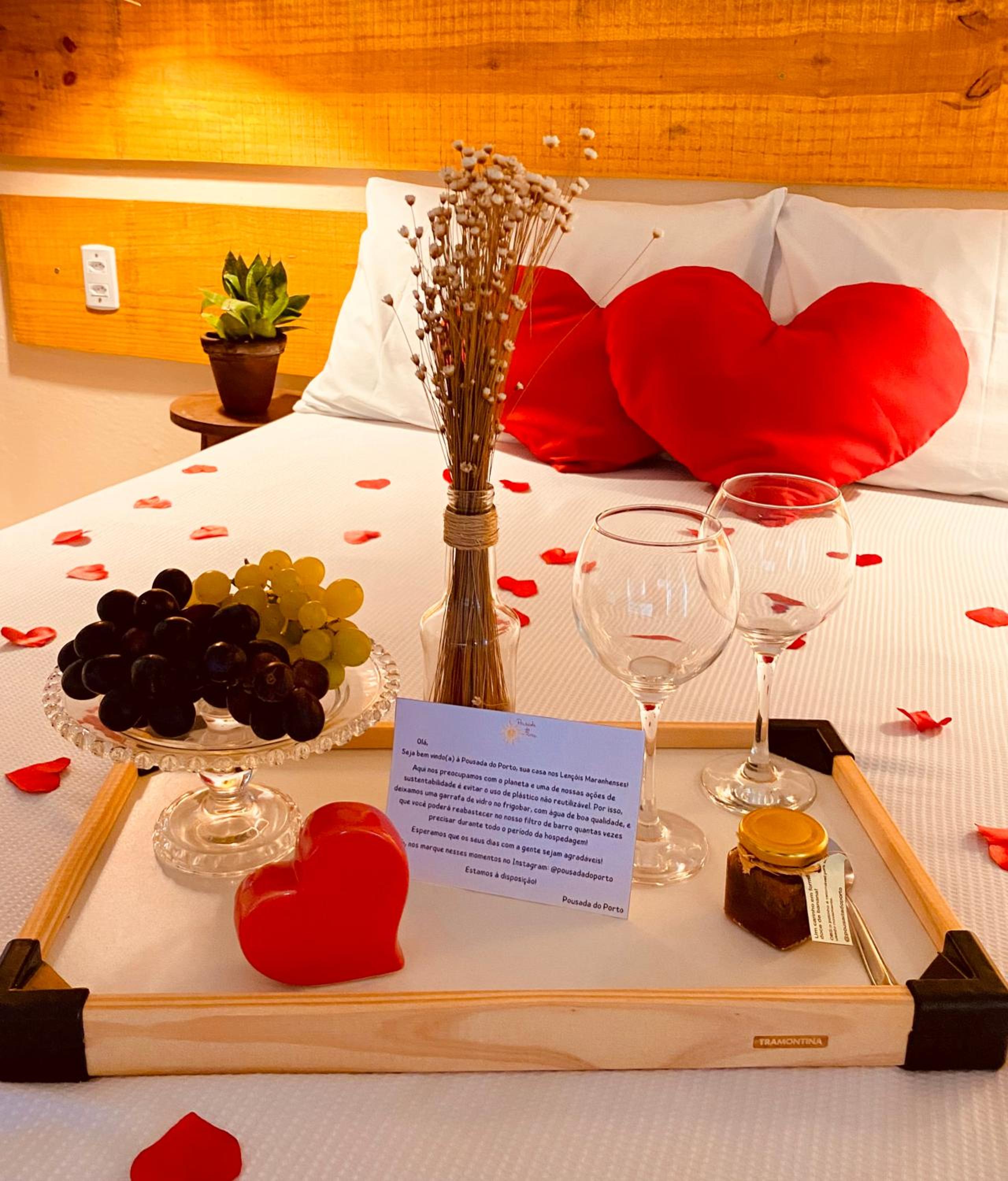 Da estrutura da pousada, da equipe e das comodidades, como água à vontade e café da tarde, além da vista do deck do dia. O quarto é mais simples, mas satisfatório.