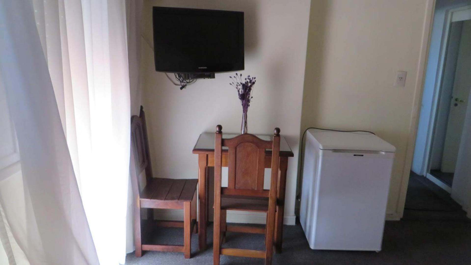 I stayed here for a total of nine nights in mid-late April, 2004 and I was very pleased with my choice. This is a simple, small family-run hotel in Barrio Norte, bordering both Recoleta and Palermo, an excellent choice for those who are not the hostel-type but looking for an inexpensive place to stay in a very nice and safe neighborhood. Very good for women traveling solo, as I was. The hotel is very well-maintained, extremely clean and the furnishings are in excellent condition. A free-standing closet/armoire and large dresser gave plenty of space to store my stuff and all rooms feature a small dining table, refrigerator and color cable TV. Not sure if they have full air-conditioning, but they do have a central air system that kept my room comfortable on a couple of warm, muggy days. The lobby and breakfast area are homey and bright, and the room rate includes a standard Argentine continental breakfast of medialunas/toast, yoghurt, coffee/tea and juice. The hotel staff doesn't speak much English, but they are cordial.