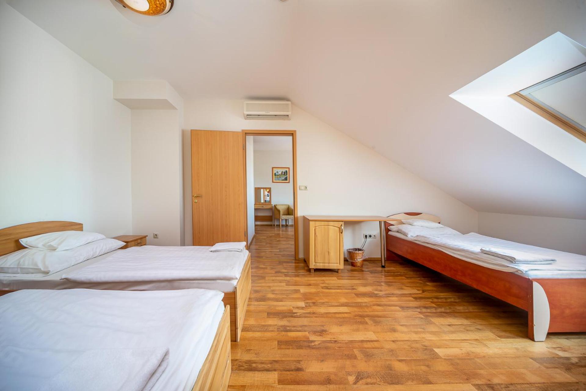 Nagyon kedves rendes személyzet. Kényelmes ágyak. Egyszerű de pont elég wellnessrész. Finom reggeli.