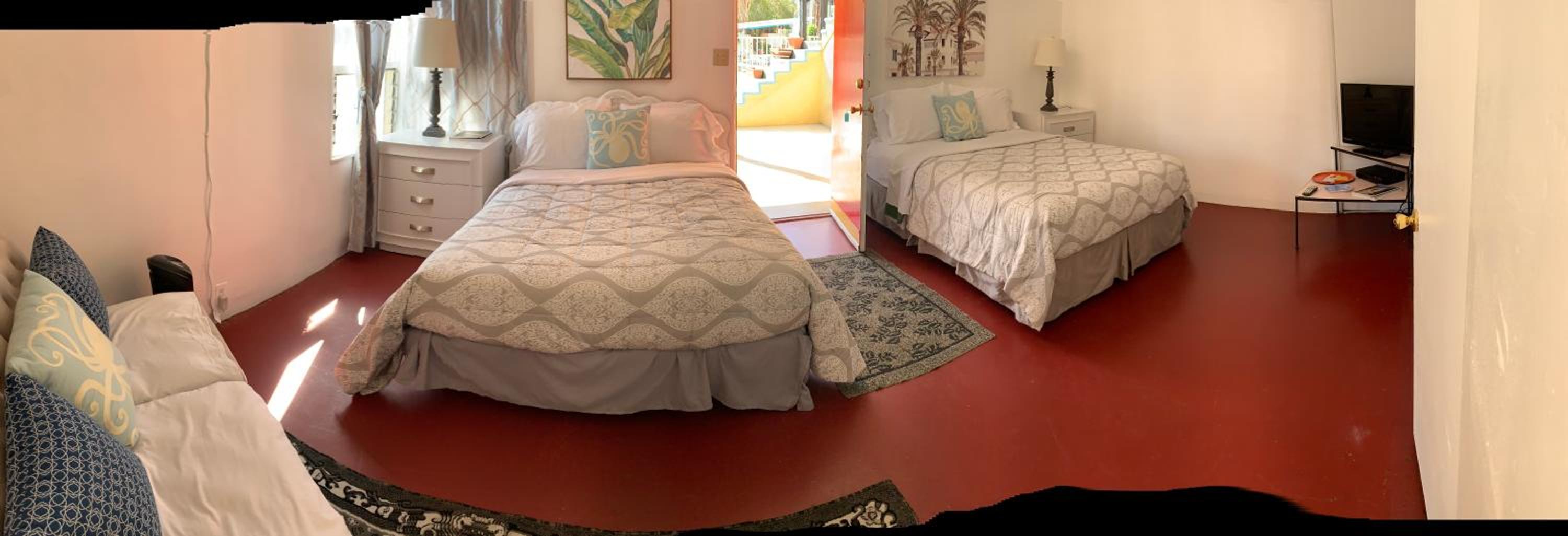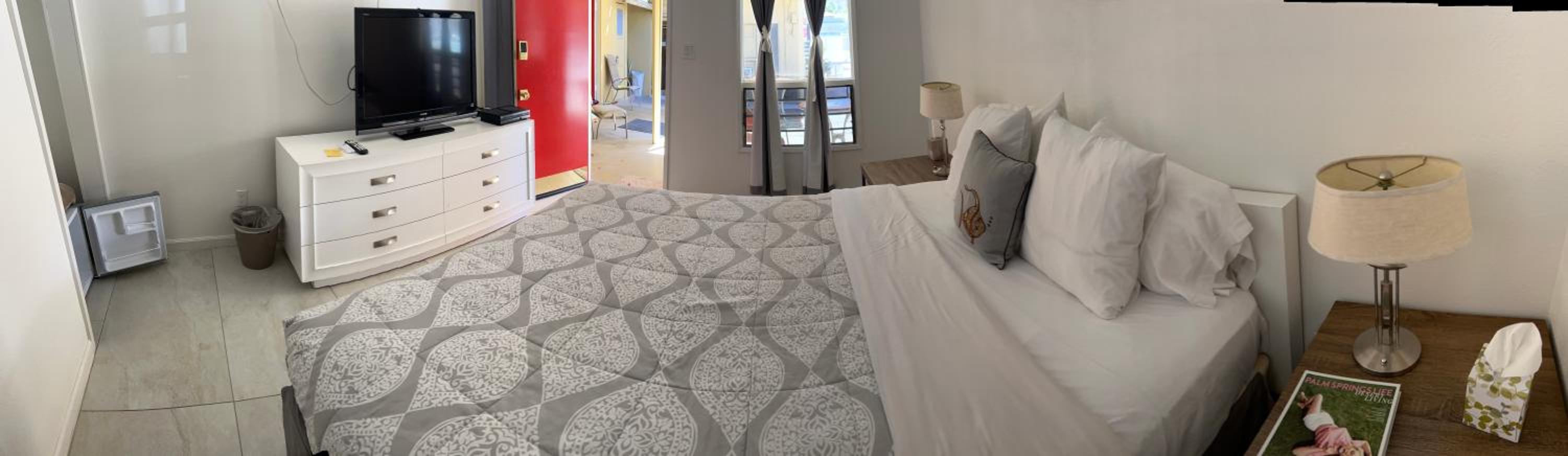 Such a great retro style property with amazing owners! Super comfy and private like an air bnb. Loved the door locks with codes so no need to carry room keys. The pool was very nice and having a refrigerator was a nice add on. Parking was easy and there is a bus stop out front but also only a mile walk to downtown.