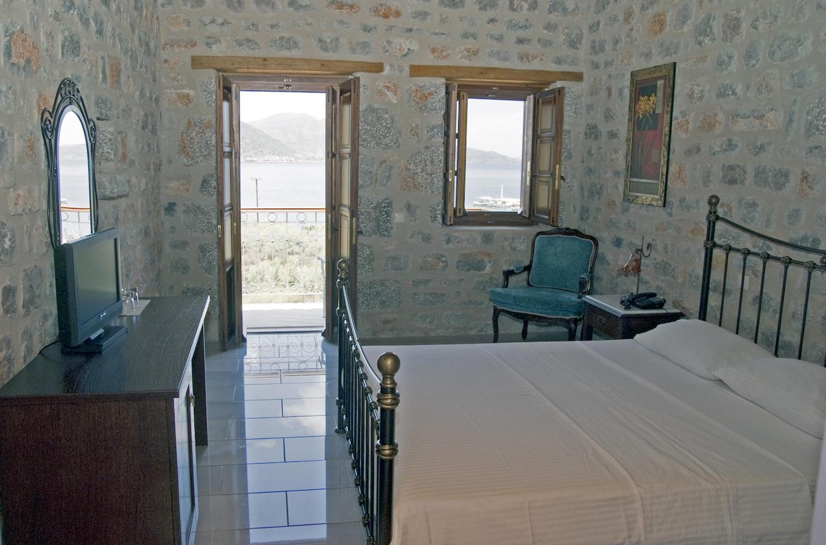 Each room at Smyros Resort boasts charming stone walls and comes equipped with air conditioning, a private balcony or terrace, and picturesque sea views. Guests can also enjoy the convenience of a desk, flat-screen TV, and a well-appointed bathroom with a bathtub and hairdryer.