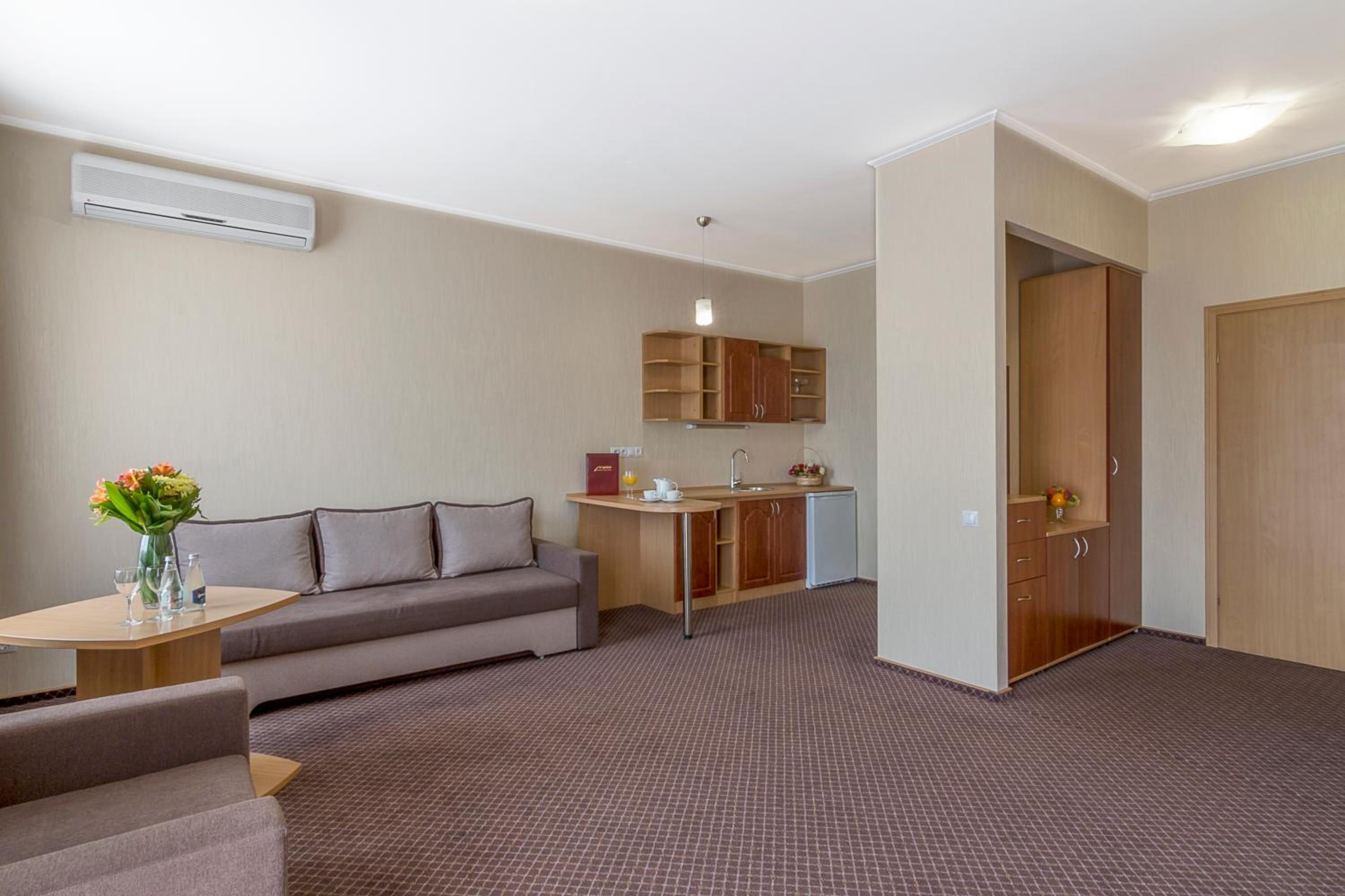 Брак питної води. В номері напівлюкс могли б додавати пляшку негазованої води на особу.